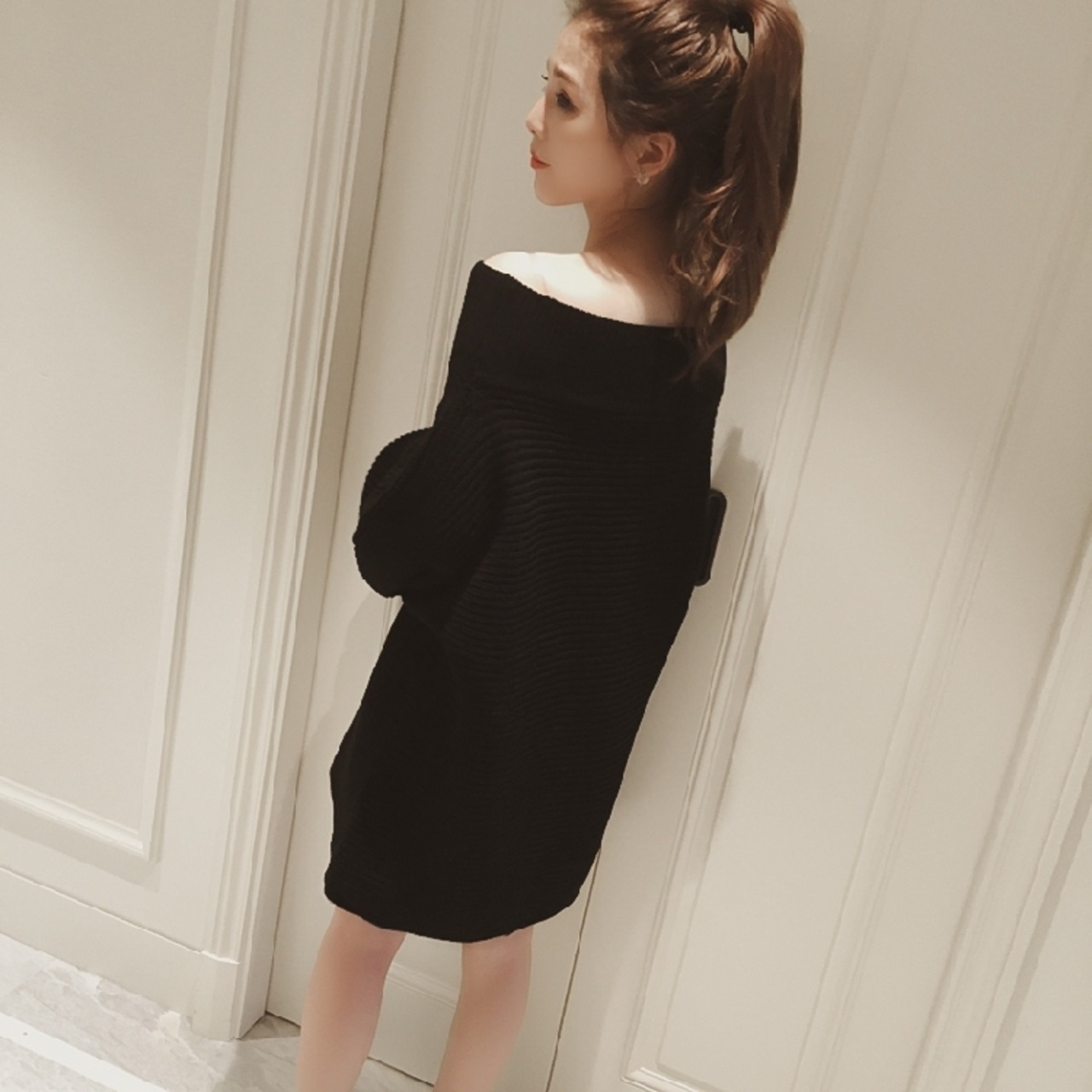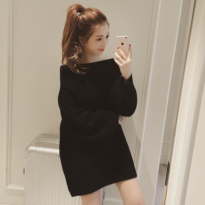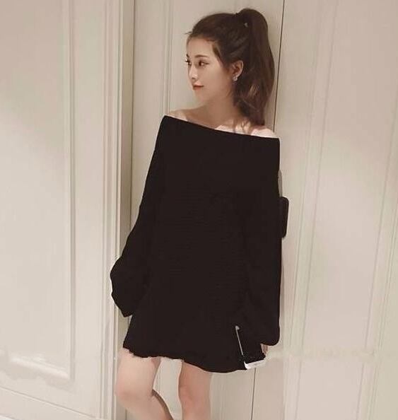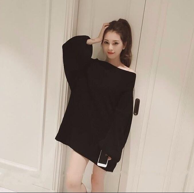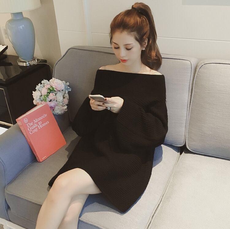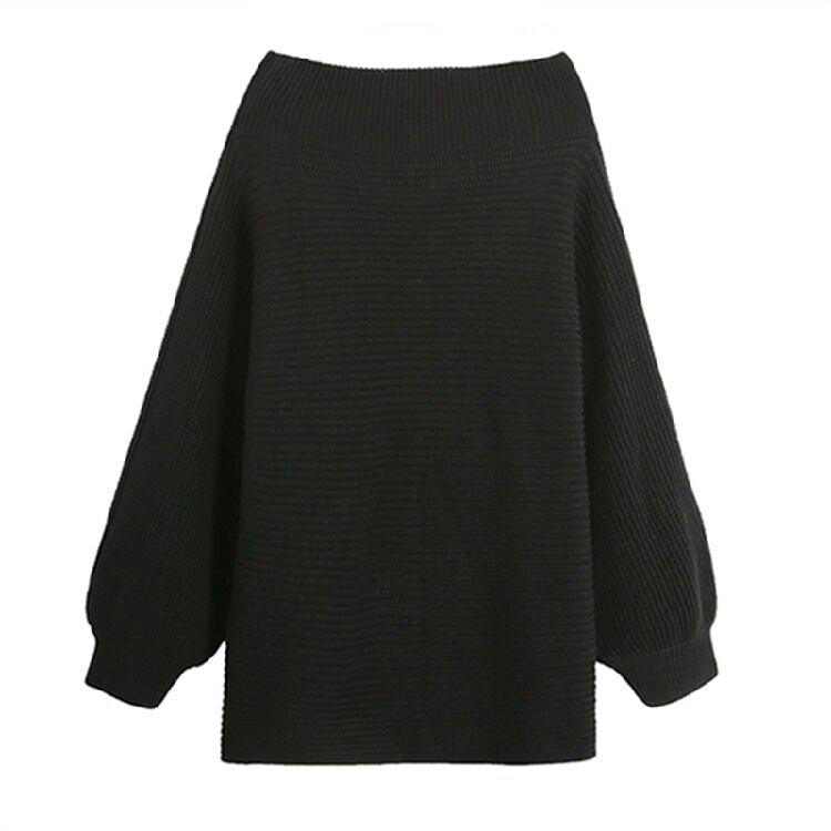 トップス プルオーバー セーター ニット ゆったり ワンピース オーバーサイズ オフショルダー ボリューム袖 ランタンスリーブ 無地 カジュアル ガーリー 秋 冬 春