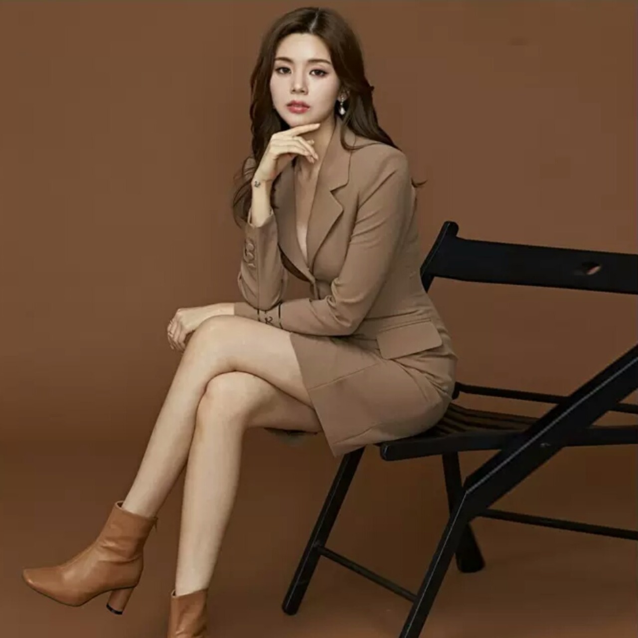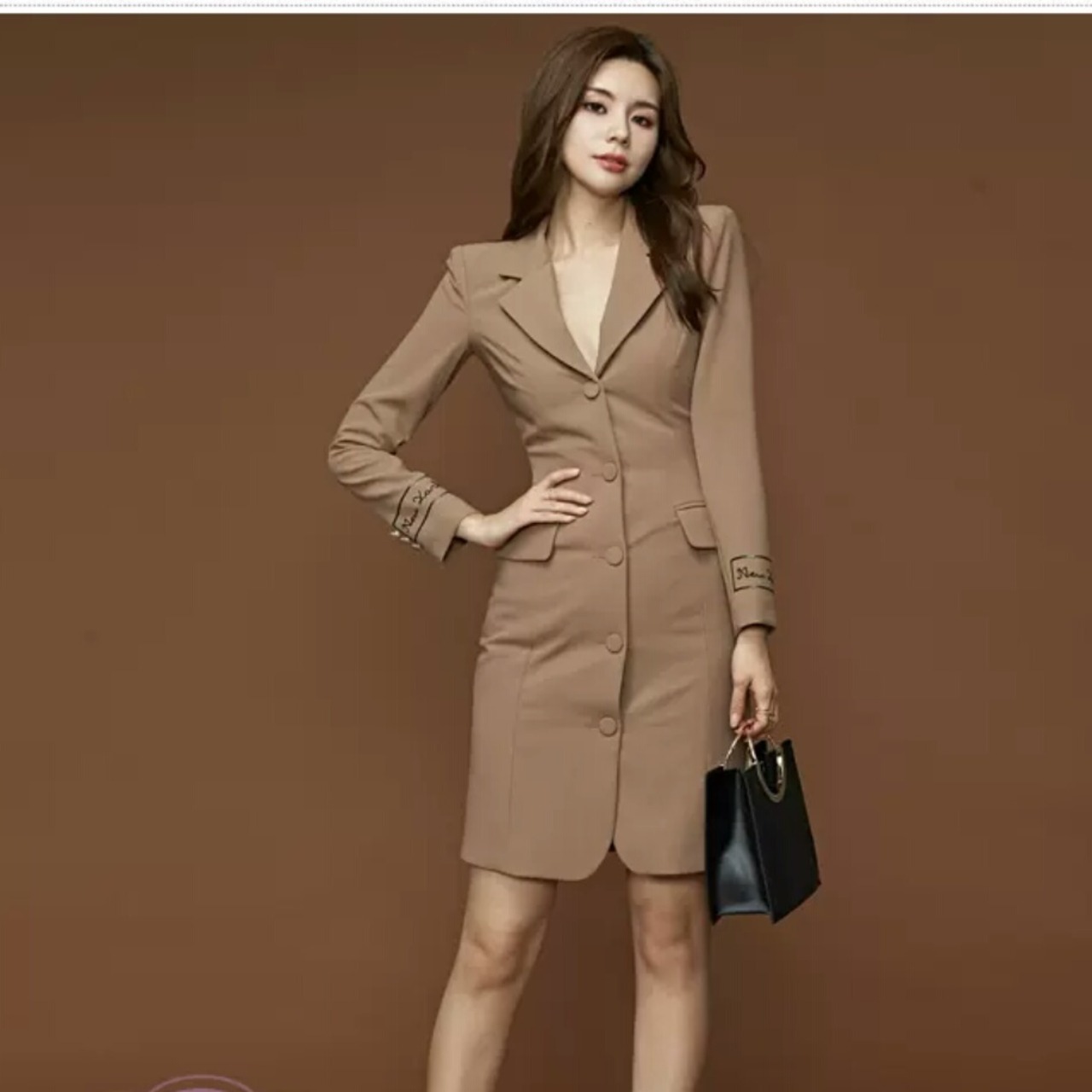ミニ丈とタイトめなスタイルでキレイめな印象になります。