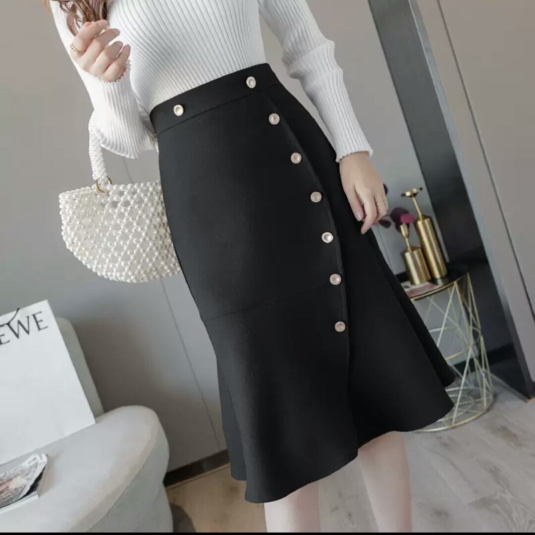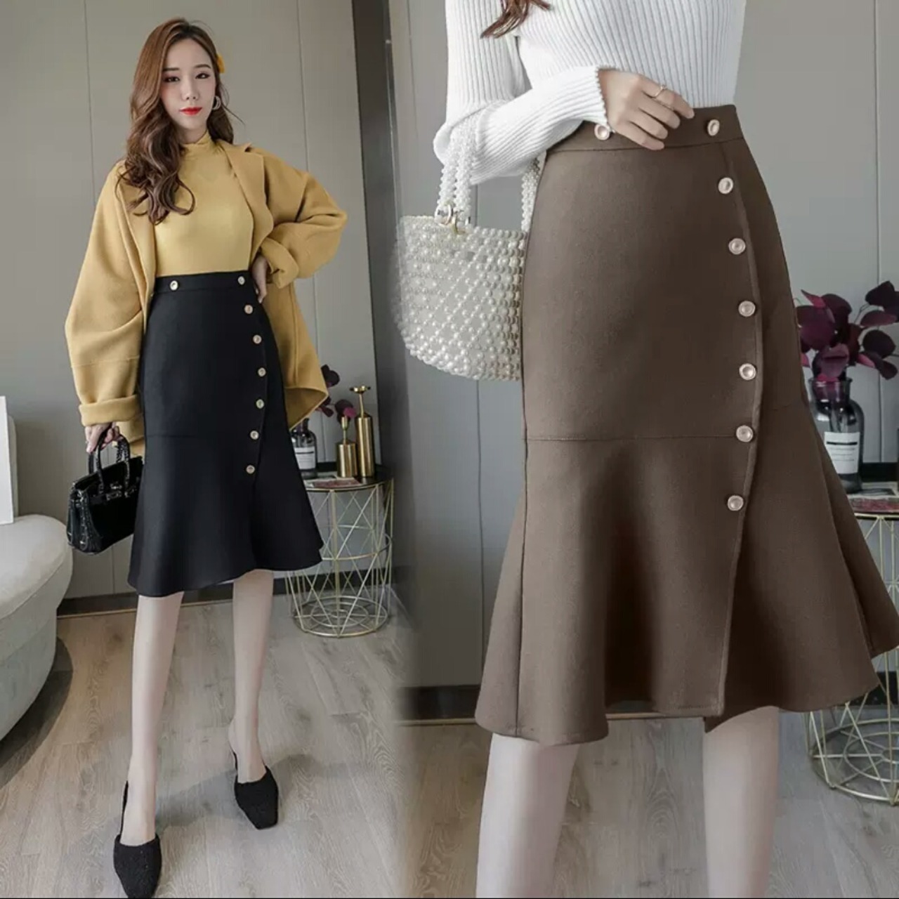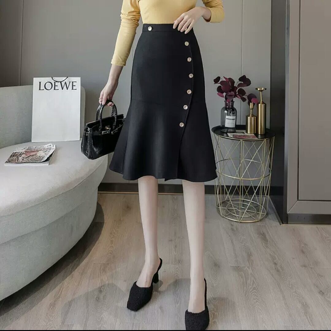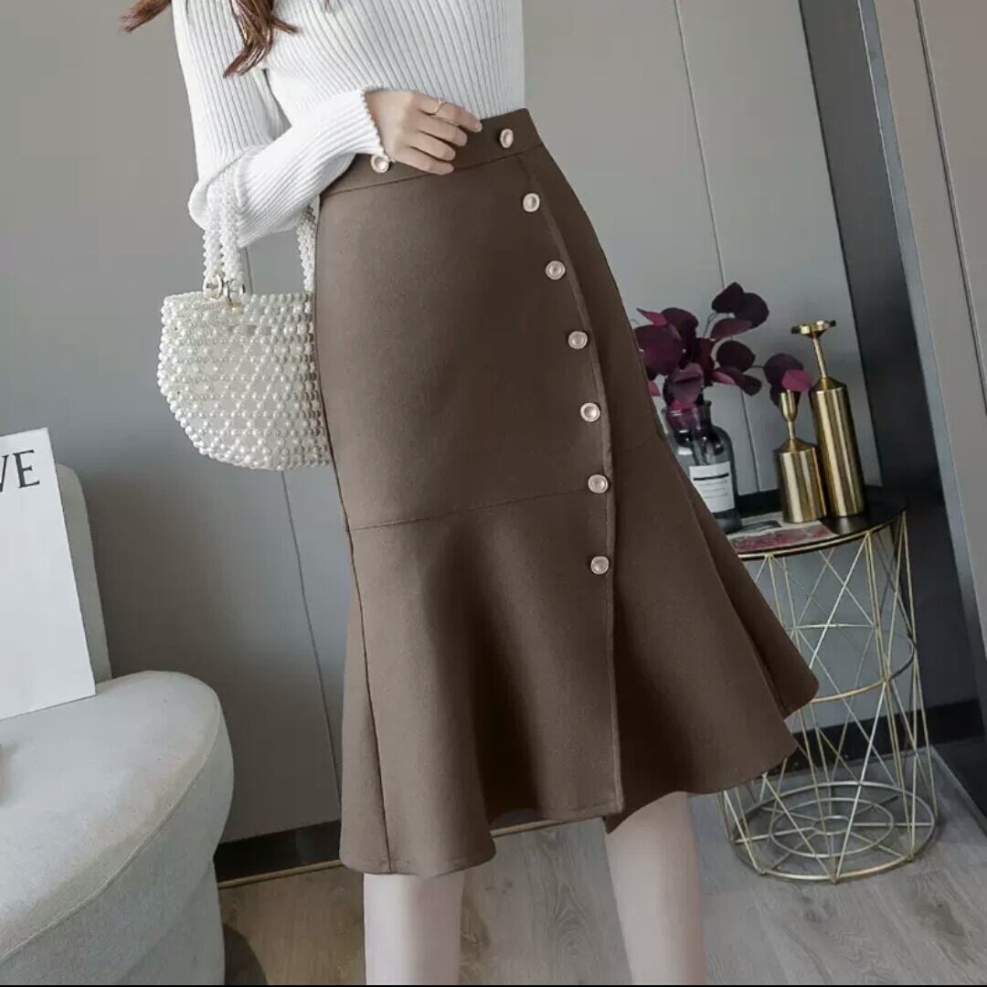 全2色 ハイウエスト マーメイドスカート ボタン 大人 カジュアル キレイめ シンプル 無地 お出かけ お買い物 デート 女子会 秋冬 春 通学 学生 通勤 オフィス
