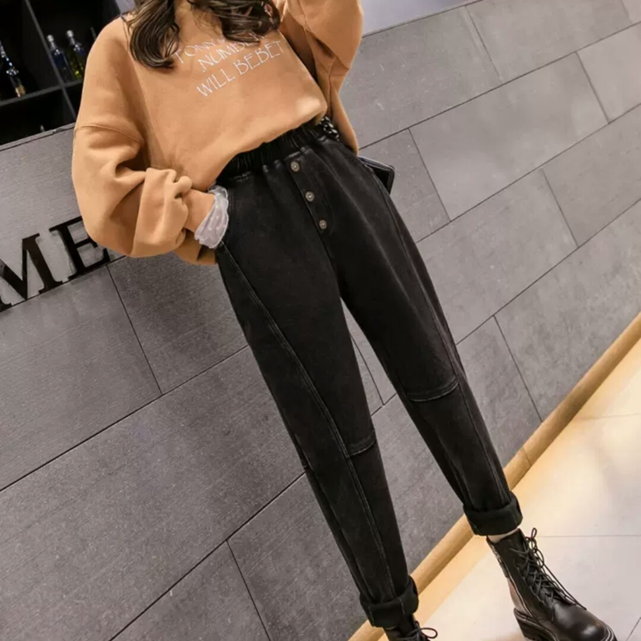 裏起毛 ハーレムパンツ カジュアル リラックス ストリート系 モード系 大人 シンプル お出かけ お買い物 デート 女子会 秋冬 春 通学 学生 通勤 防寒