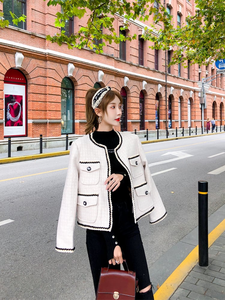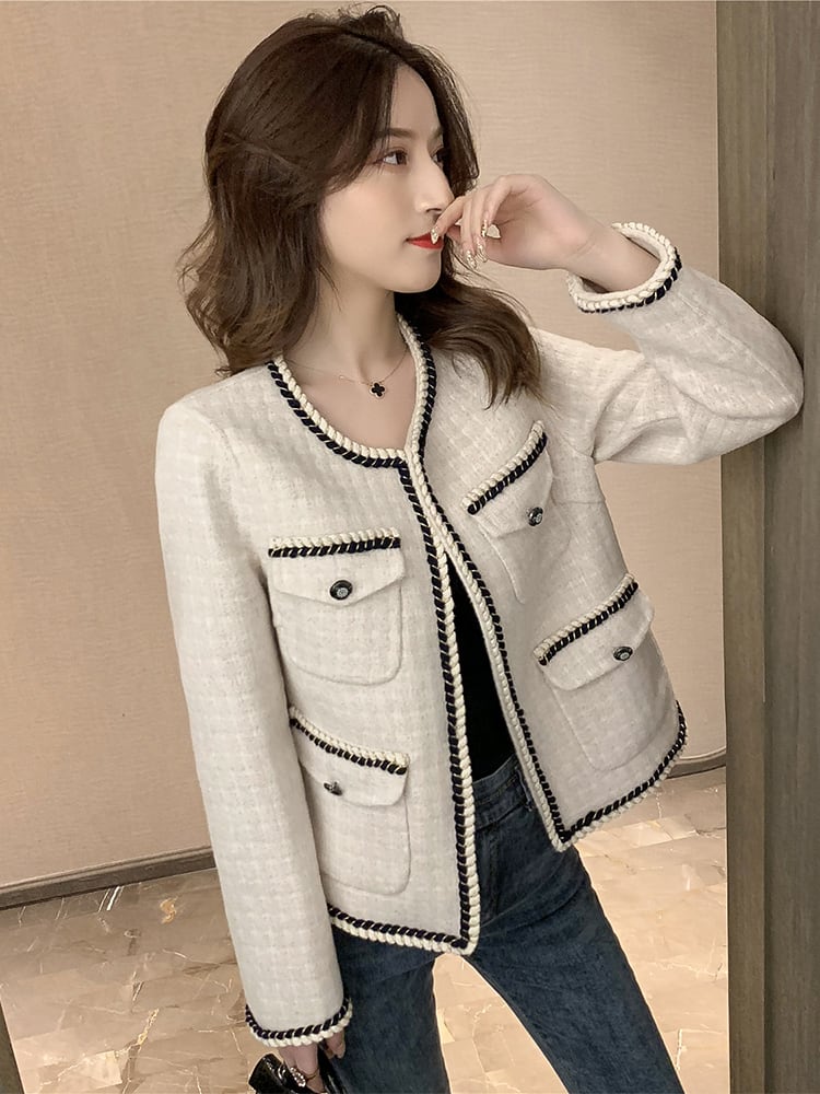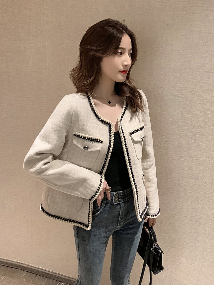 ノーカラージャケット 羽織 アウター オフホワイト 秋 冬 長袖 大人きれい エレガント オフィスカジュアル お呼ばれ 韓国 オルチャン