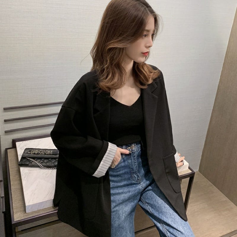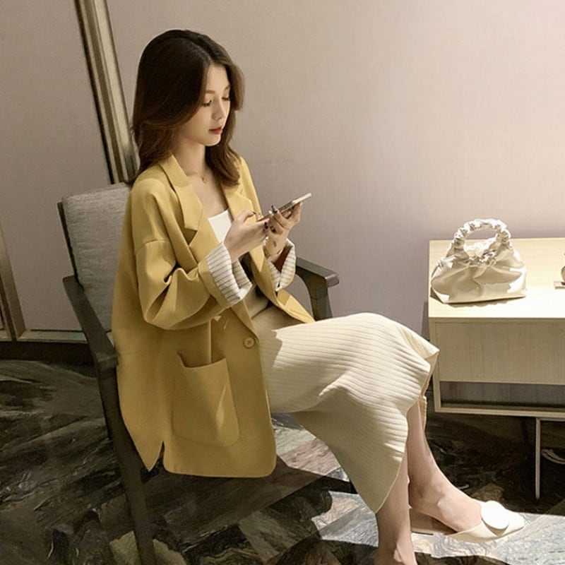 全3色 ジャケット アウター 羽織 オーバーサイズ テーラードカラー ミドル丈 長袖 秋 冬 大人カジュアル オフィスカジュアル 韓国 オルチャン