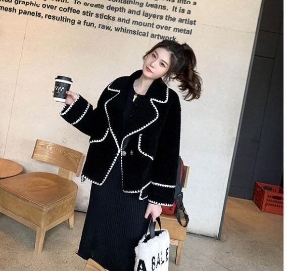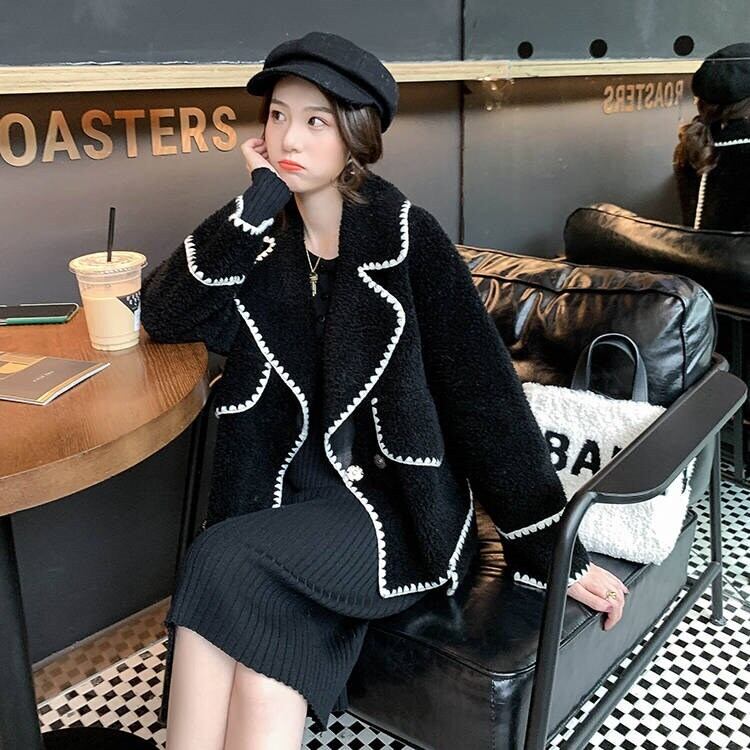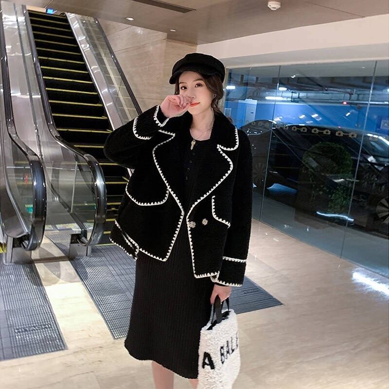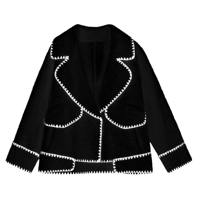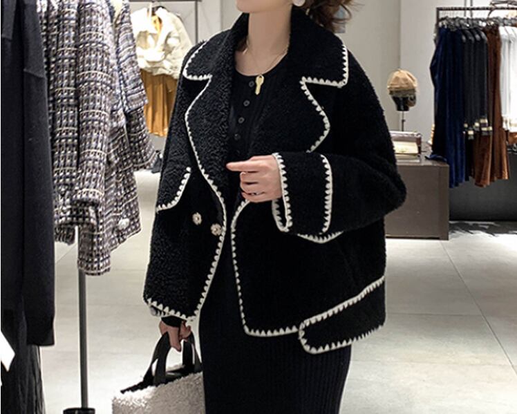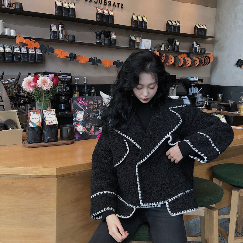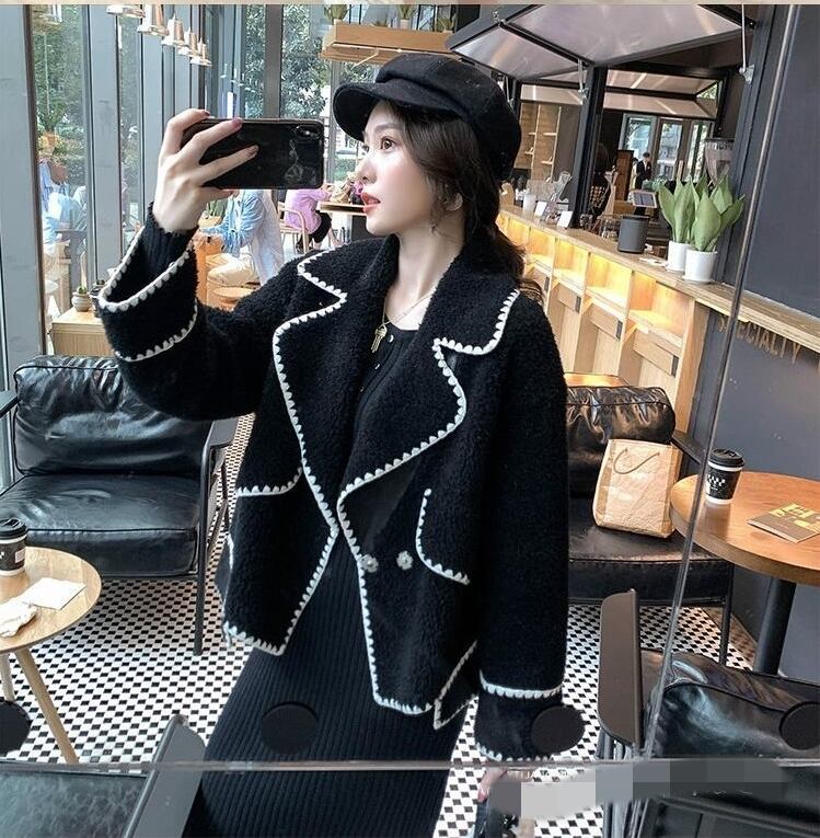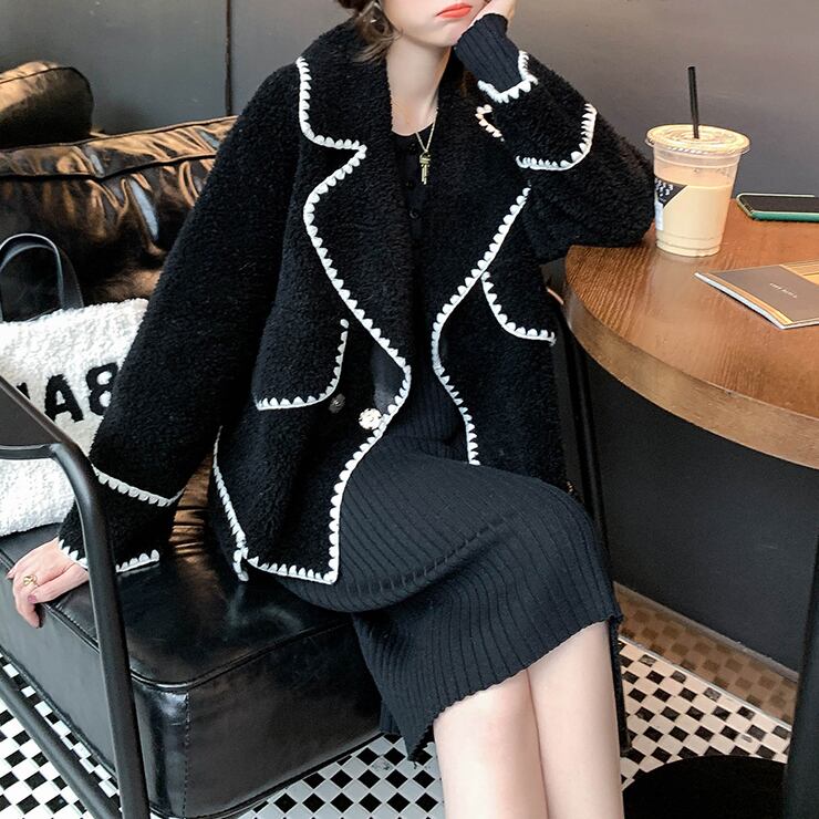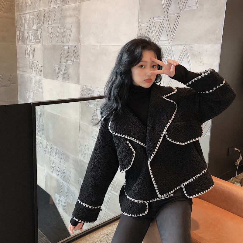ボアジャケット コート 長袖 オーバーサイズ ゆったり ムートン ブラック 秋冬 お出かけ デート 女子会 大人可愛い ガーリー フェミニン カジュアル ステッチ ショート丈