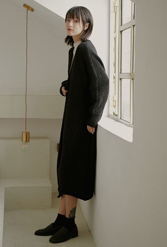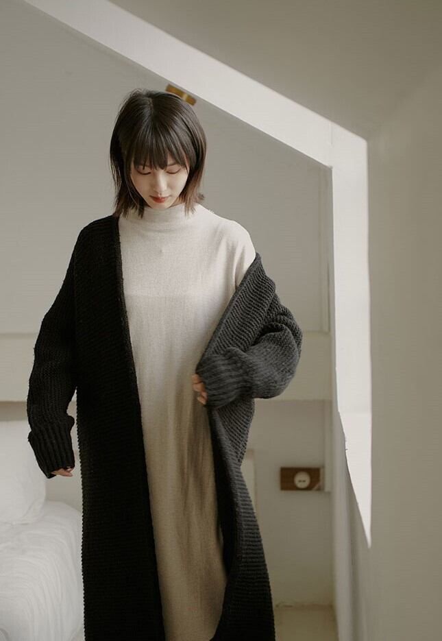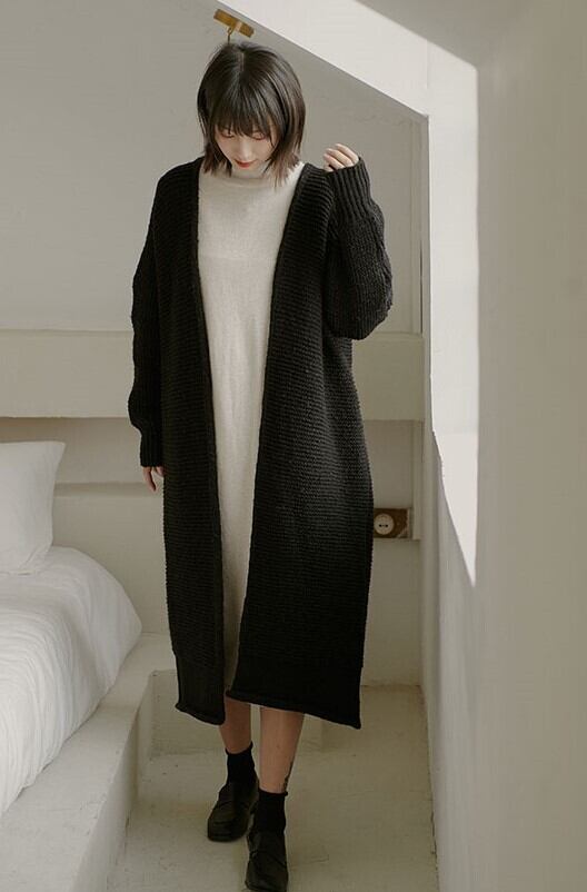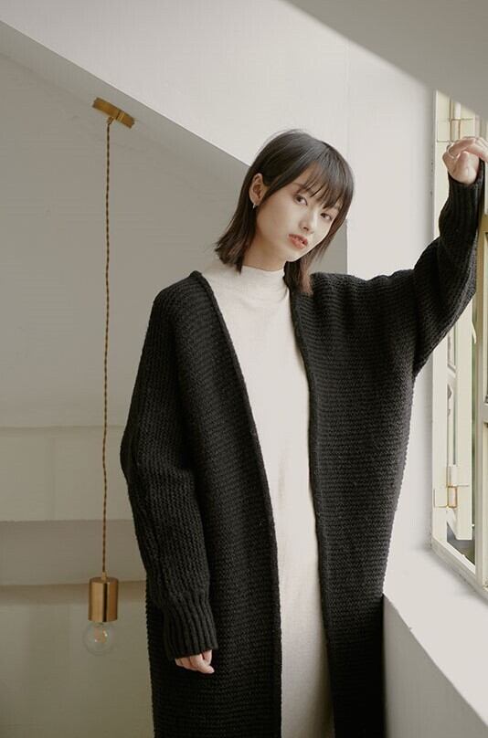 ふわっとしたざっくり編みがポイントのロングニットカーディガン♪