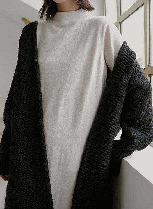長い着丈でゆるいシルエット、大人っぽくもあり程よい抜け感もあり誰もが気軽に着こなせるアイテムです。