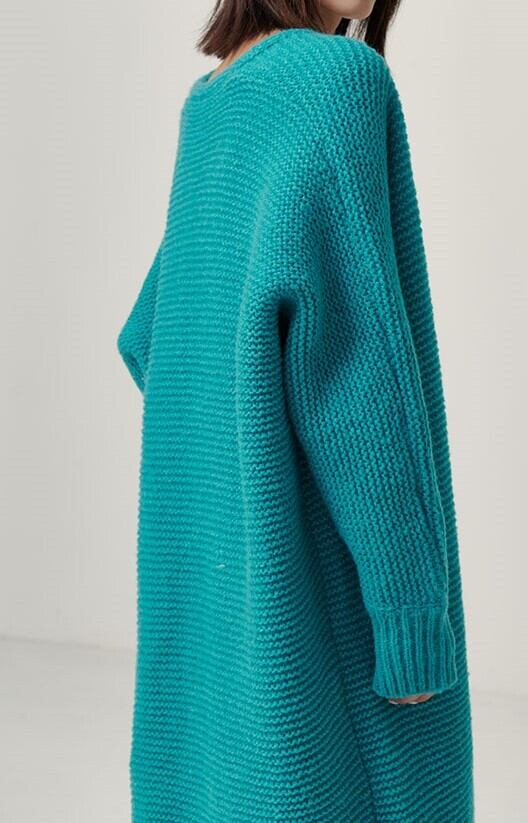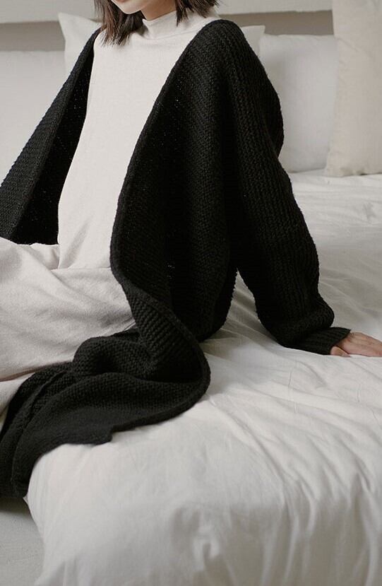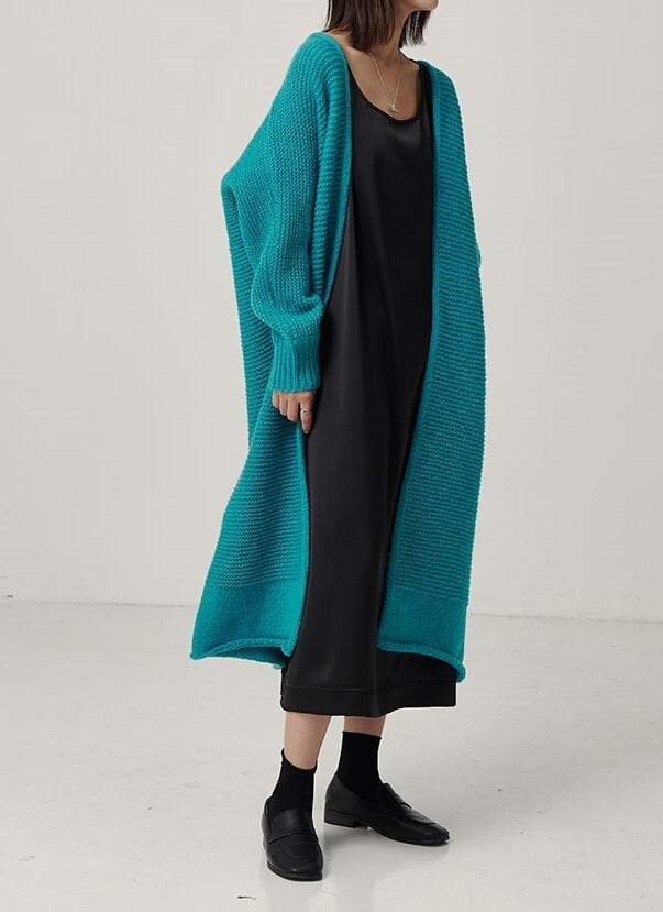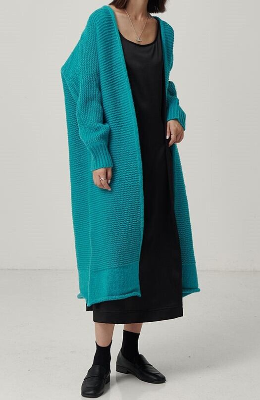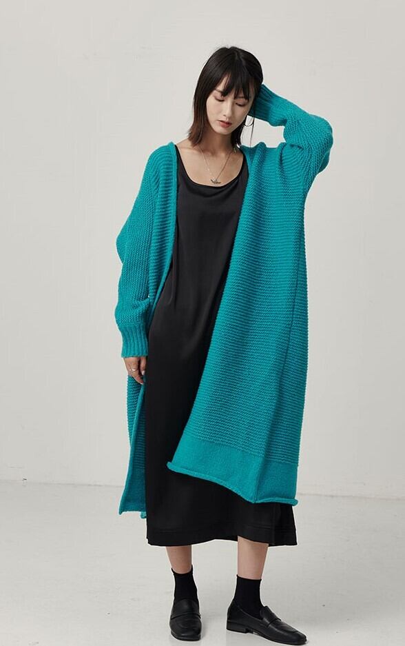 全2色 ロングカーディガン アウター 羽織 ラグランスリーブ ブルー ブラック ルーズ 秋 冬 大人カジュアル オーバーサイズ エレガント