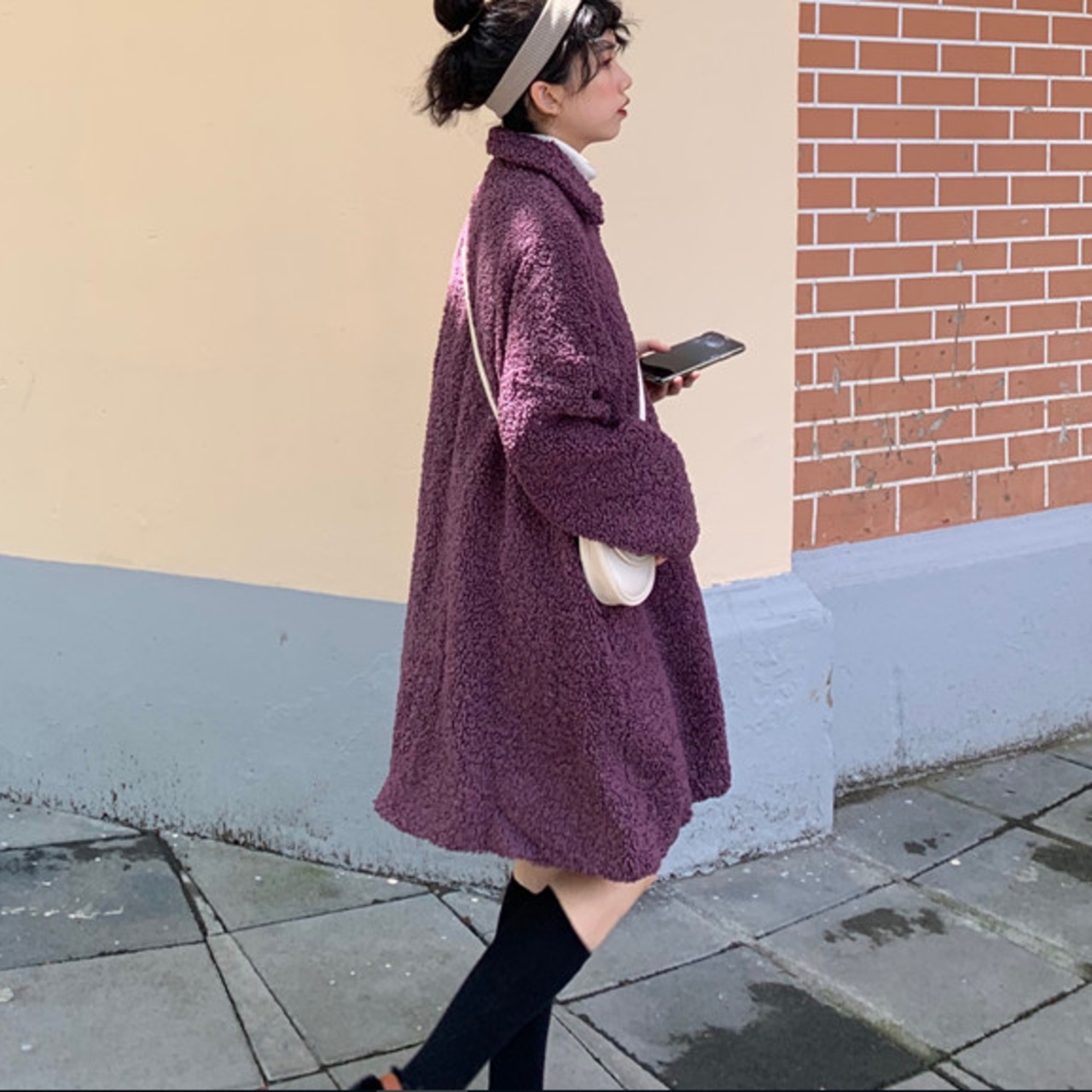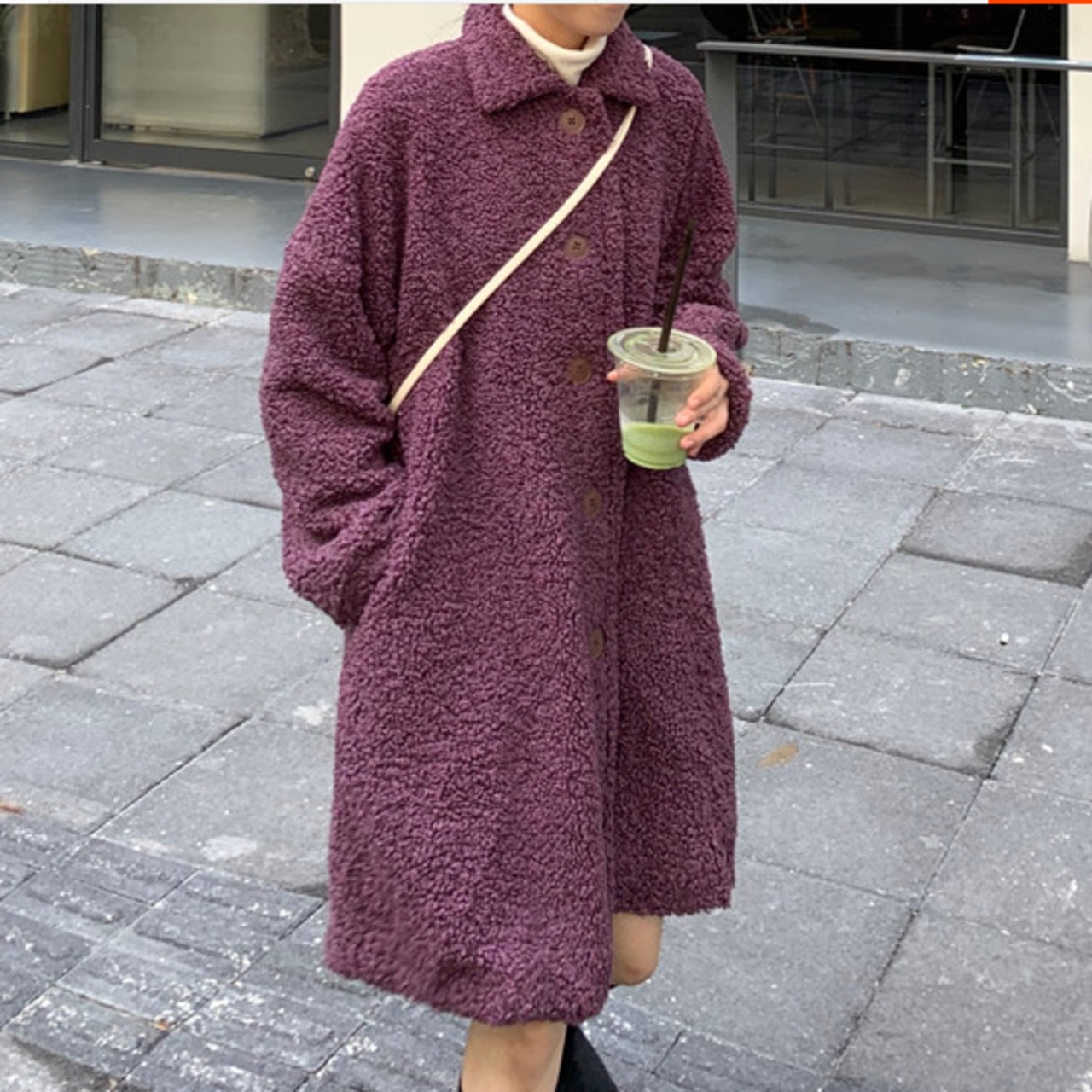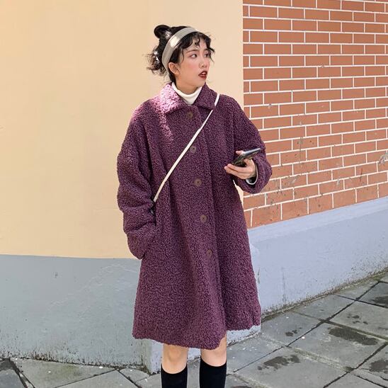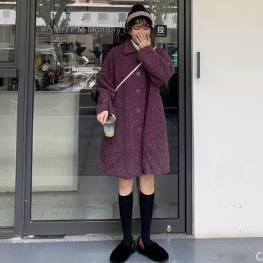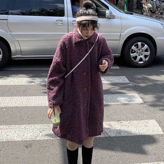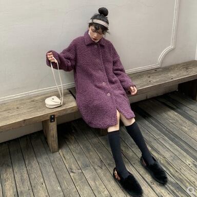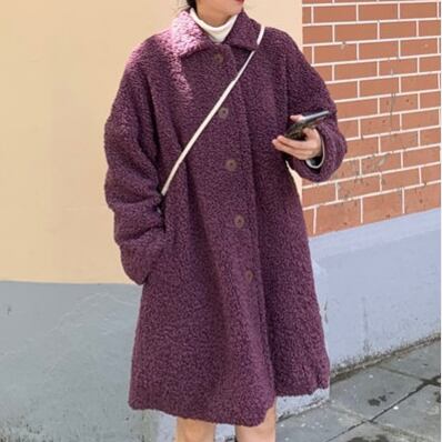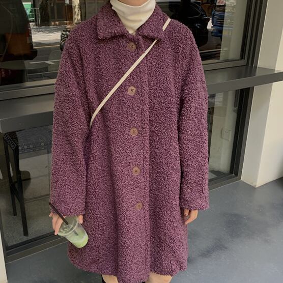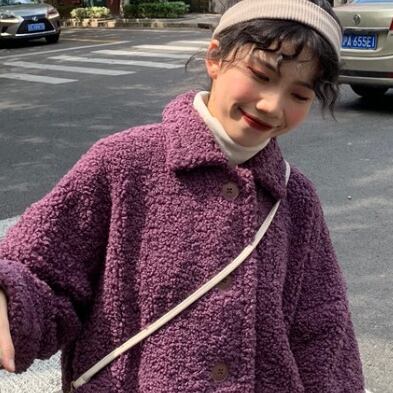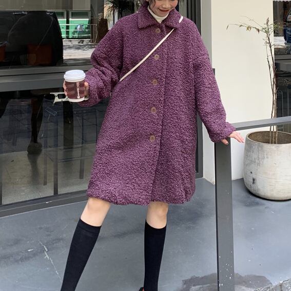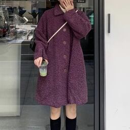 ゆったり ボアウールコート カジュアル レトロデザイン トップス 秋冬 暖かい 女子会 アウター パープル かわいい