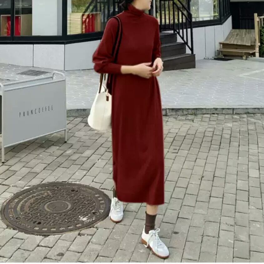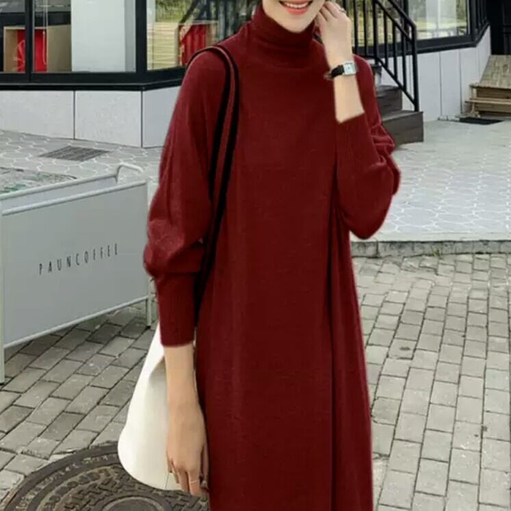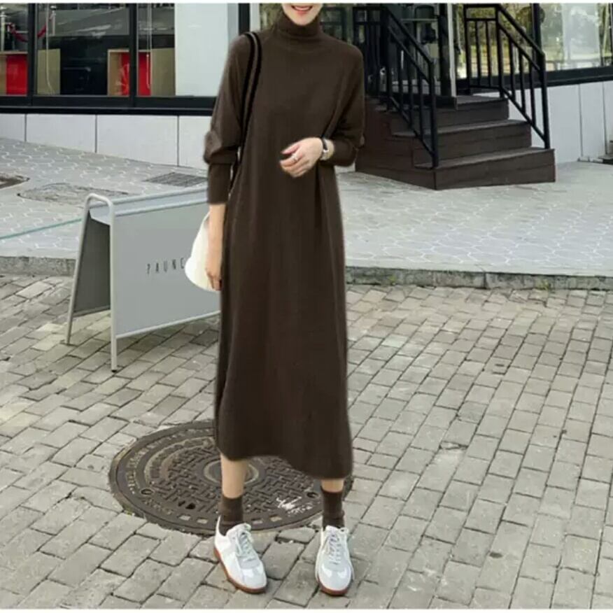 全3色 タートルネック ニットワンピース ロング丈 無地 シンプル 大人 カジュアル キレイめ お出かけ お買い物 デート 女子会 秋冬 春 通学 学生 通勤