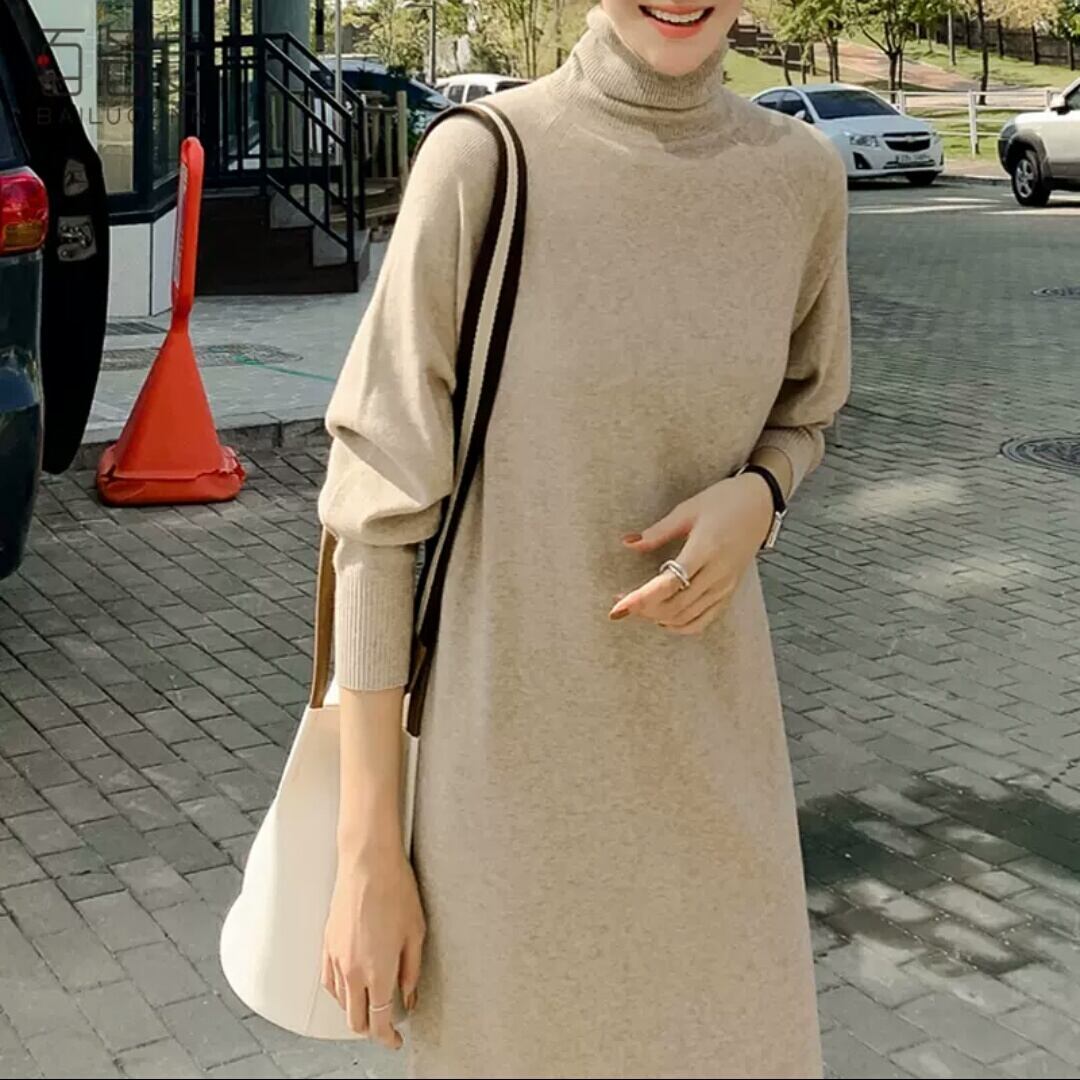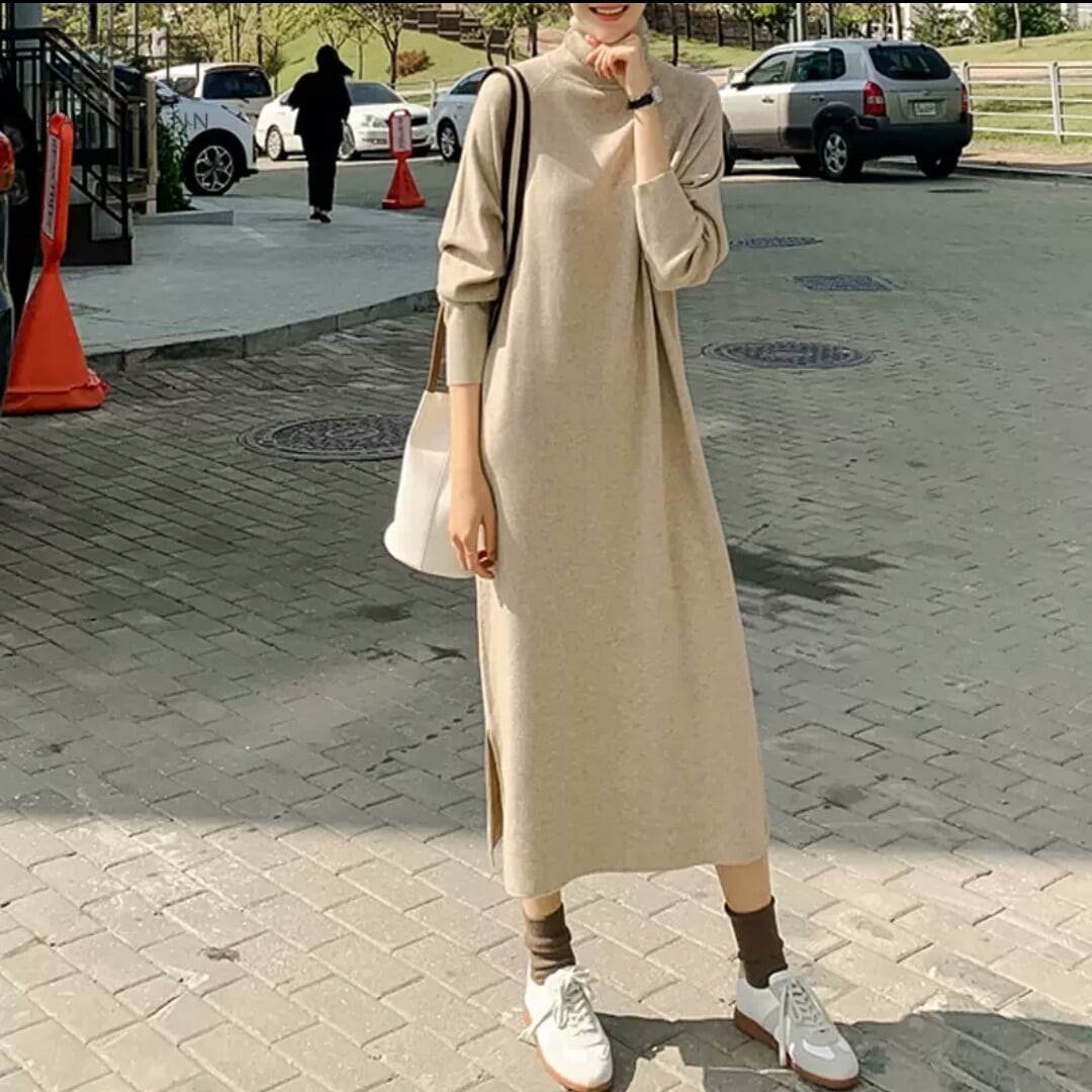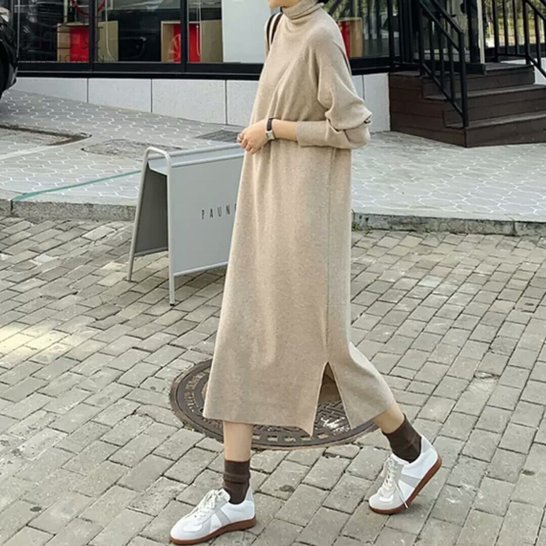 シンプルなタートルネックニットワンピース♪