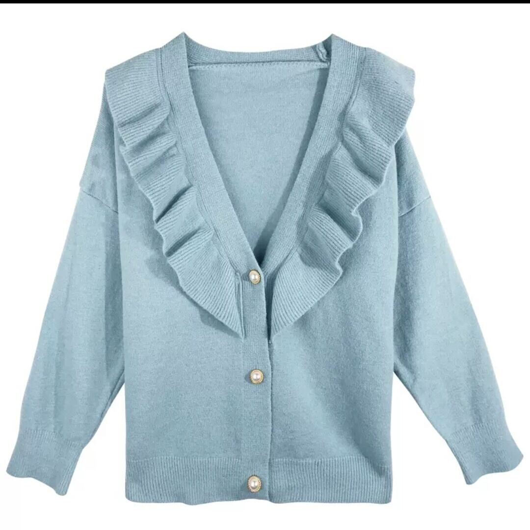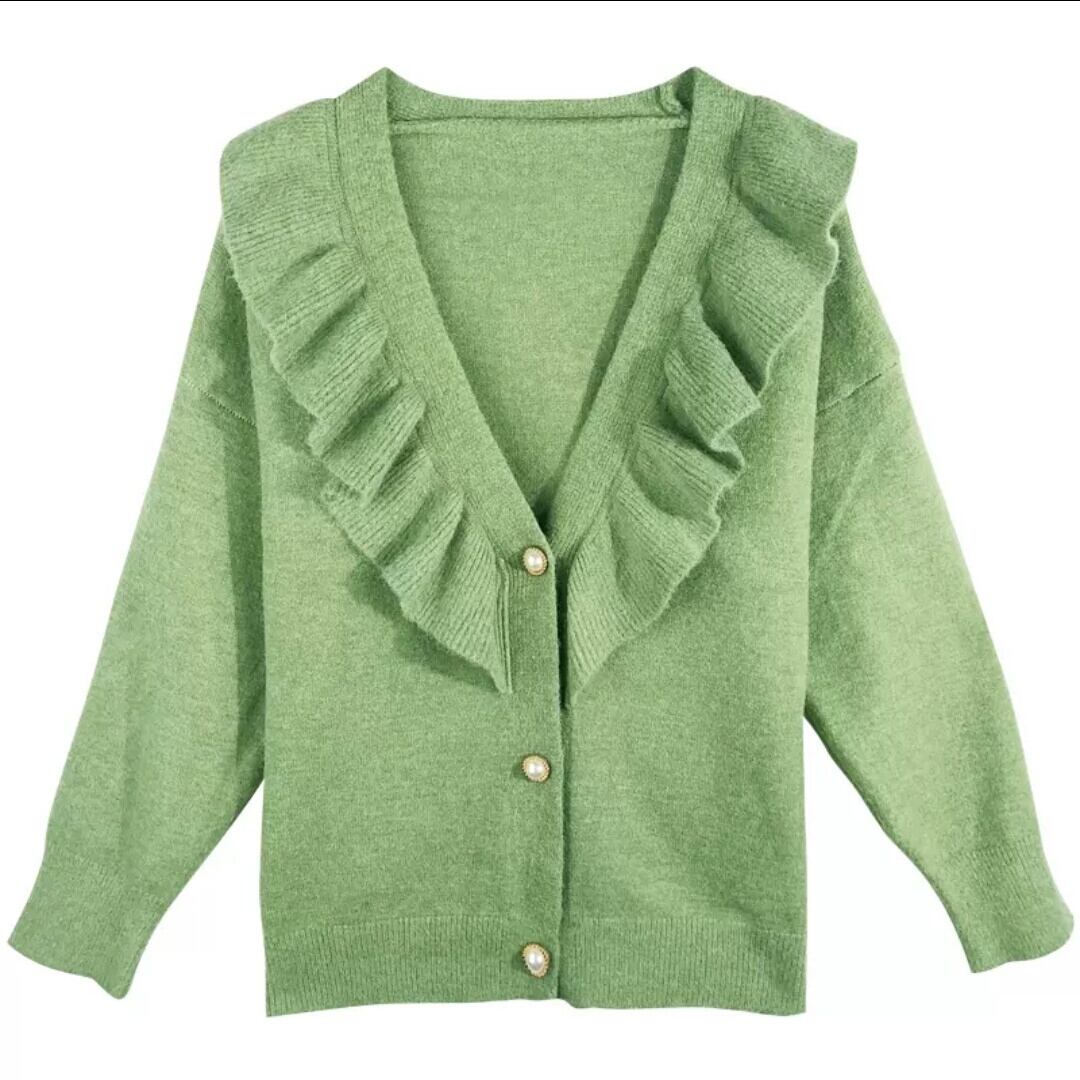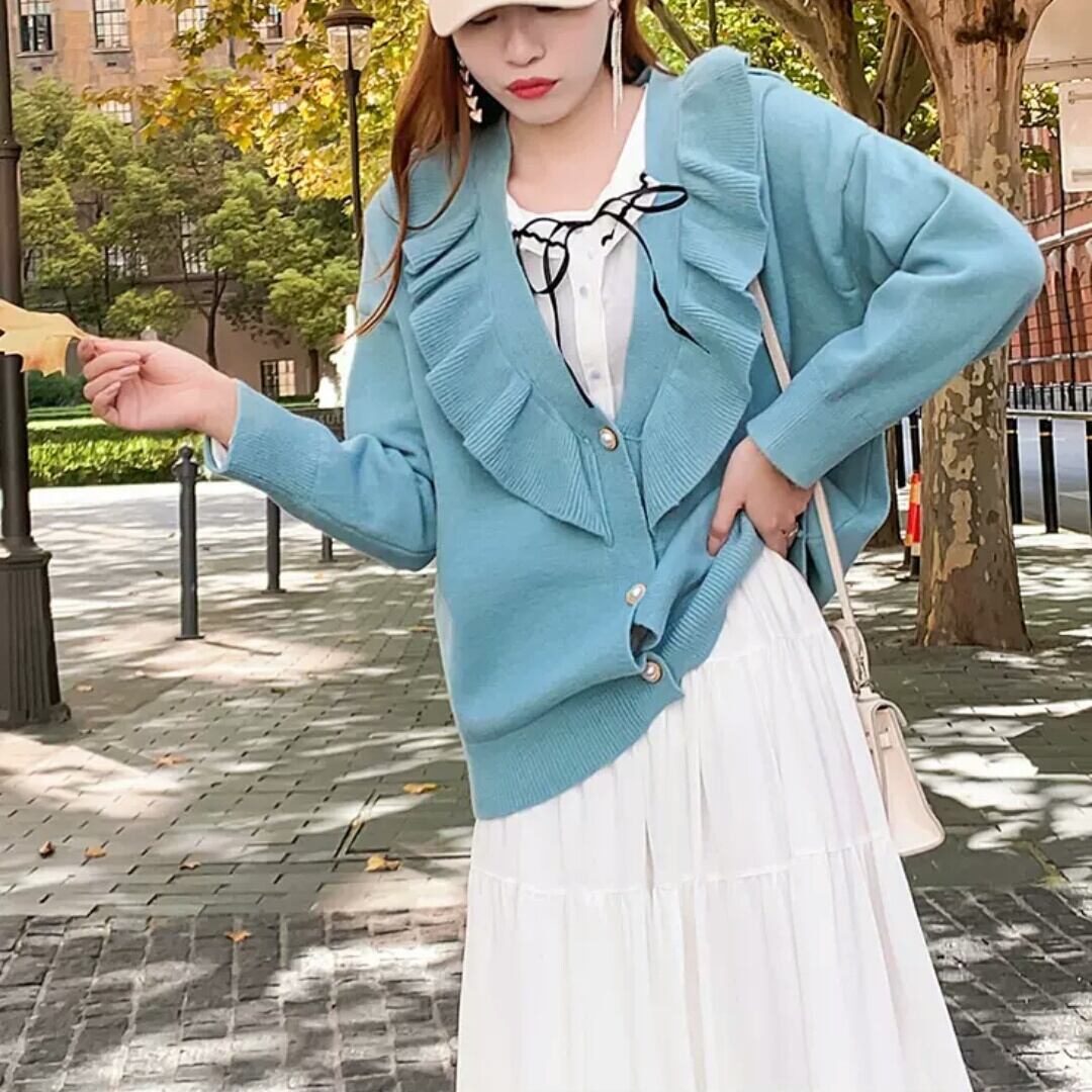 全2色 フリル ニット カーディガン トップス 羽織 お出かけ お買い物 デート 女子会 秋冬 春 通学 学生 通勤 大人 可愛い キレイめ カジュアル