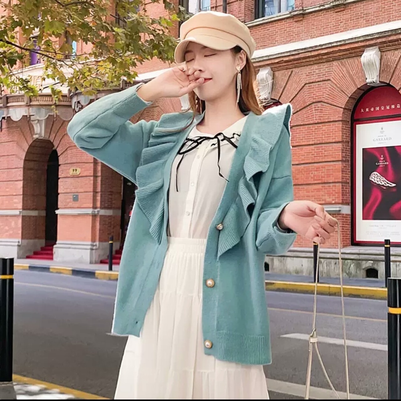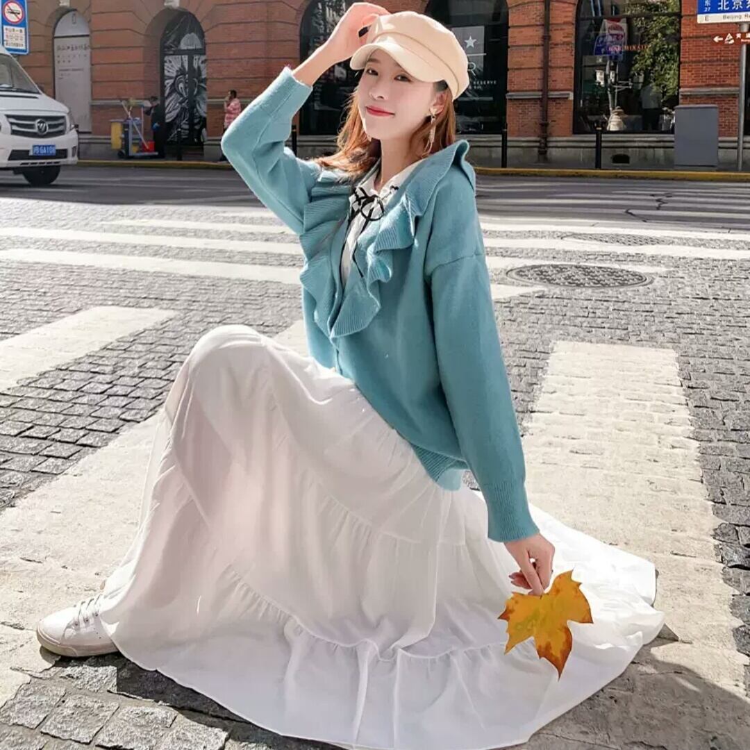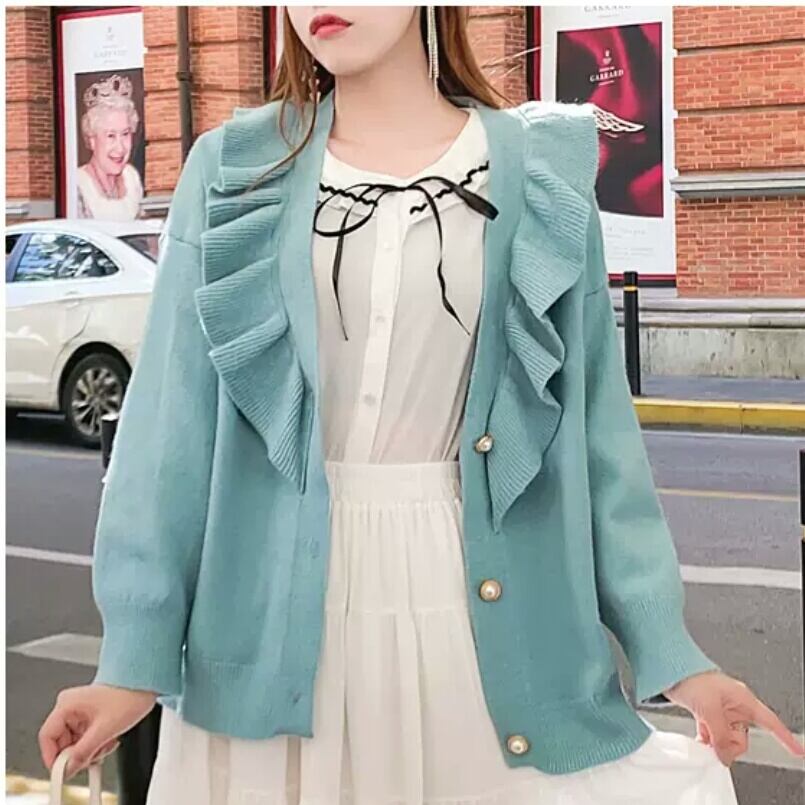 全2色 フリル ニット カーディガン トップス 羽織 お出かけ お買い物 デート 女子会 秋冬 春 通学 学生 通勤 大人 可愛い キレイめ カジュアル