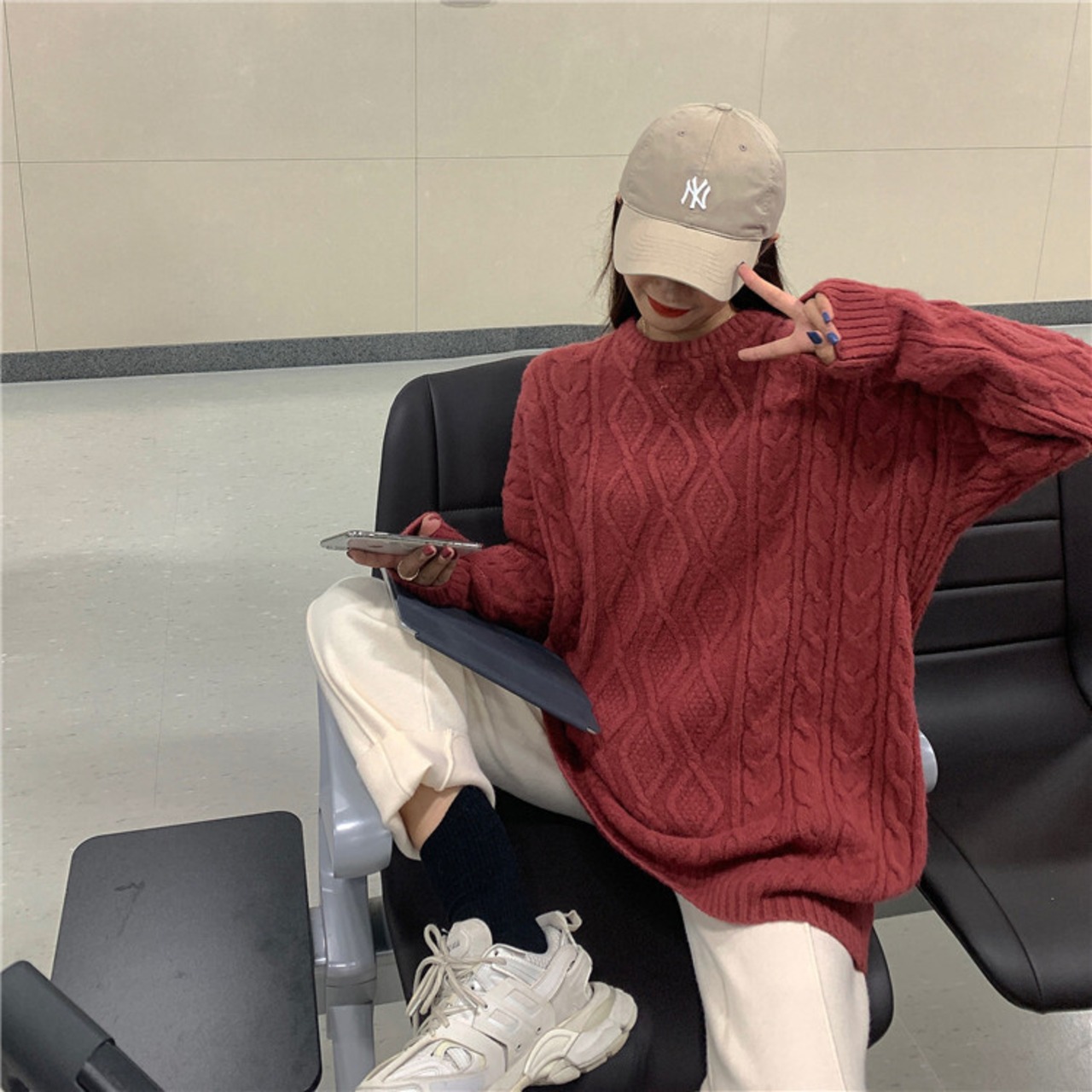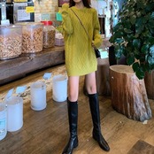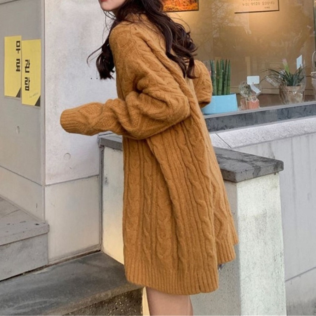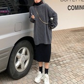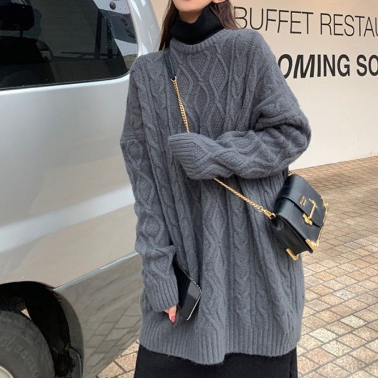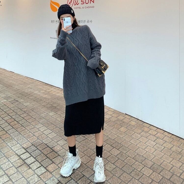 オーバーサイズのシルエットが可愛いケーブルニット。
