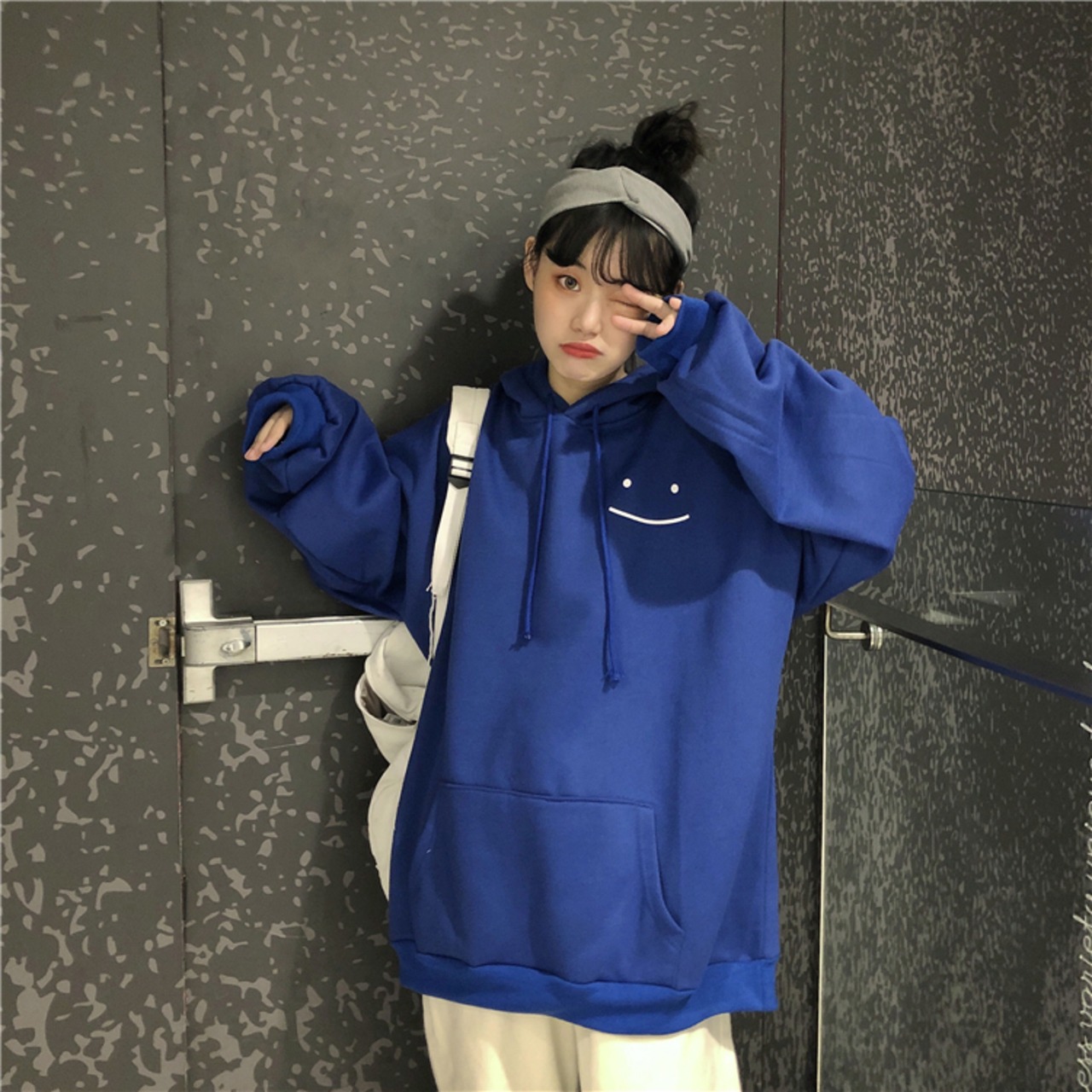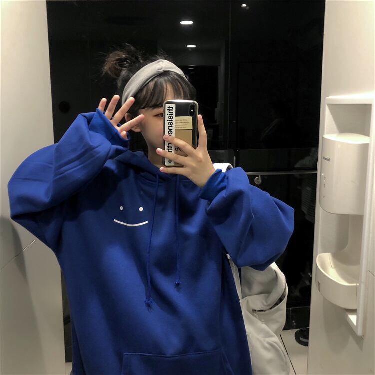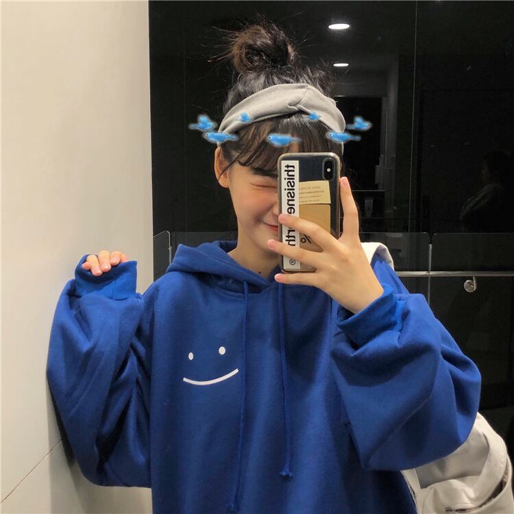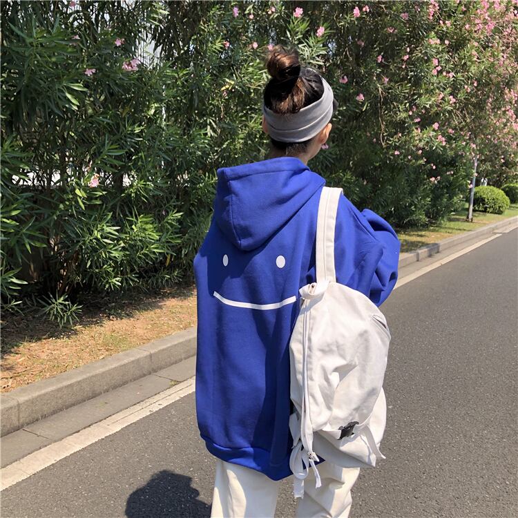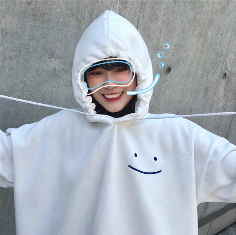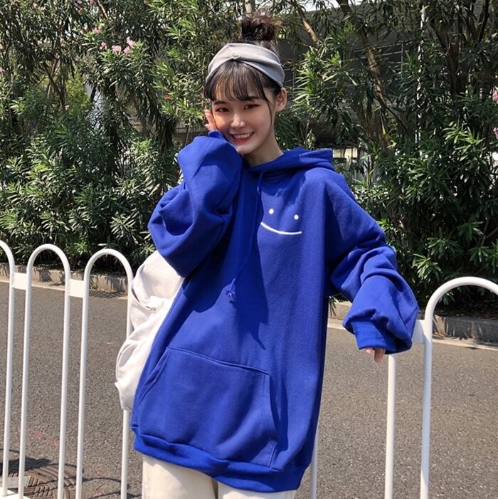 全2色トップス プルオーバー トレーナー スマイル プリント フード付き オーバーサイズ ゆったり カジュアル 可愛い ガーリー ラフ デイリー 韓国 秋 春 冬