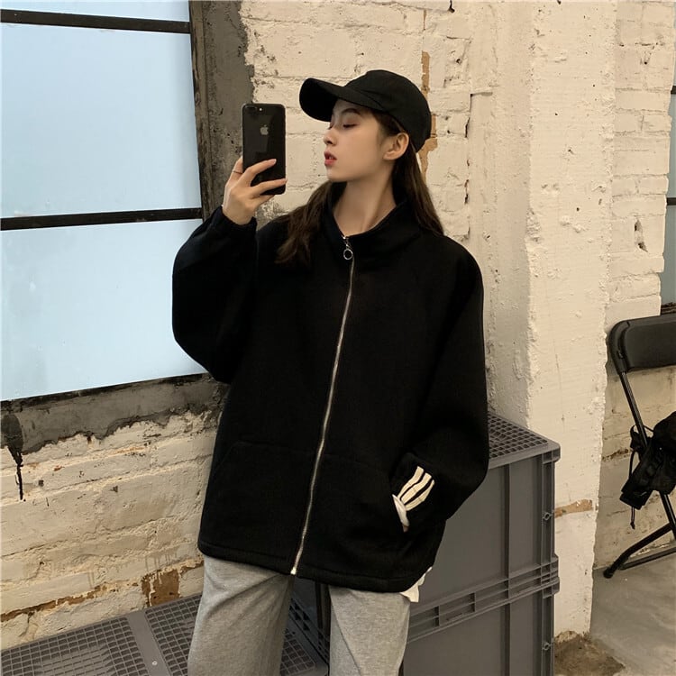 ゆったりシルエットで可愛く着れちゃうジップアップスウェットです。