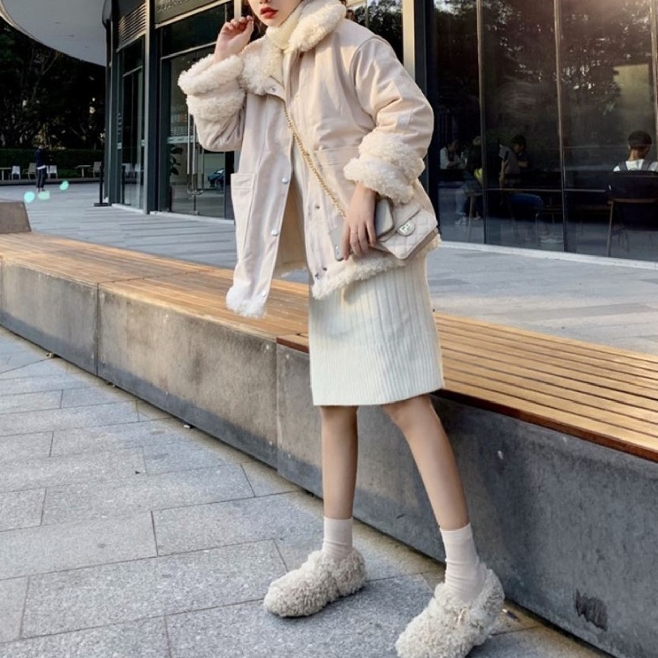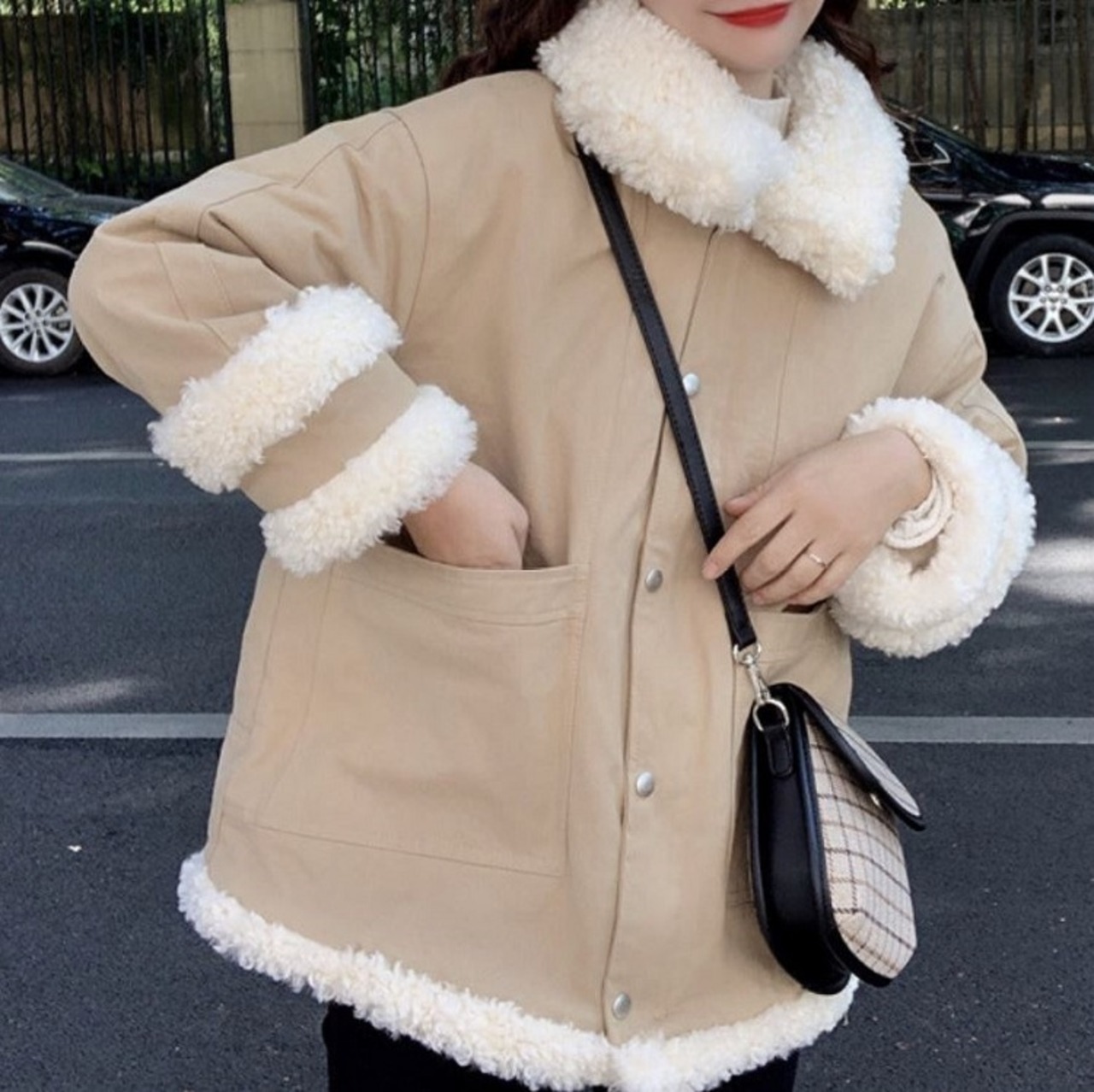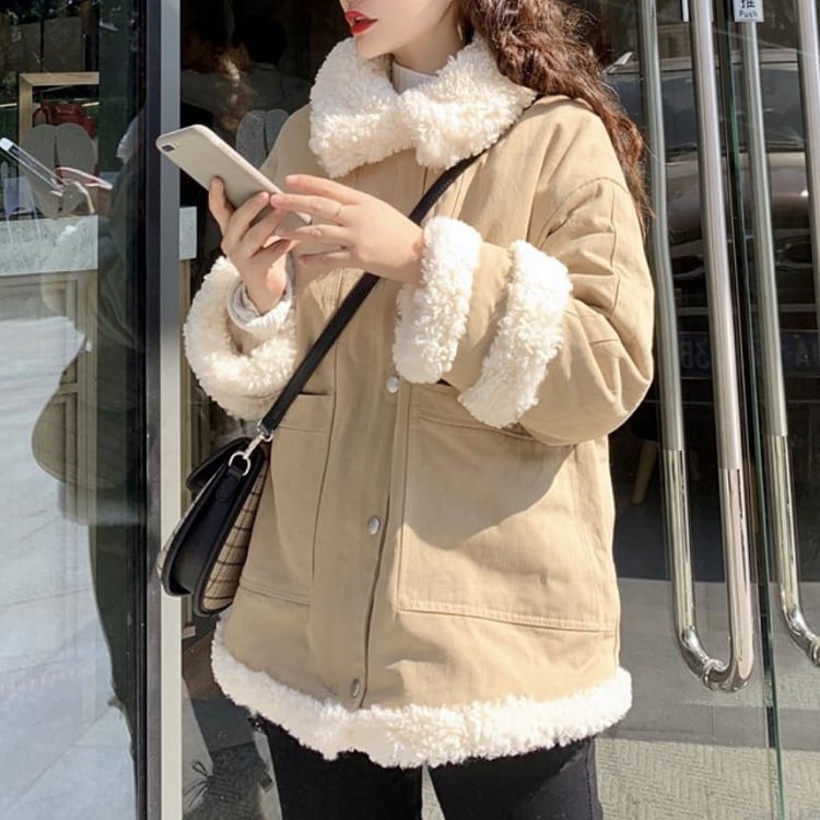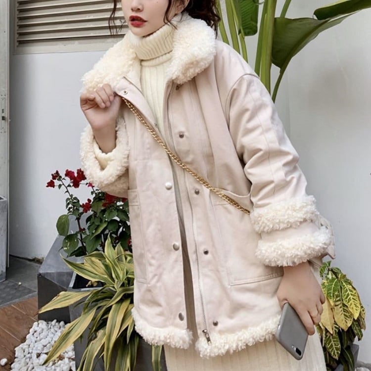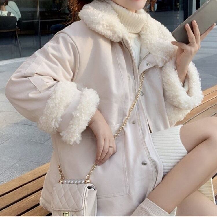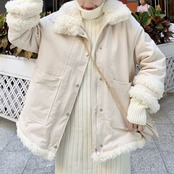フェイクファーがアクセントになったショートコート。
