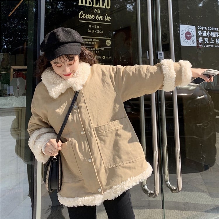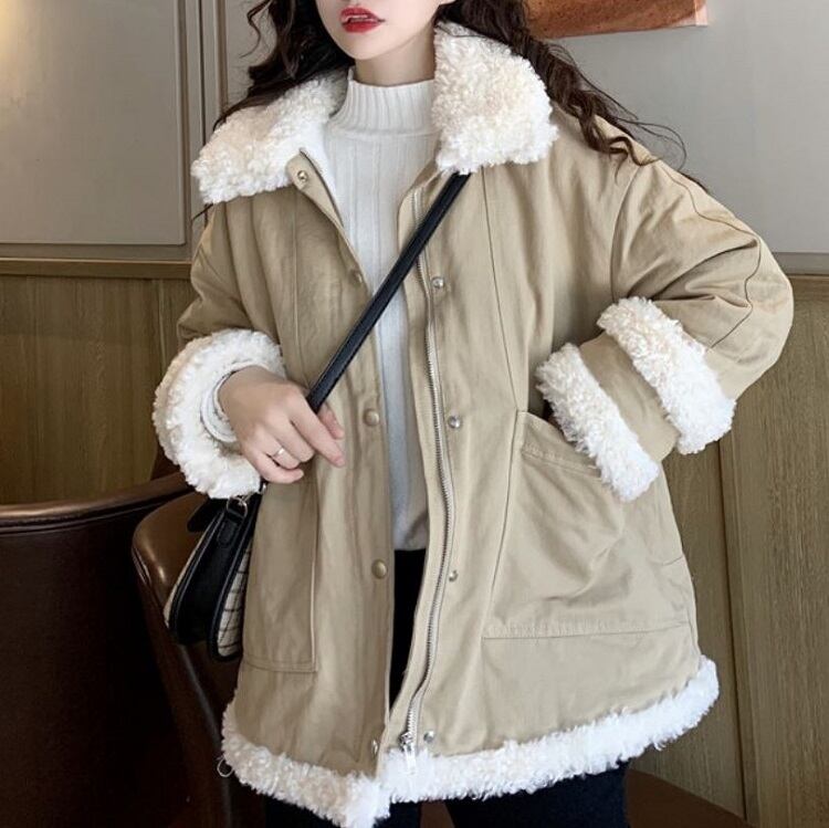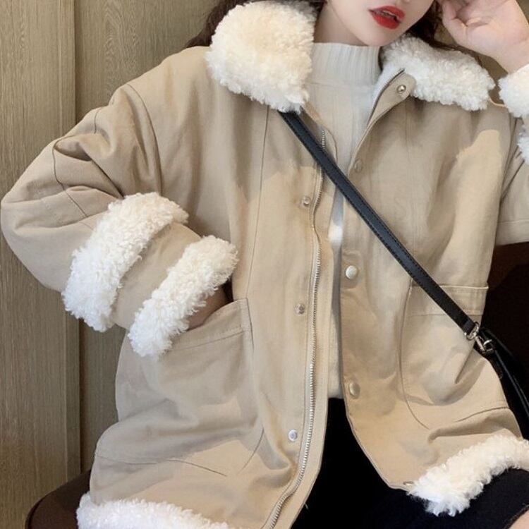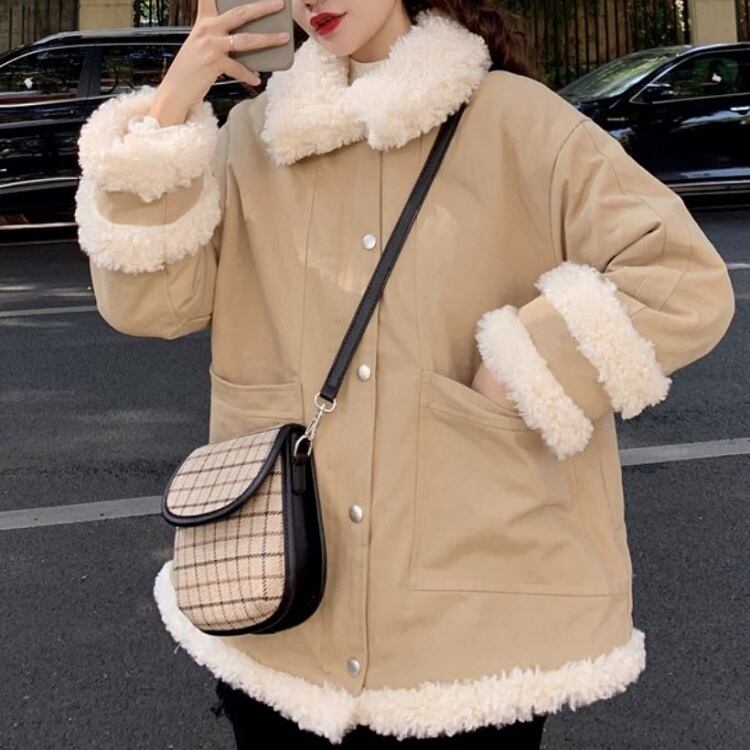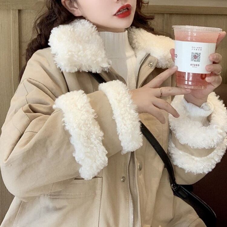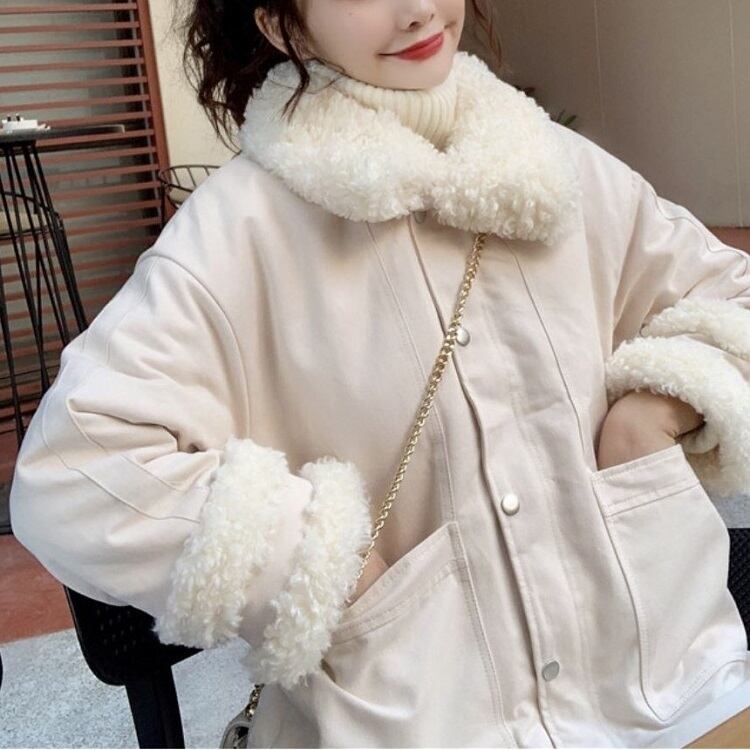 全2色 ハーフコート フェイクファー 襟付き シンプル ゆったり カジュアル 無地 通学 通勤 レジャー デイリー 普段着 アプリコット カーキ 秋冬