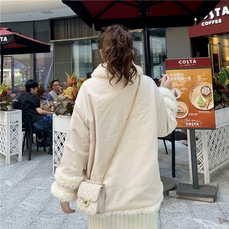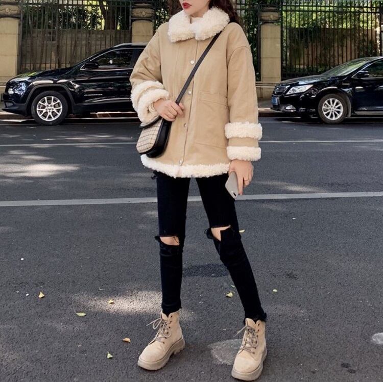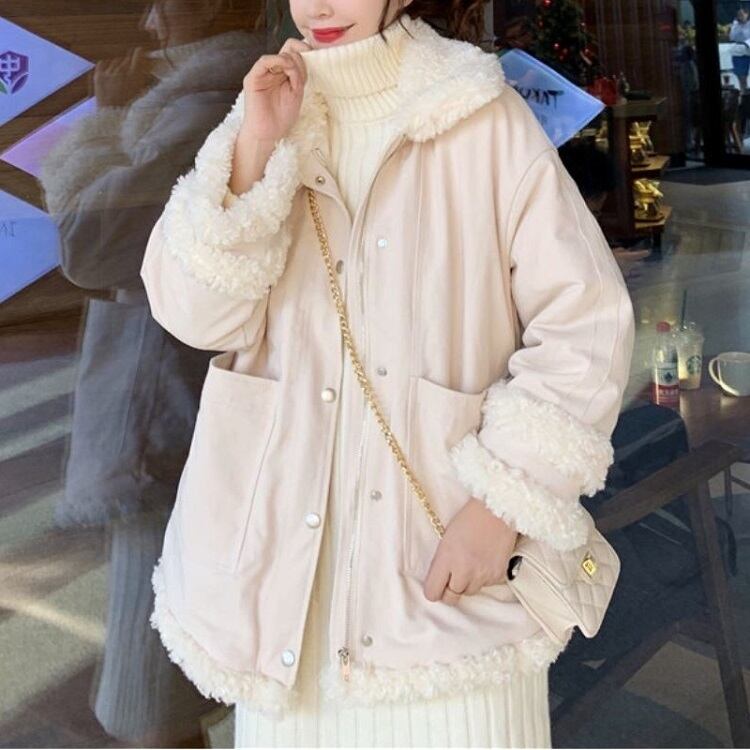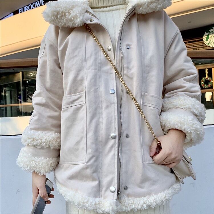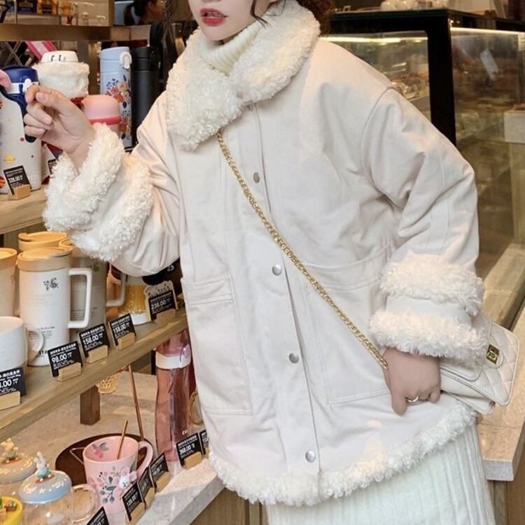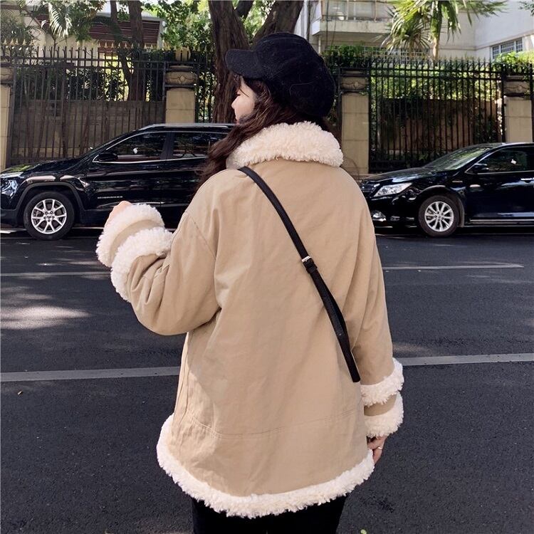 全2色 ハーフコート フェイクファー 襟付き シンプル ゆったり カジュアル 無地 通学 通勤 レジャー デイリー 普段着 アプリコット カーキ 秋冬