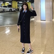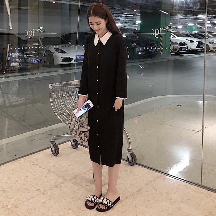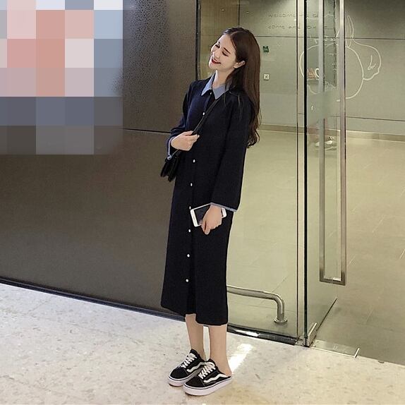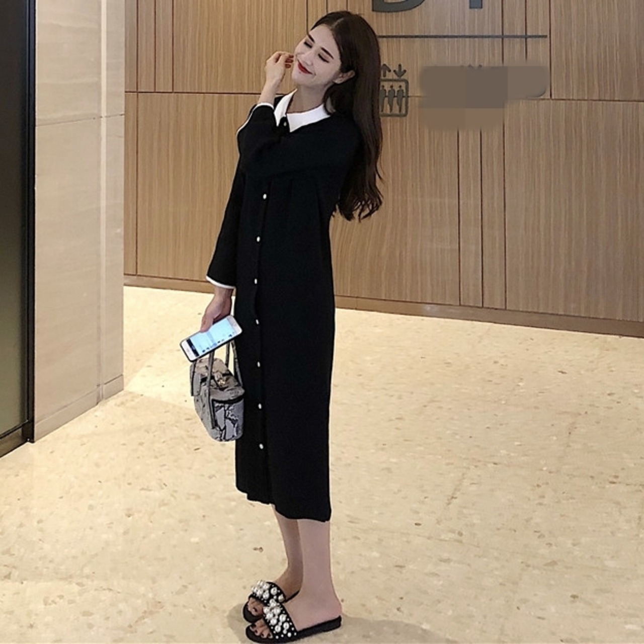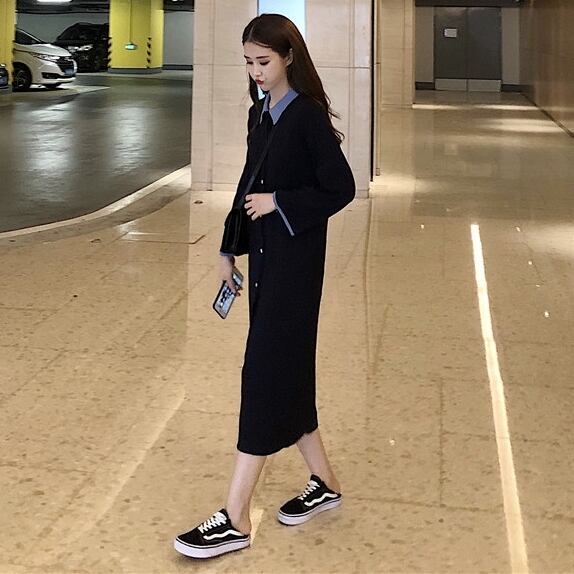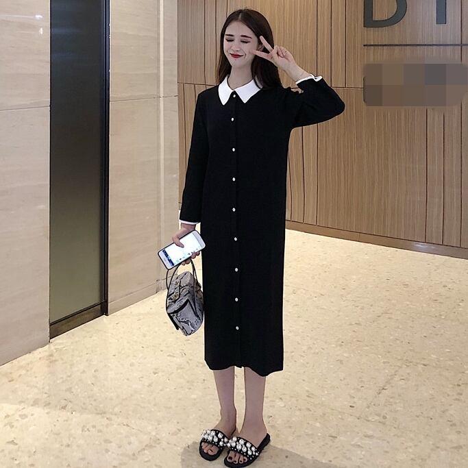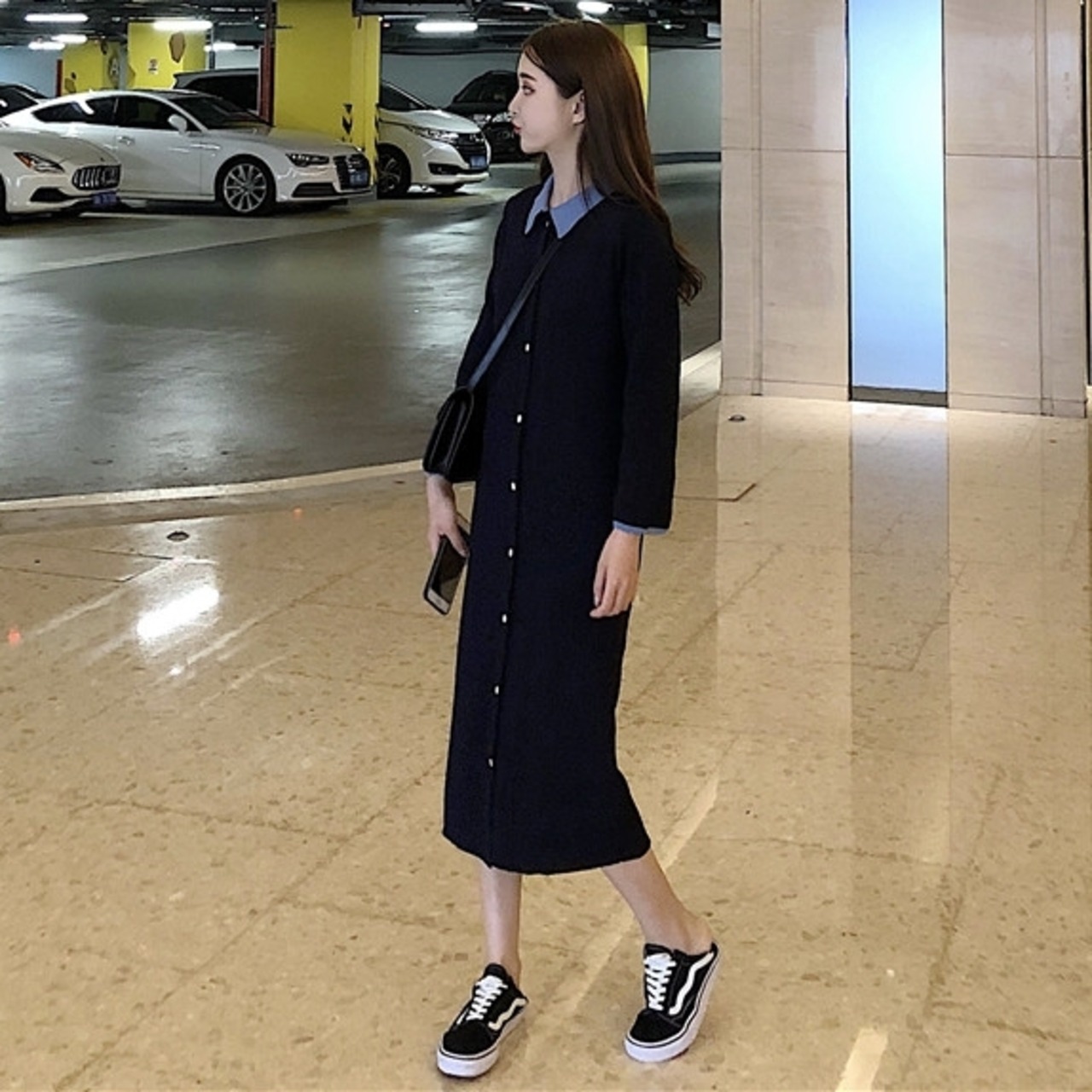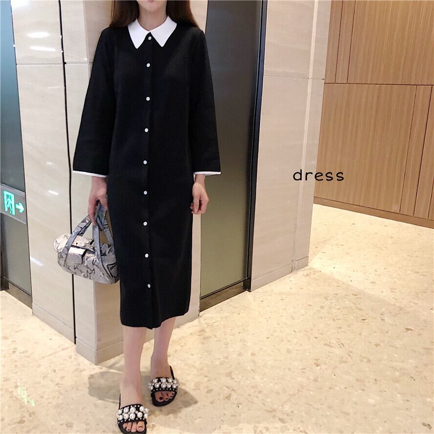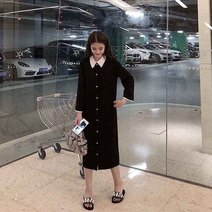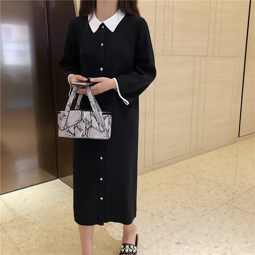 全2色 シャツワンピース 長袖 Iライン ミモレ丈 ひざ下丈 体型カバー フロントボタン 秋冬 カジュアル お出かけ デート 女子会 大人可愛い レトロ フェミニン ガーリー エレガント