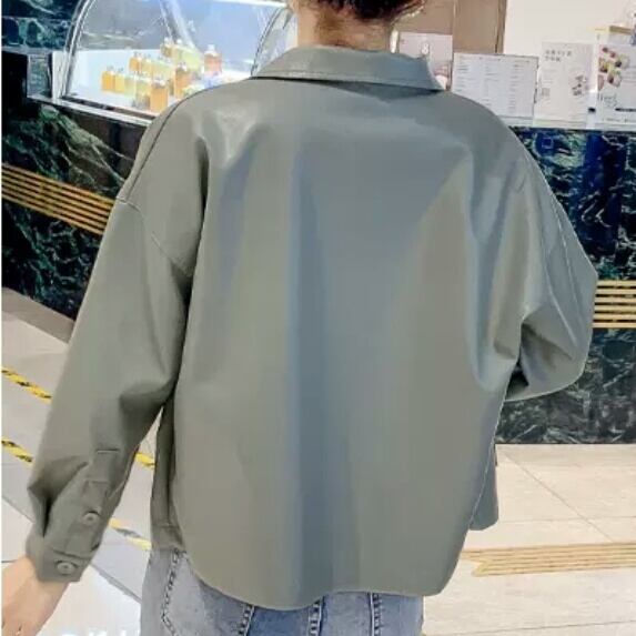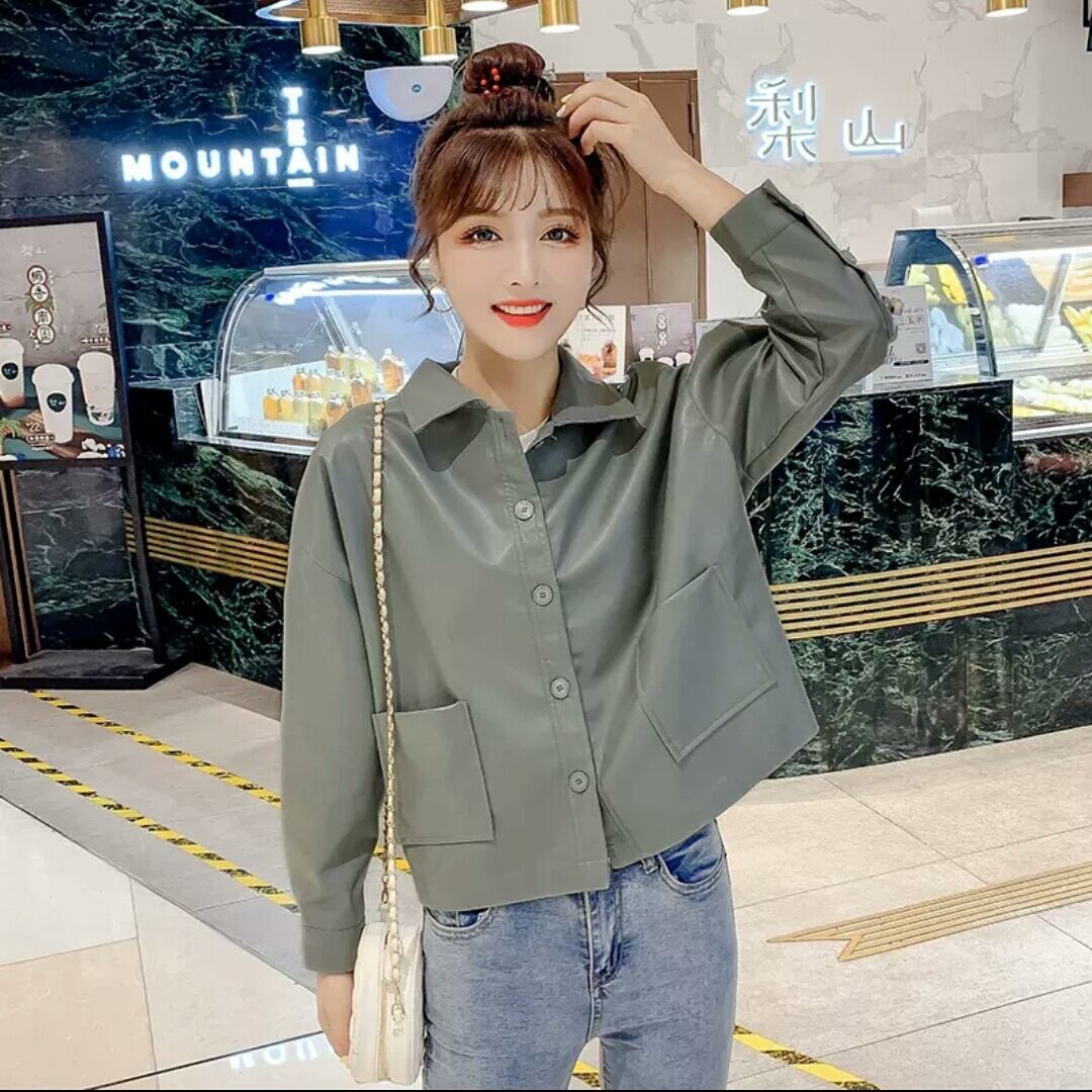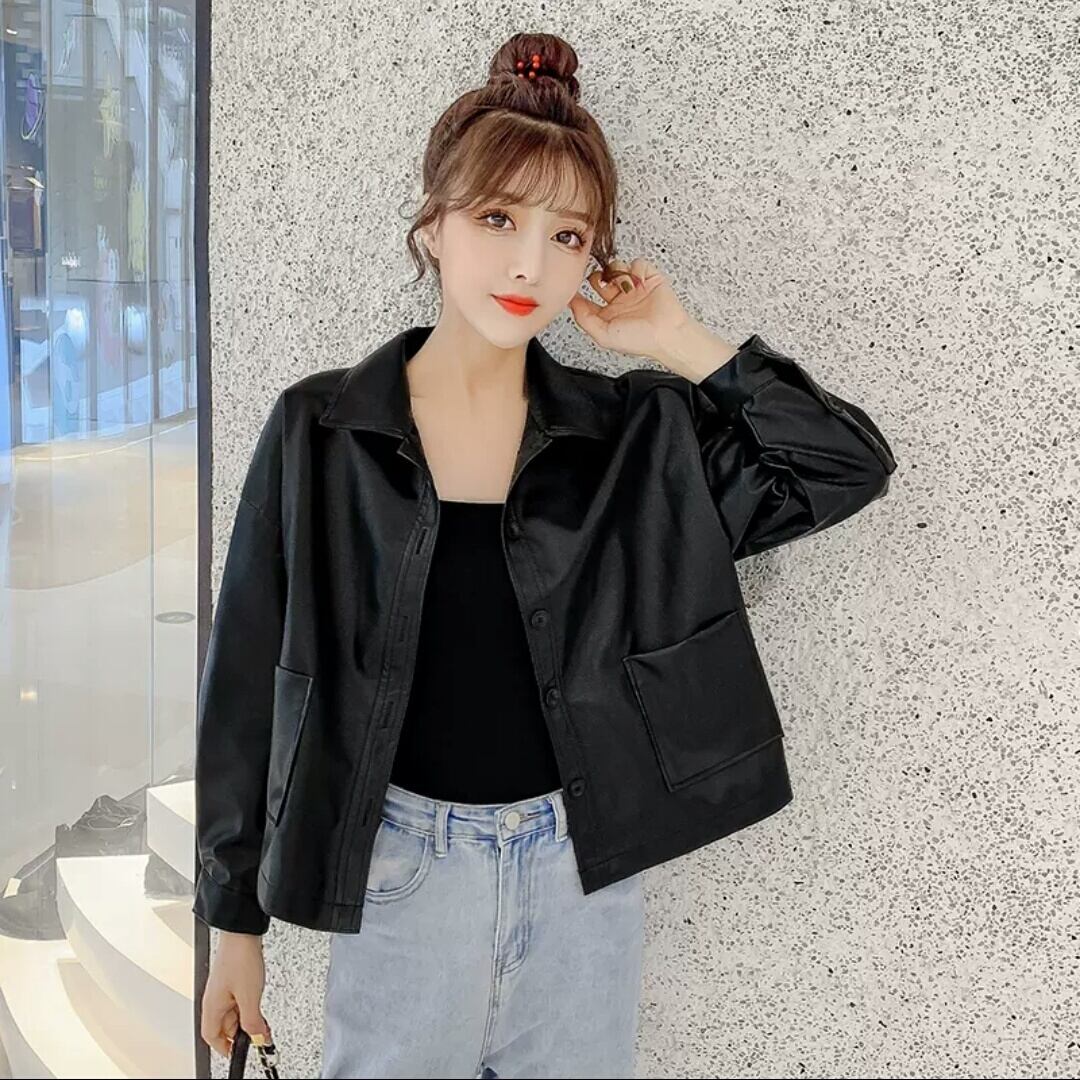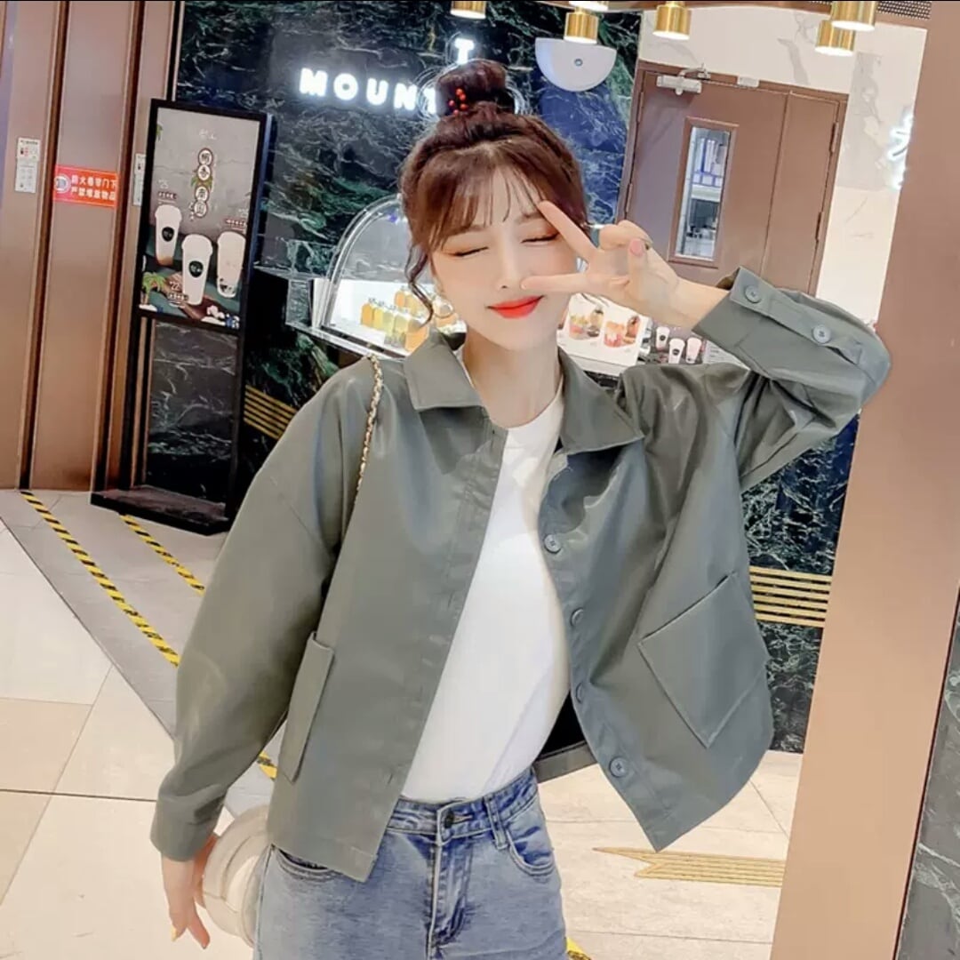 全2色 フェイクレザー ショートコート ジャケット アウター 羽織 襟つき ボタン 大人 可愛い カジュアル キレイめ 無地 お出かけ お買い物 デート 女子会 秋冬 春 通学 学生 通勤