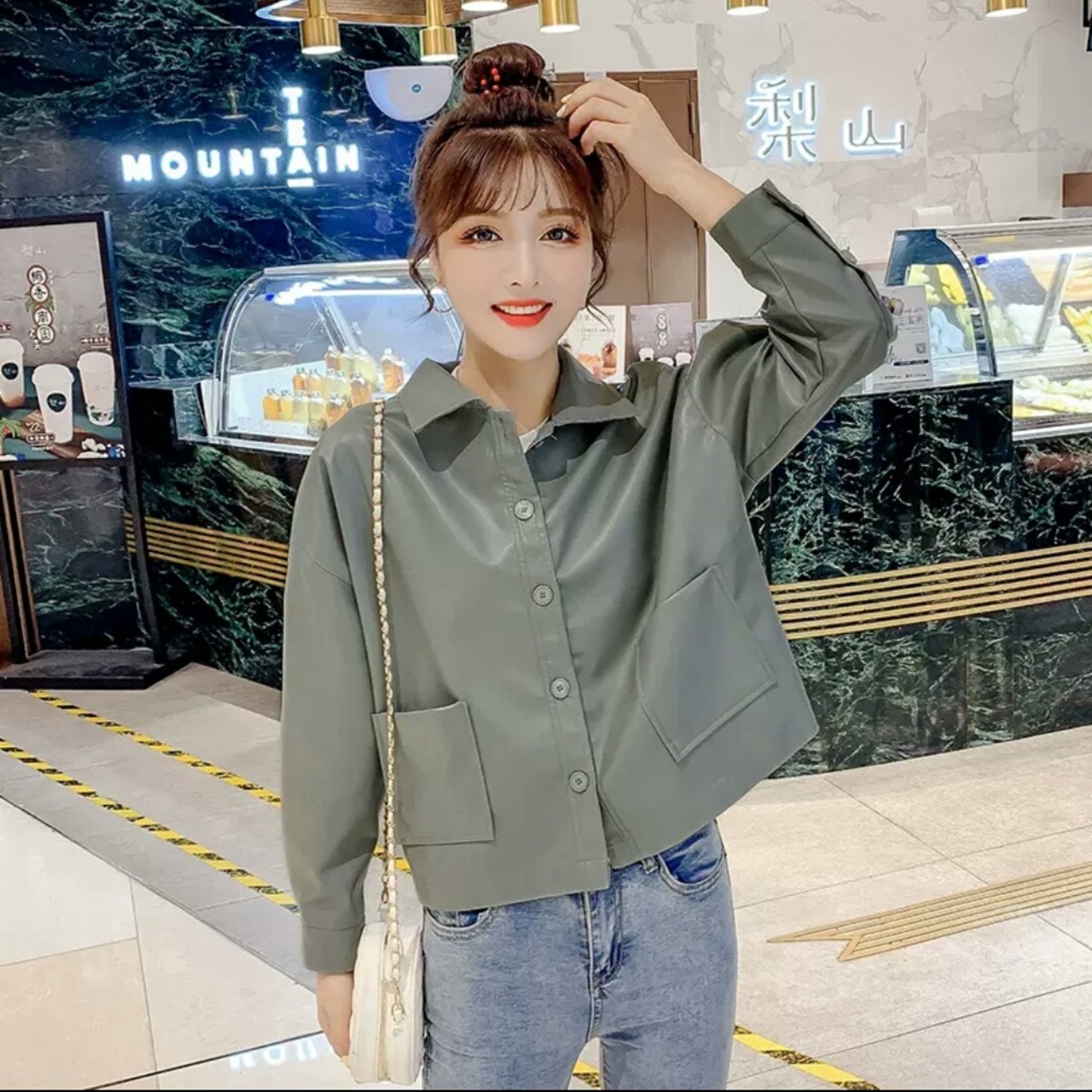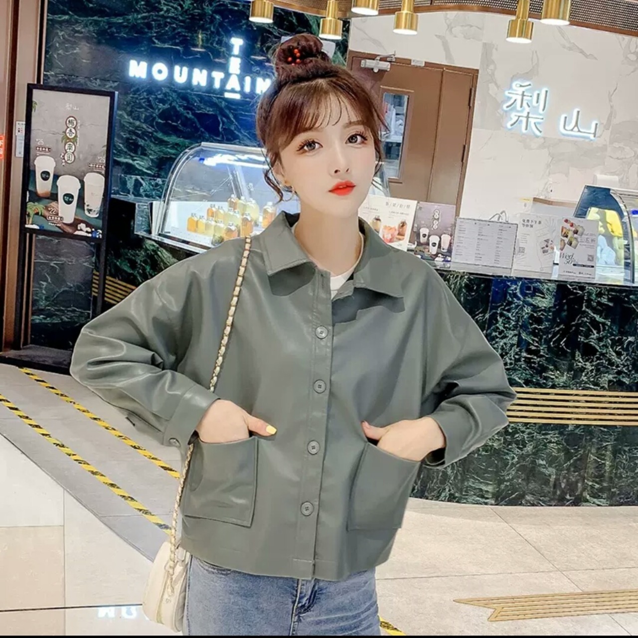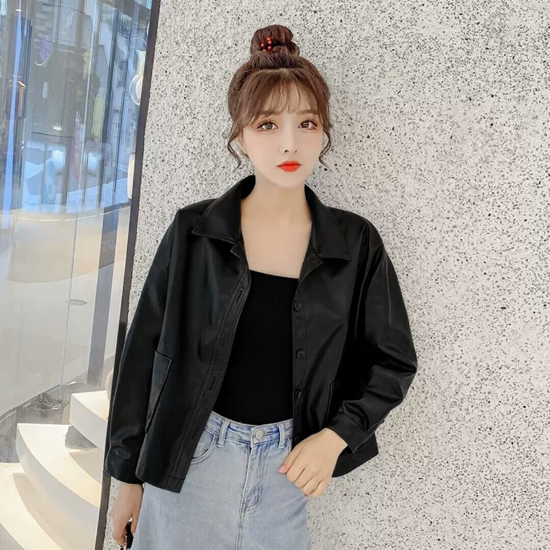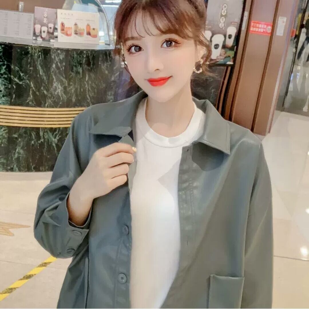 全2色 フェイクレザー ショートコート ジャケット アウター 羽織 襟つき ボタン 大人 可愛い カジュアル キレイめ 無地 お出かけ お買い物 デート 女子会 秋冬 春 通学 学生 通勤