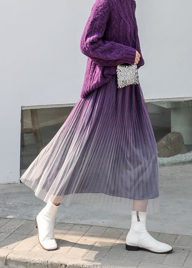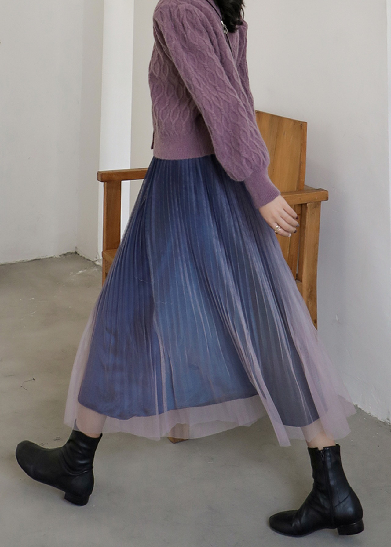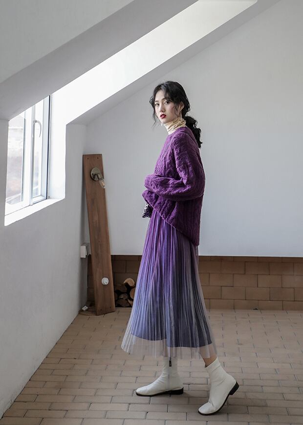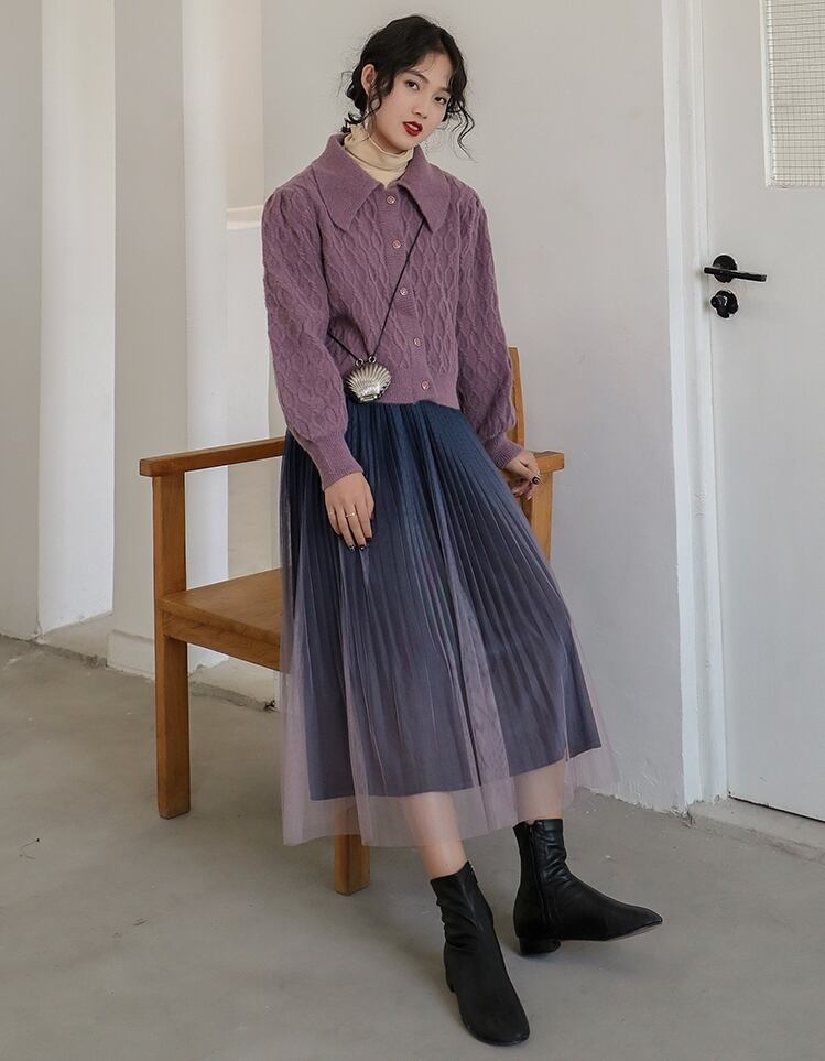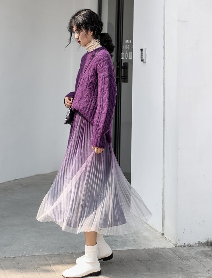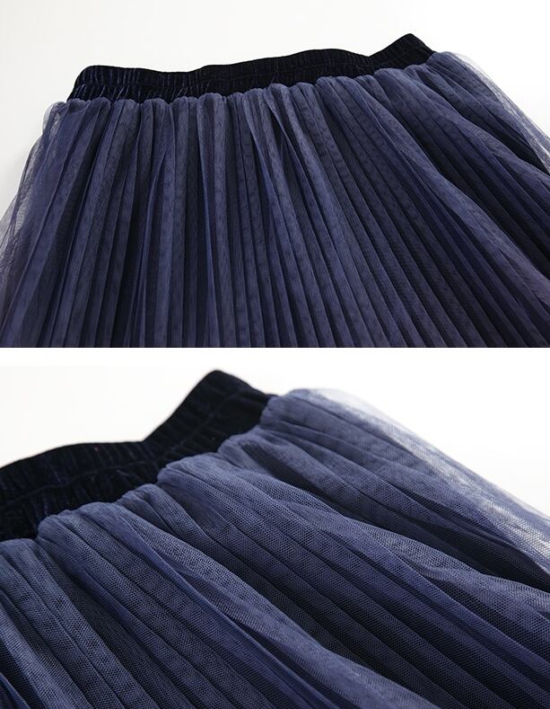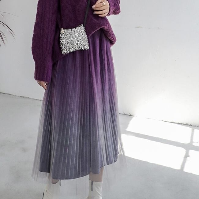 全2色 プリーツ スカート ミモレ丈 ロング グラデーション ベルベット ハイウエスト ウエストゴム ボトムス ガーリー 大人可愛い カジュアル きれいめ デート 秋 春 冬