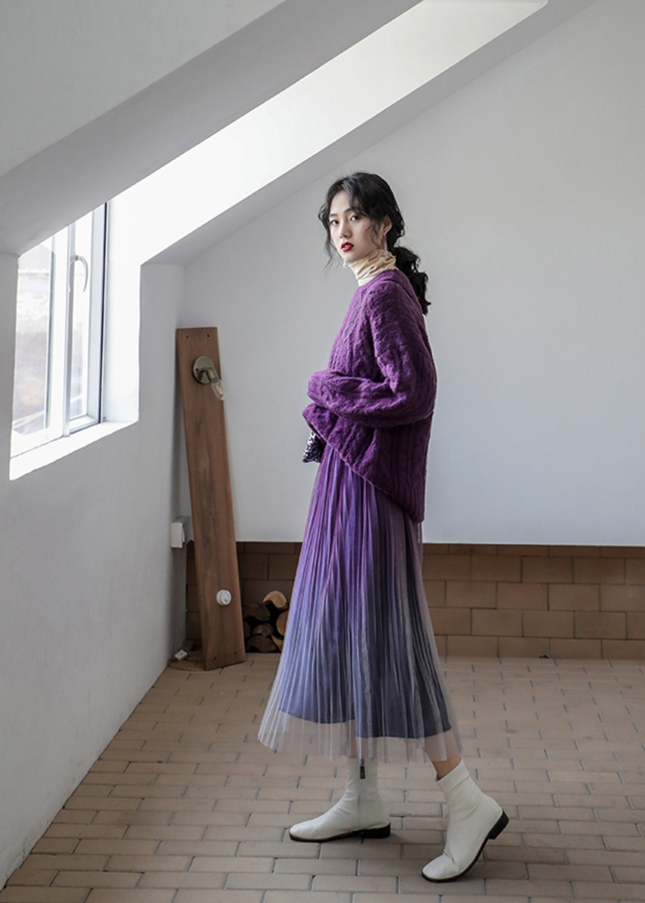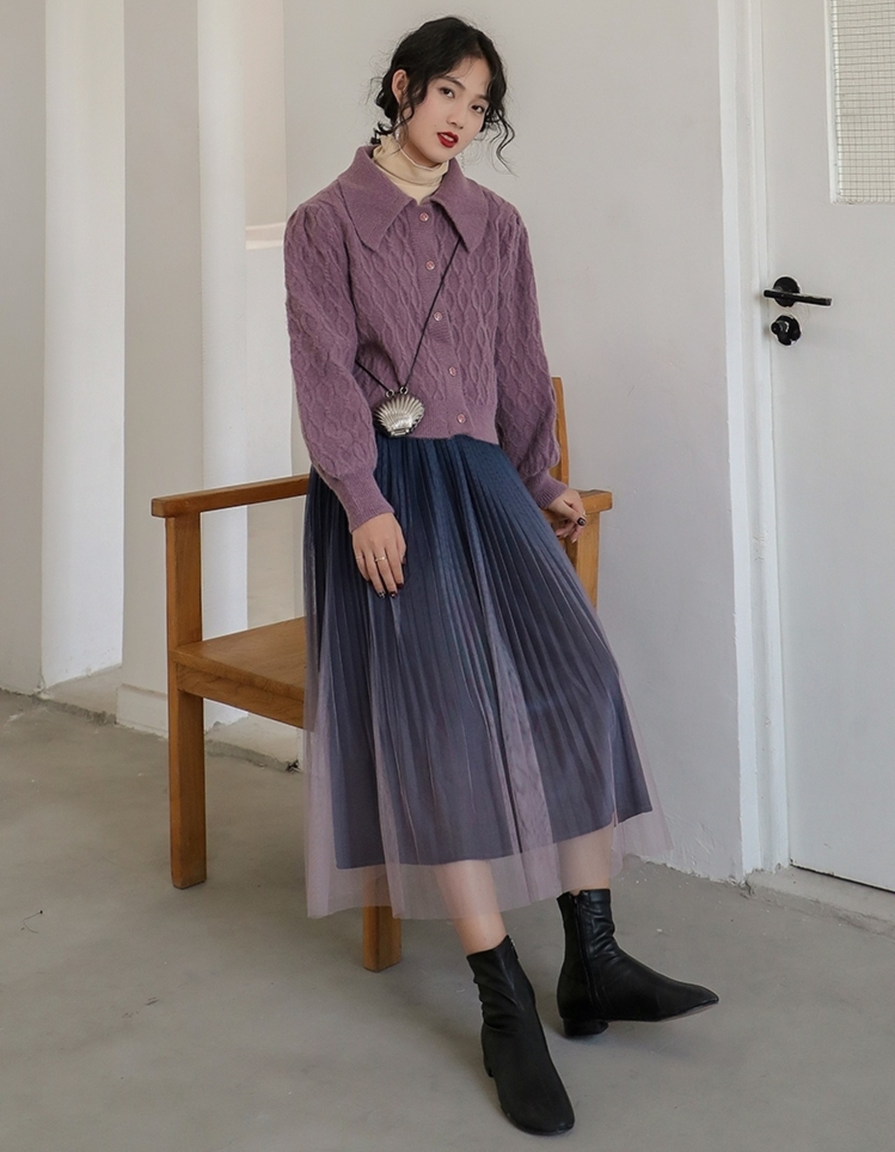 プリーツ加工が縦ラインを強調し、すっきりとしたラインに仕上げます。