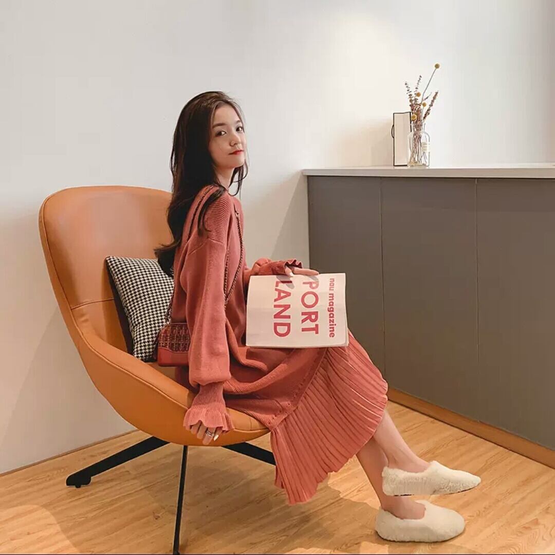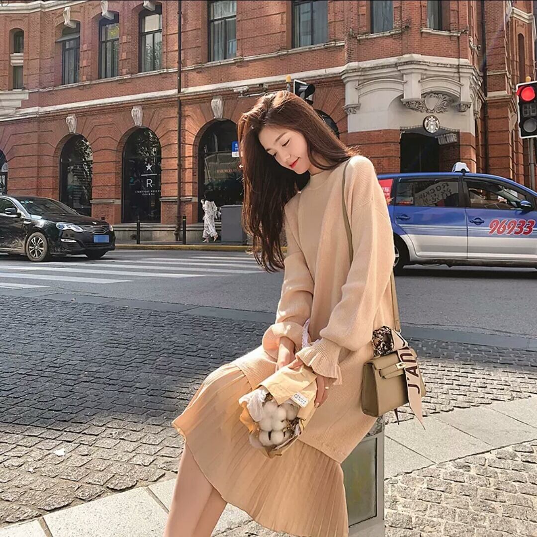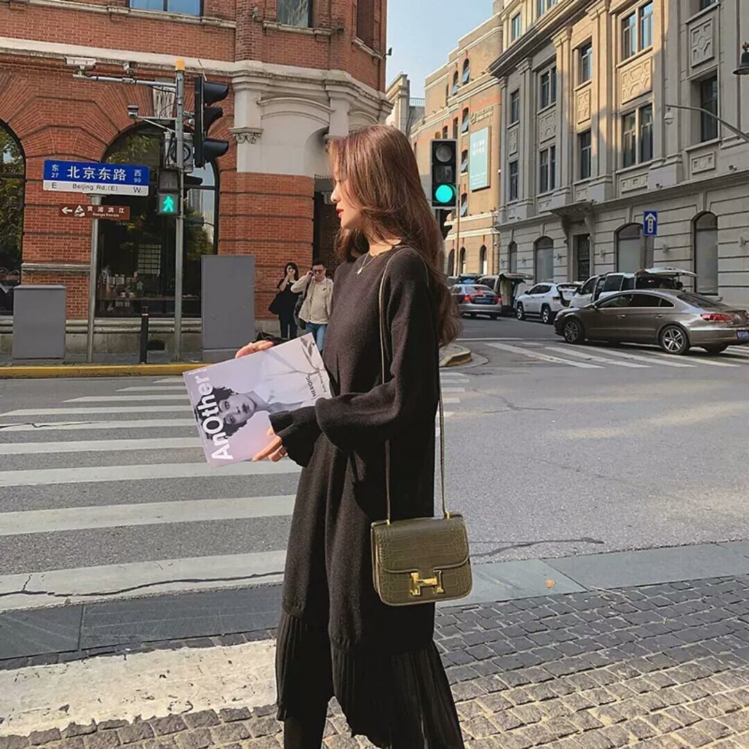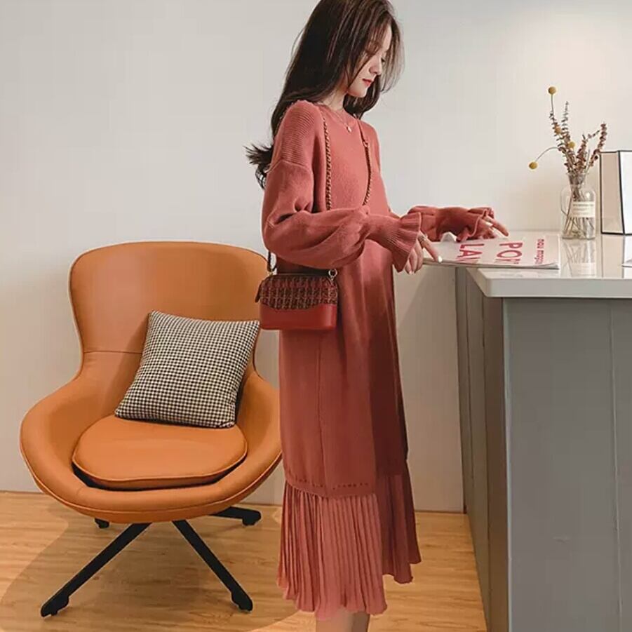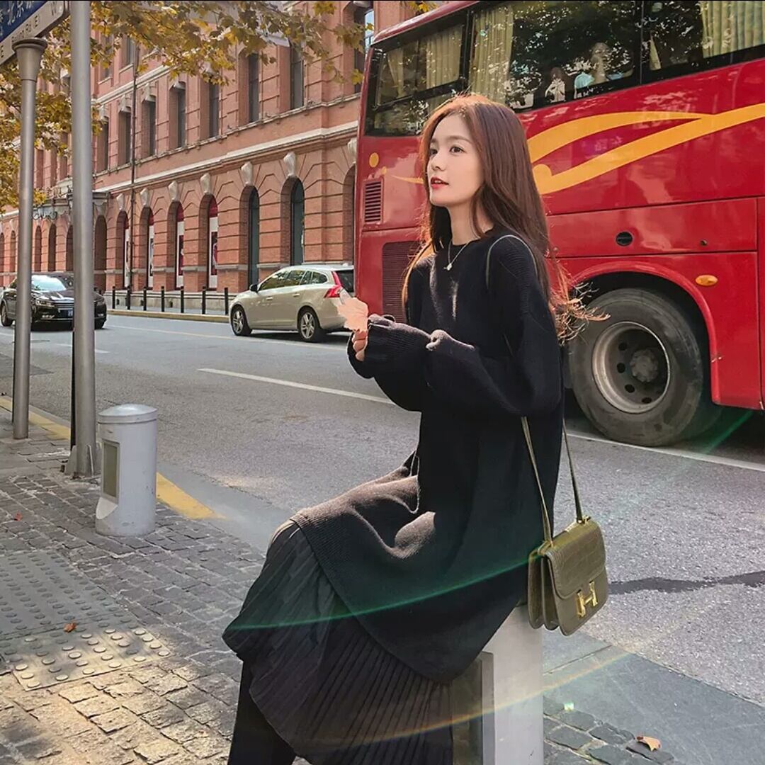 全3色 ロング丈 ニット ワンピース 長袖 ドレス シンプル 大人 無地 上品 キレイめ お出かけ お買い物 デート 女子会 秋冬 春 通学 学生 通勤 韓国ファッション