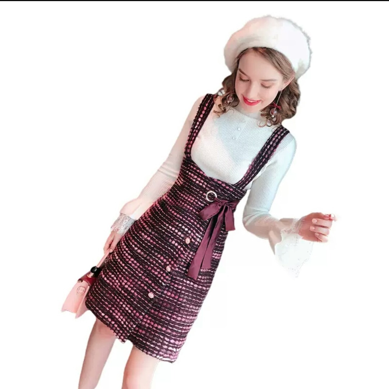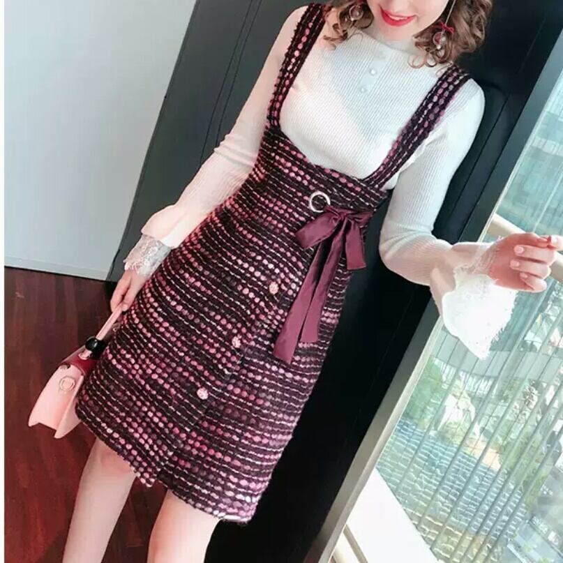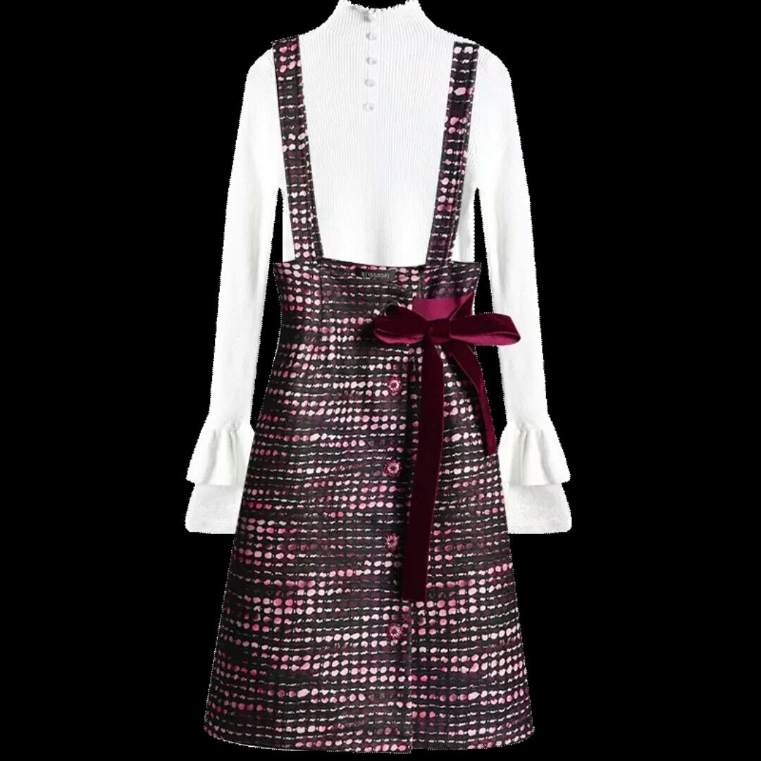 セットアップ ミニ丈 ショート丈 ニット ワンピース サスペンダー リボン 大人 キレイめ 上品 可愛い カジュアル お出かけ お買い物 デート 女子会 秋冬 春 通学 学生 通勤 韓国ファッション