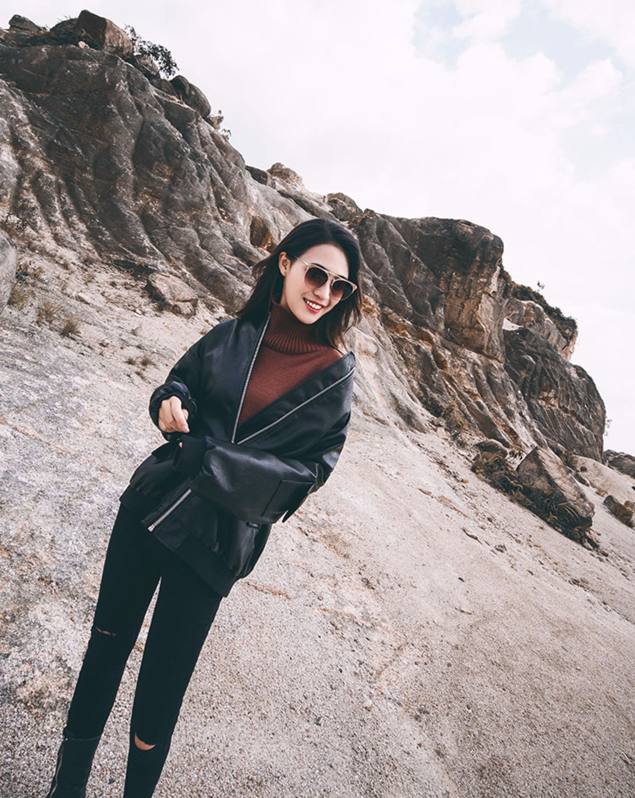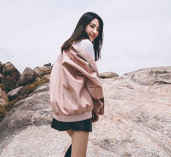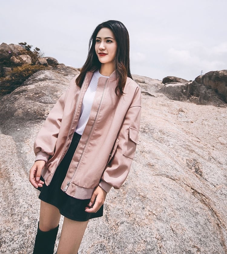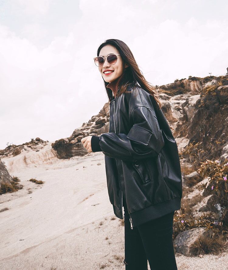 全2色 スタジャン PU ライダースジャケット レザー アウター ジャケット スタンドカラー ポケット クール あったか 大人 カジュアル ファスナー 無地 ミディ 裏起毛 秋 冬 春