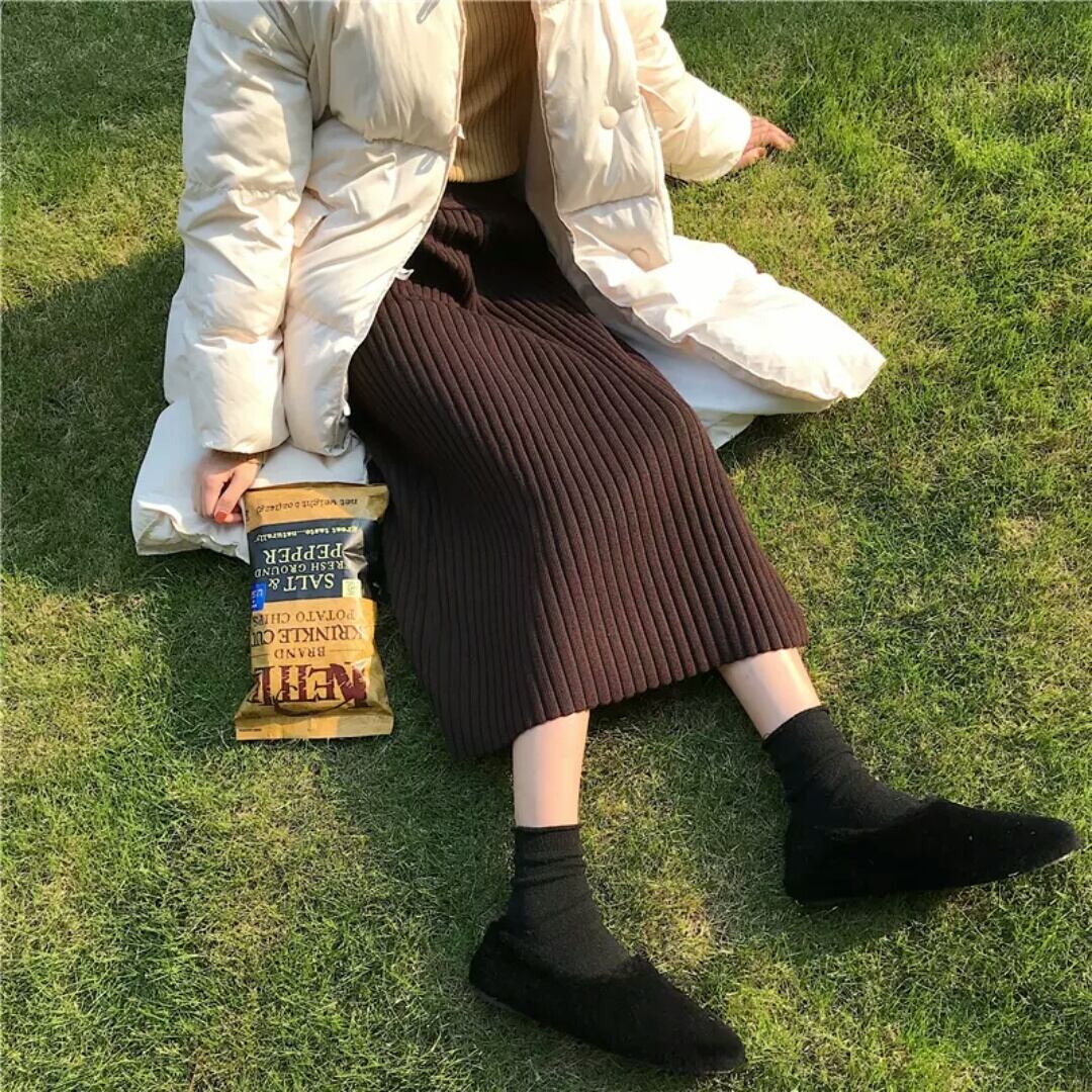全5色 ハイウエスト ニット スカート プリーツ ゴムウエスト 大人 カジュアル キレイめ シンプル お出かけ お買い物 デート 女子会 秋冬 春 通学 学生 通勤