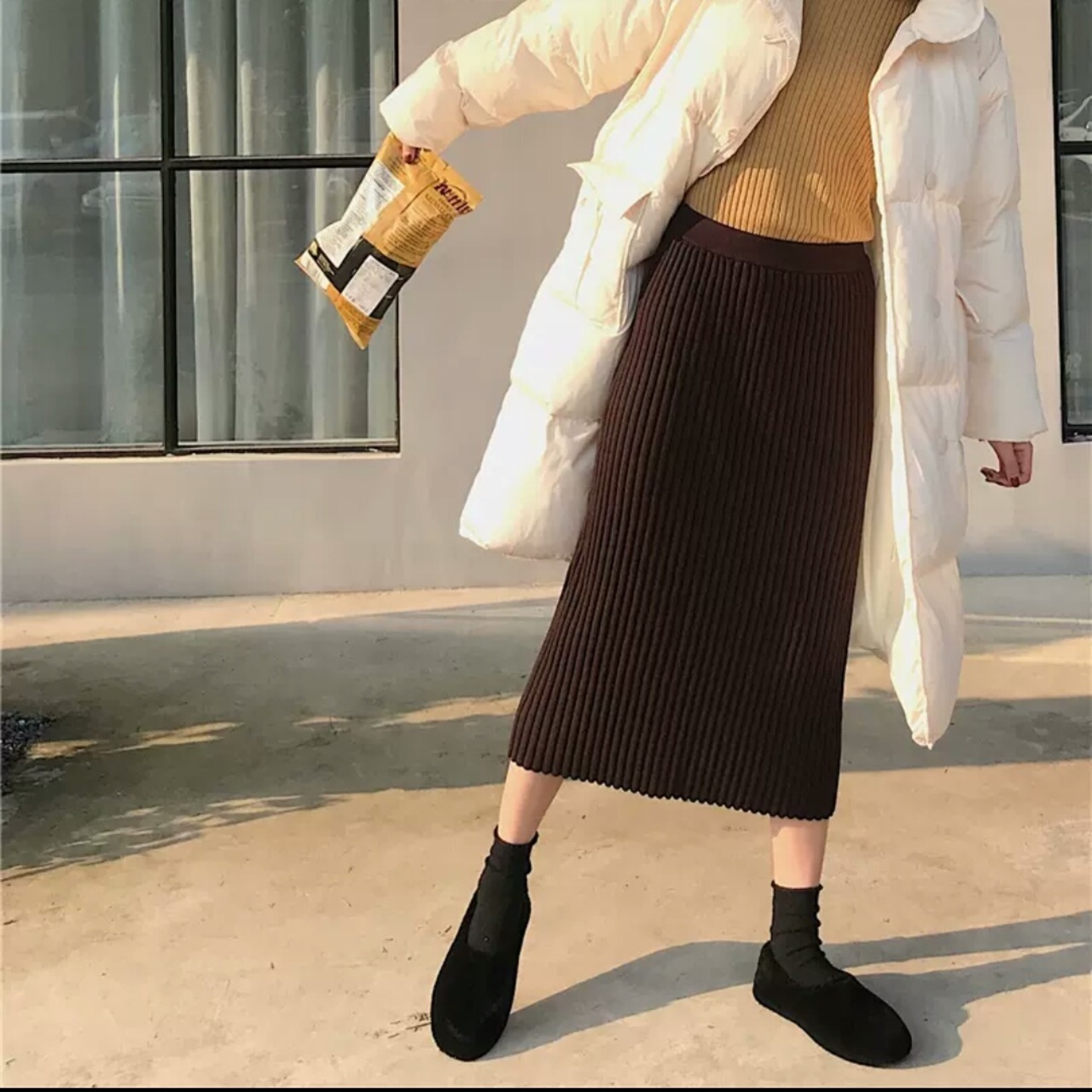 カジュアルなハイウエストニットプリーツスカート♪