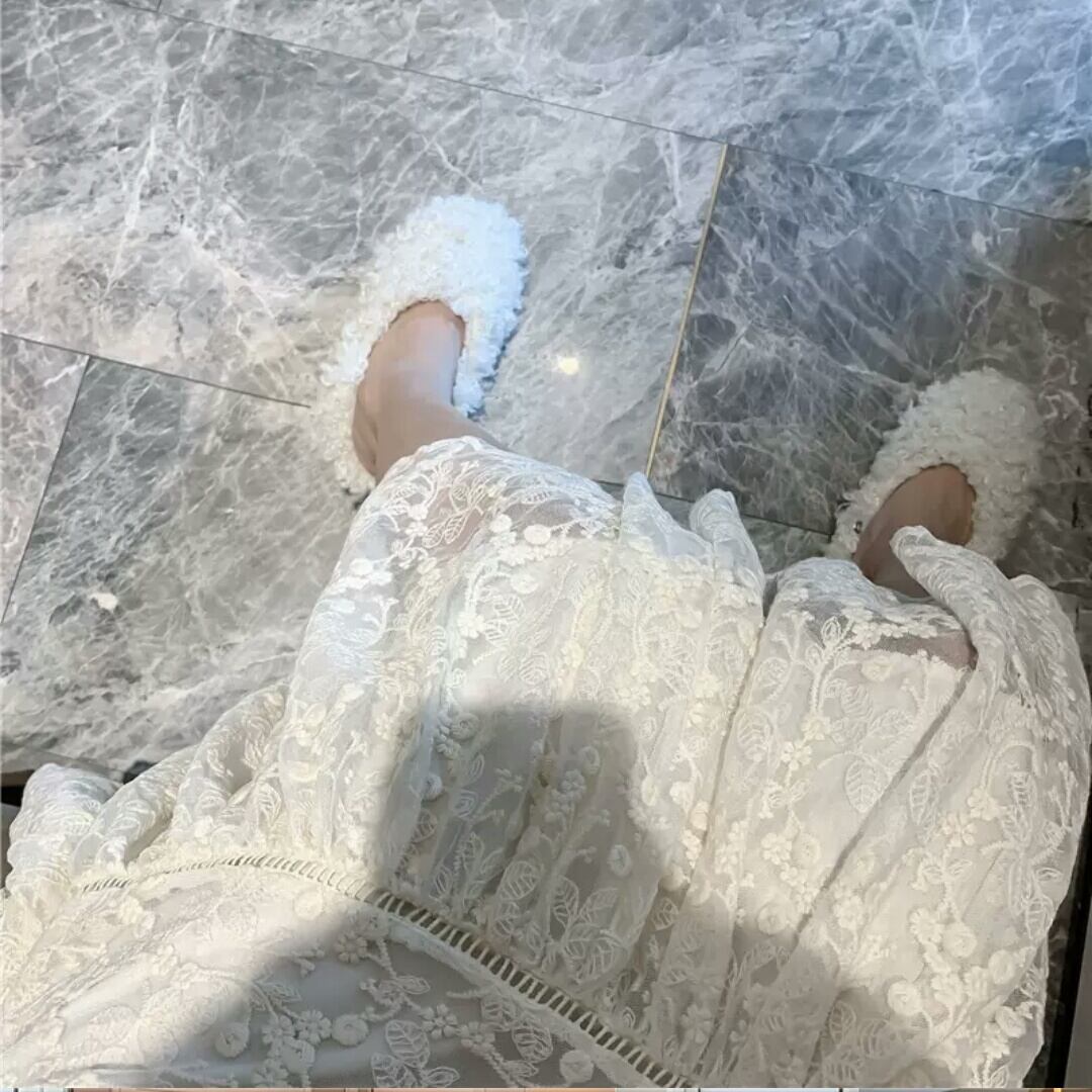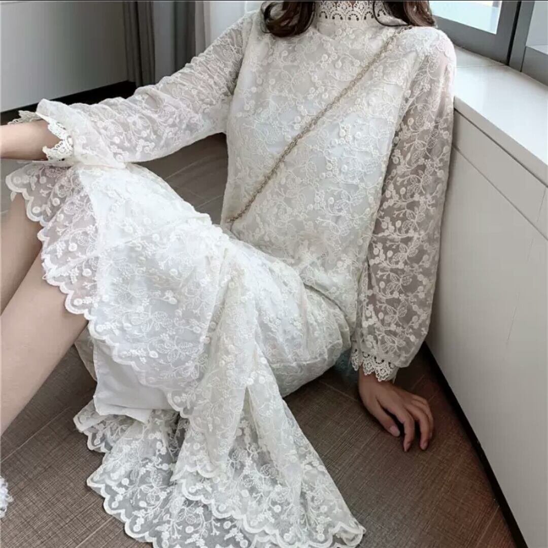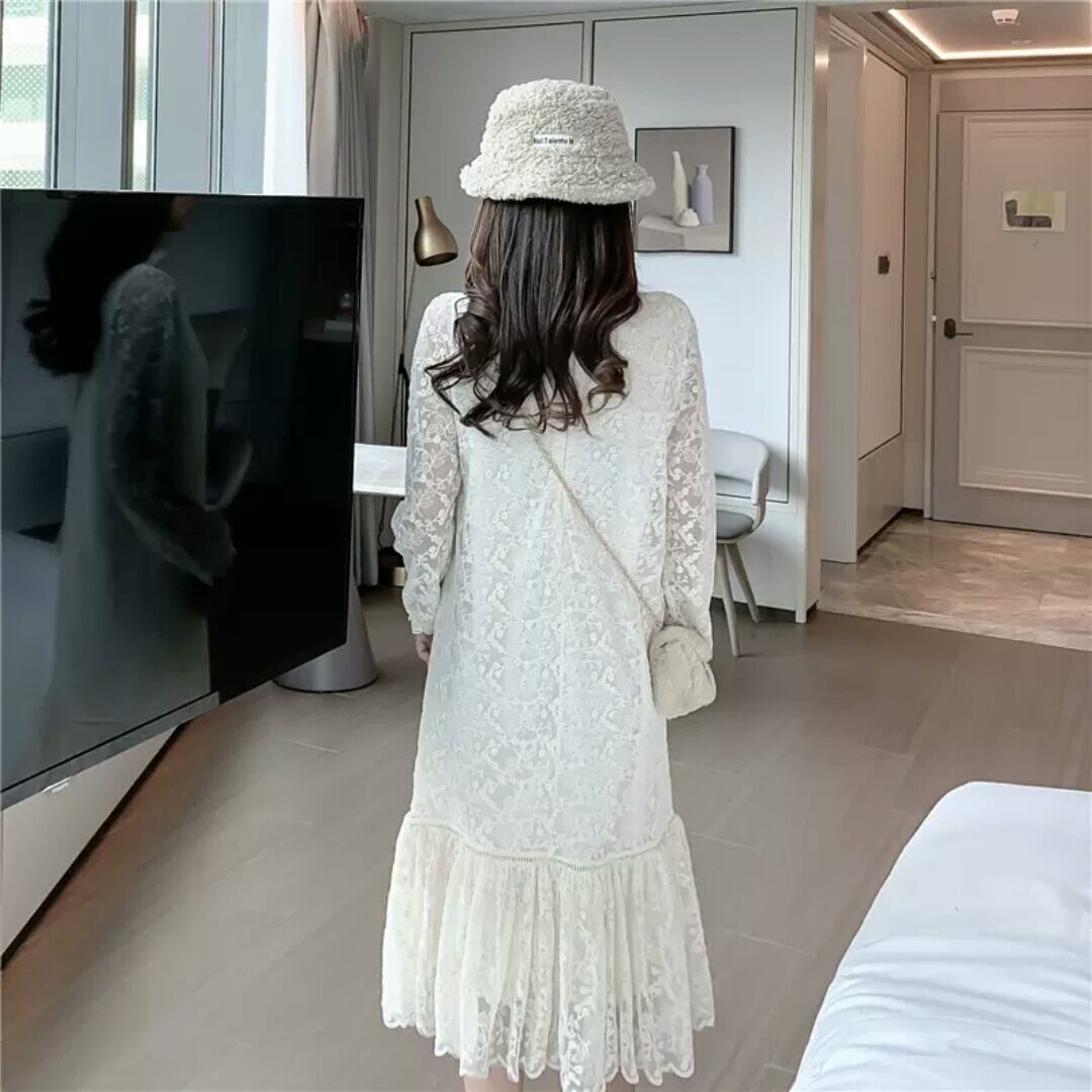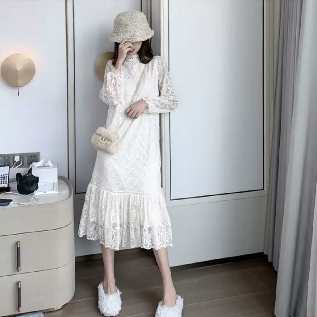 マキシ丈 レース ワンピース 長袖 ドレス シンプル 大人 キレイめ 上品 可愛い カジュアル お出かけ お買い物 デート 女子会 秋冬 春 通学 学生 通勤 韓国ファッション