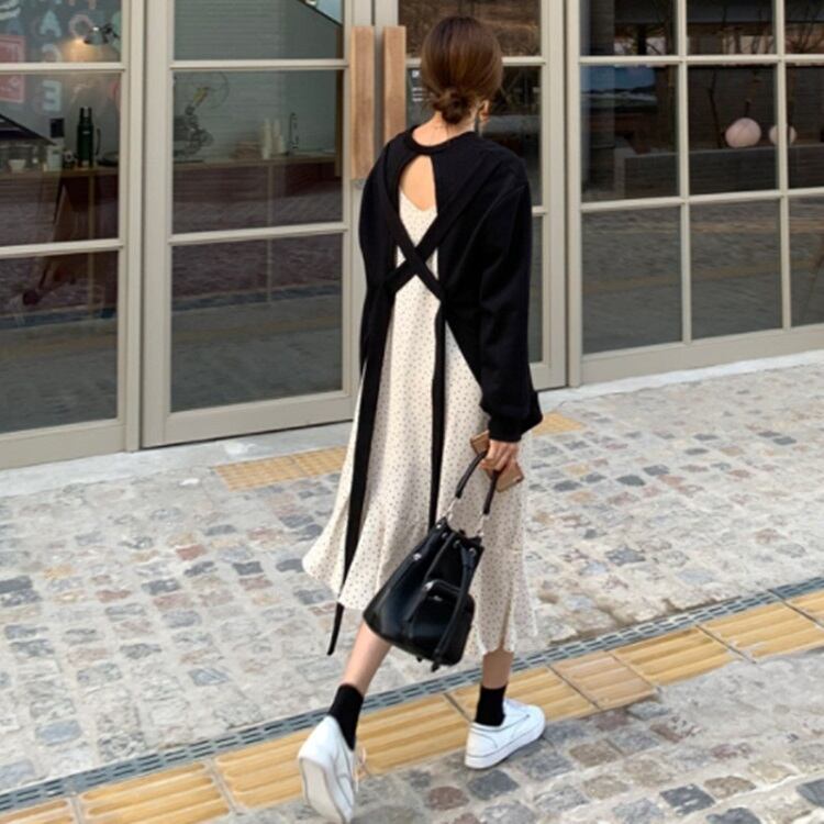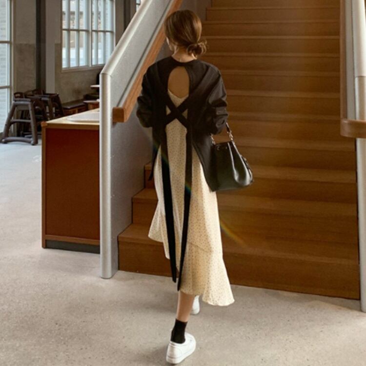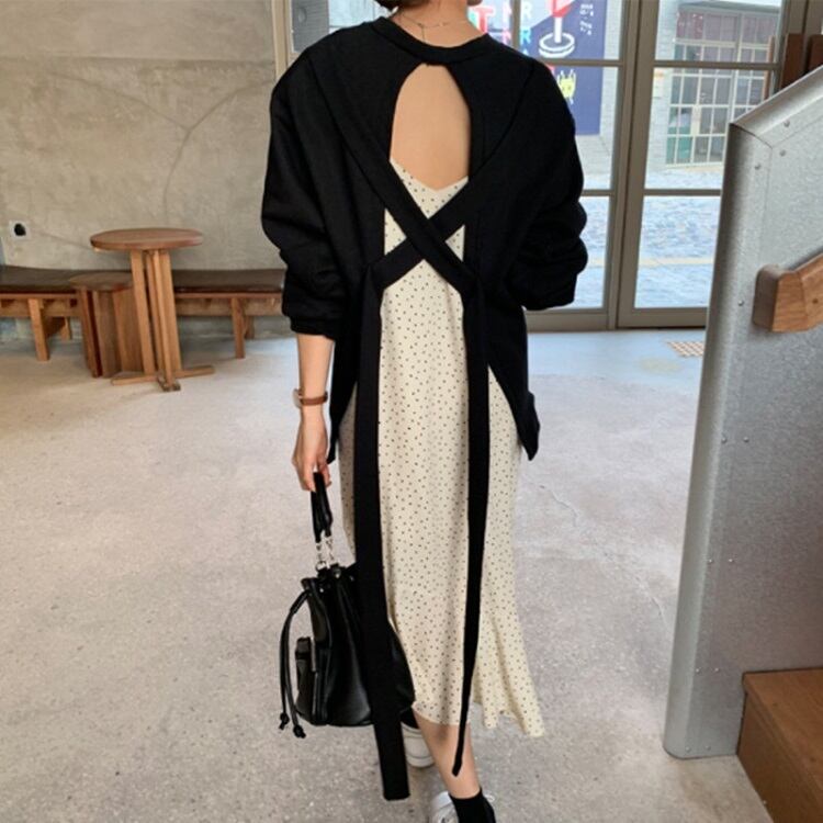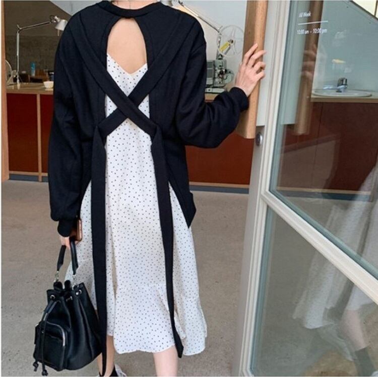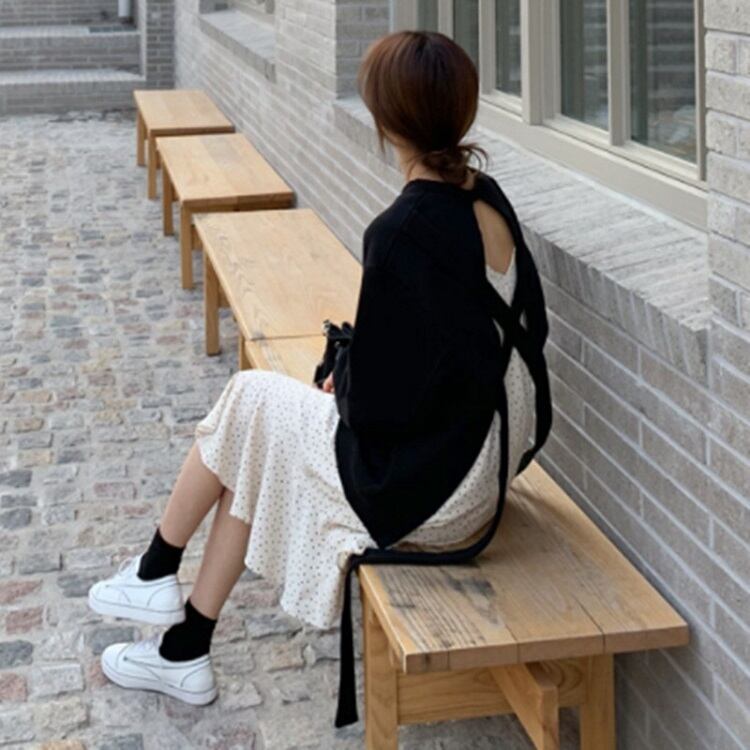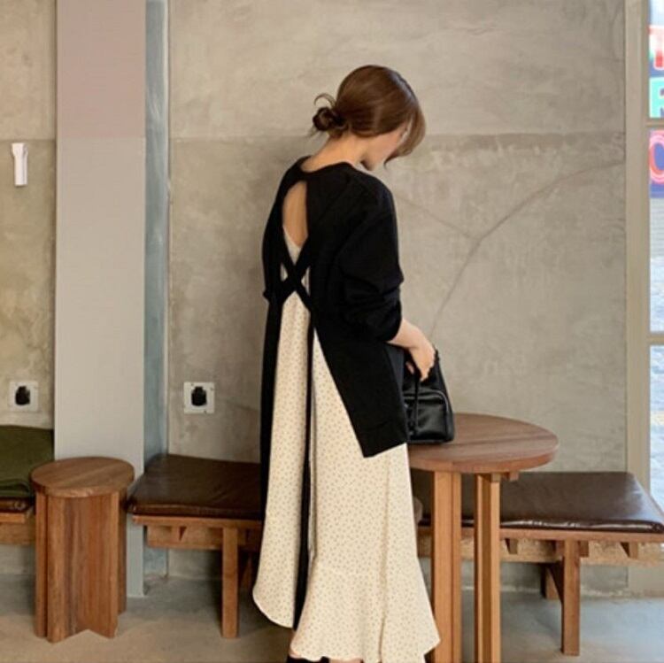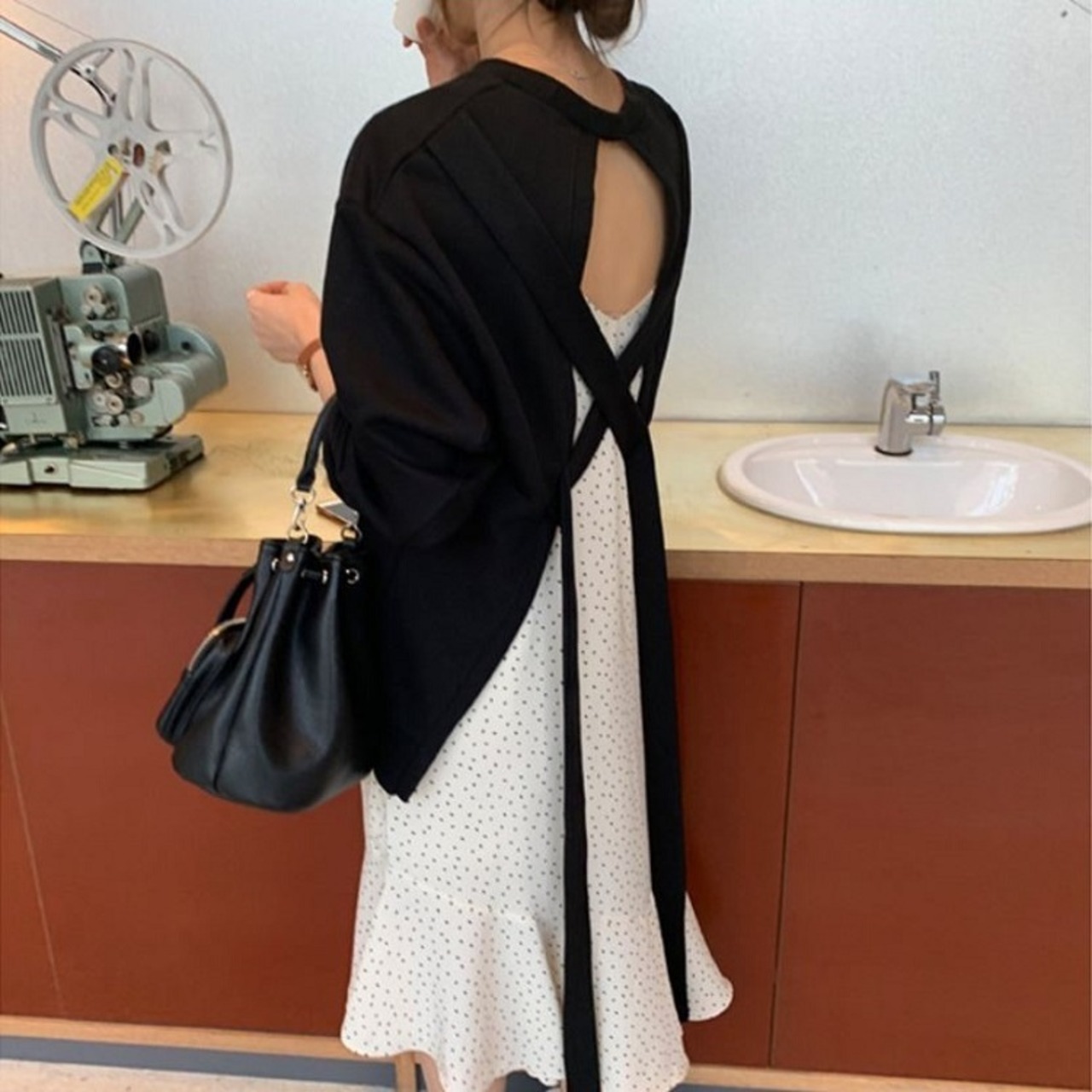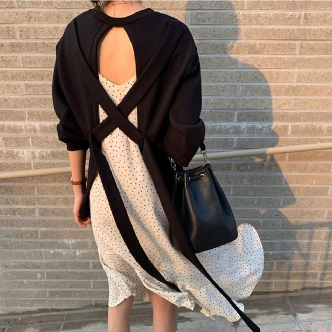 ニットトップス バックコンシャス バックオープン クロス プルオーバー ゆったり セクシー お出かけ カジュアル デート ブラック