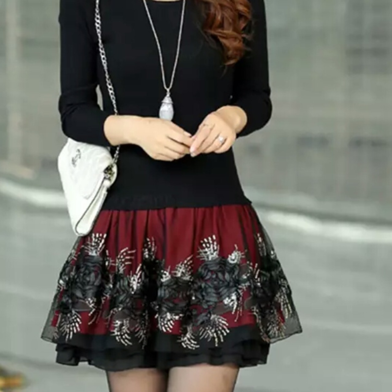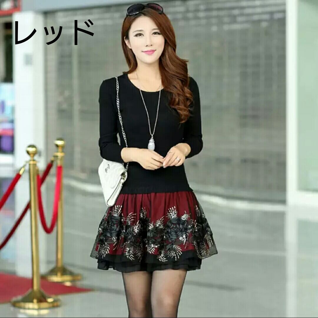 全4種 フリル レース ショート丈 ワンピース 柄 ミニ丈 大人 キレイめ 上品 お出かけ お買い物 デート 女子会 秋冬 春 通学 学生 通勤 韓国ファッション