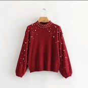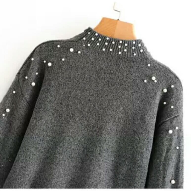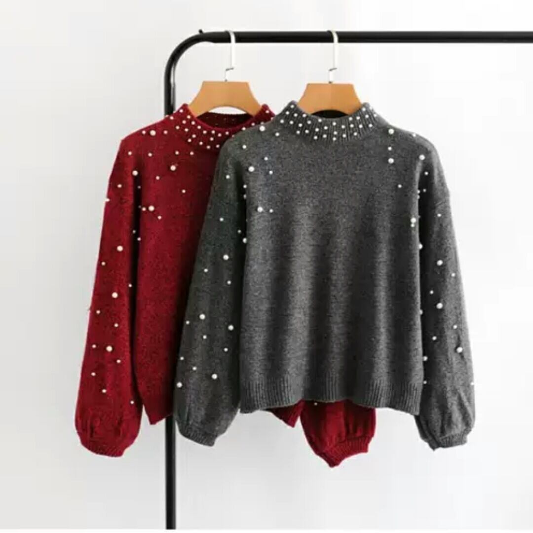 ビーズ刺繍がお洒落なハーフタートルネックセーター♪