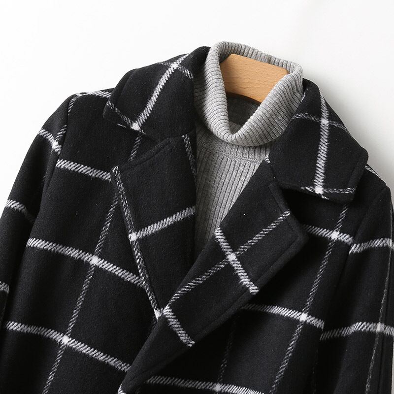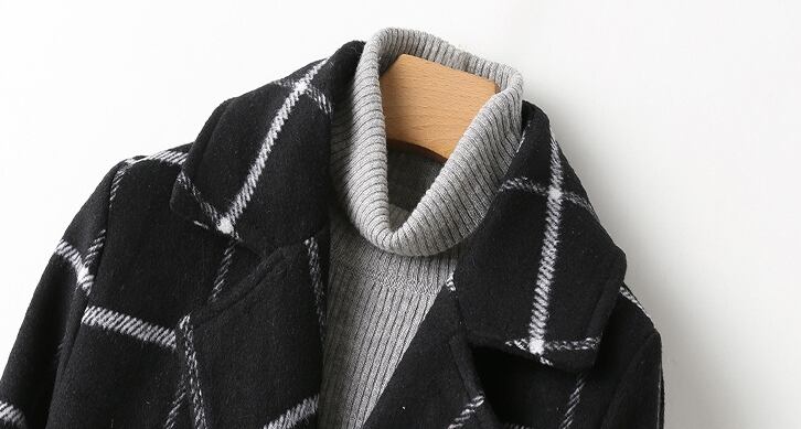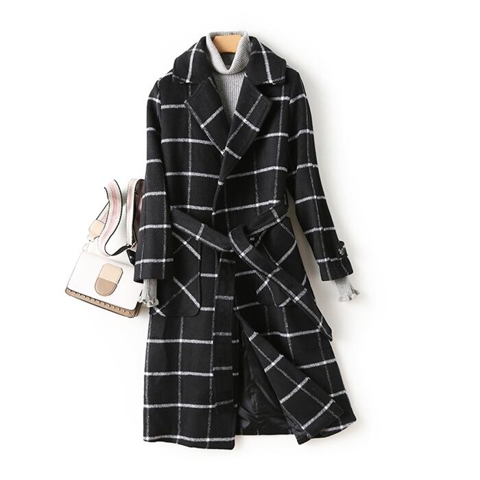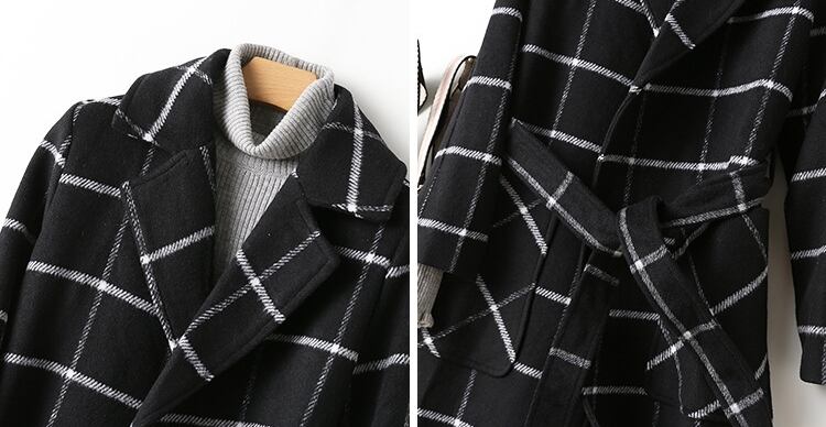 アウター コート トレンチコート ミドル丈 ウール ウエストリボン ロングコート チェック柄 モノトーン 大人 カジュアル シンプル 通学 秋 春 冬