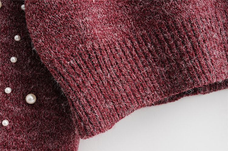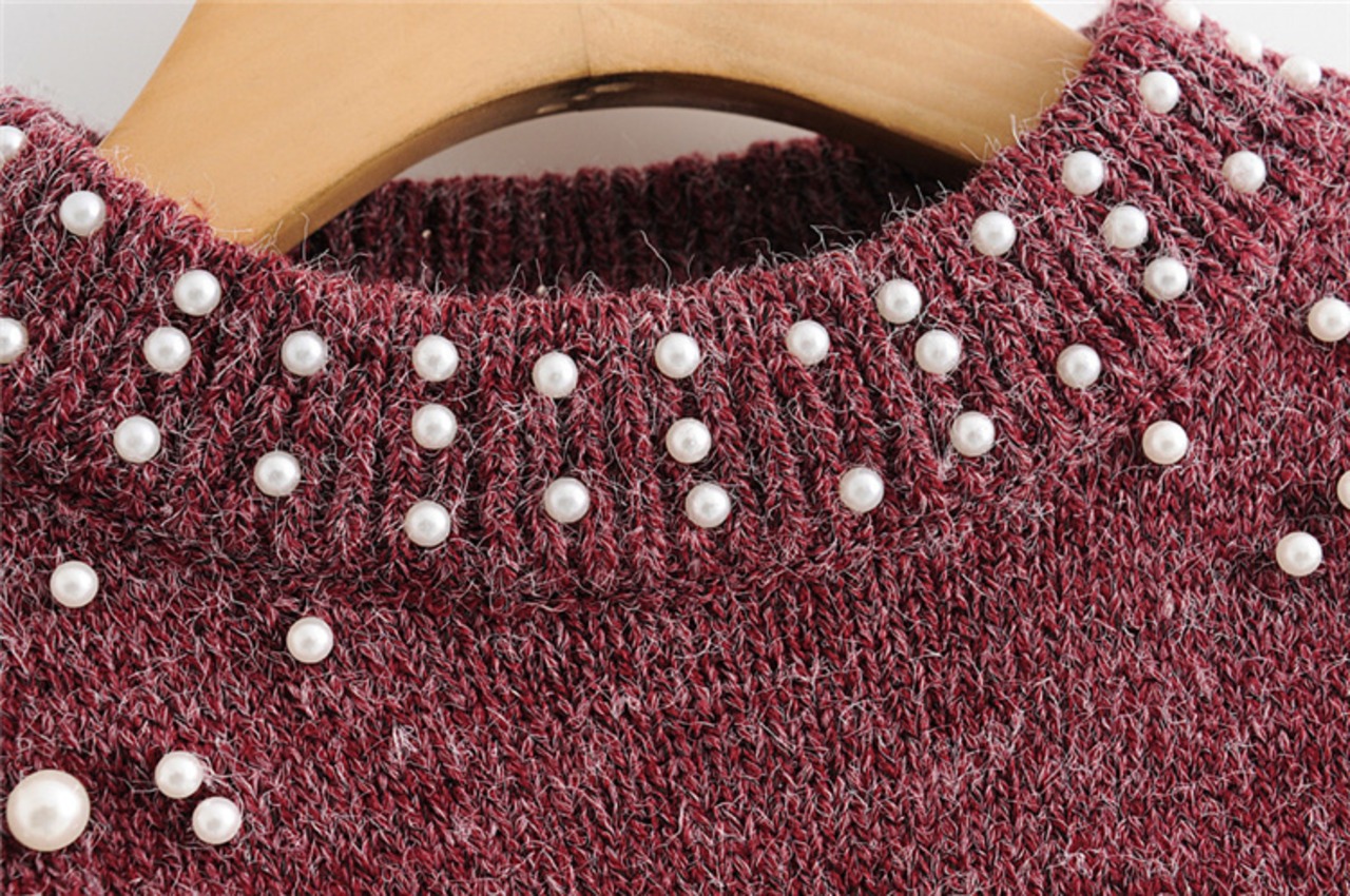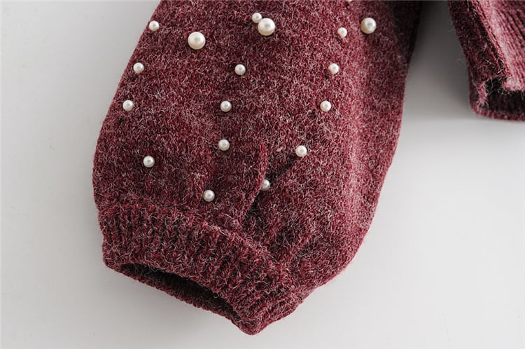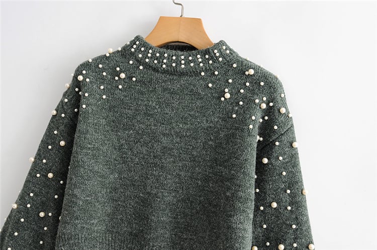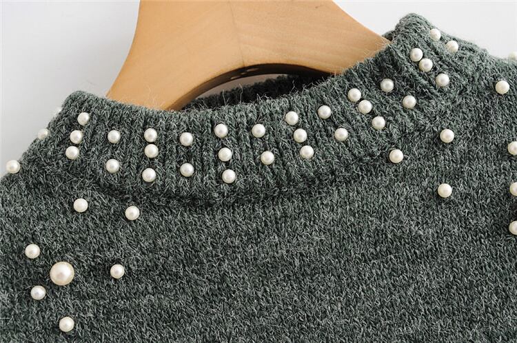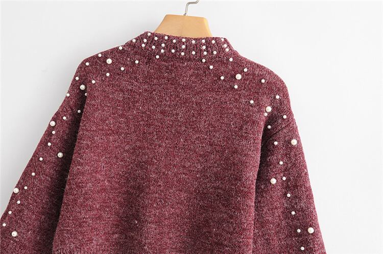 ネックラインから袖にあしらった不揃いのビーズが綺麗なニットトップス
