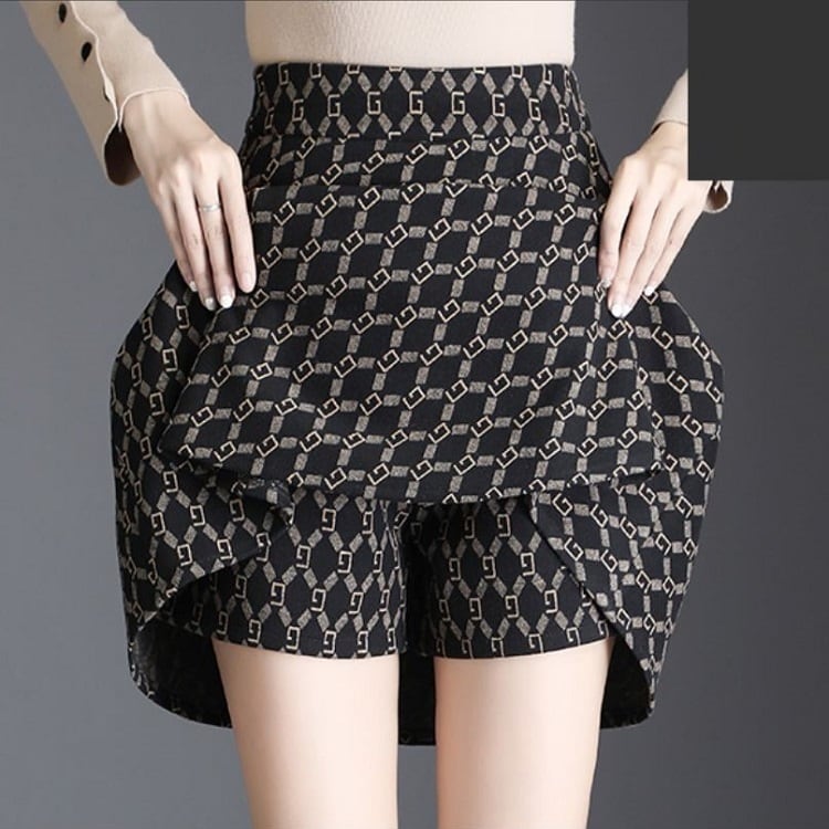 レトロな柄が大人っぽい雰囲気のミニスカート。