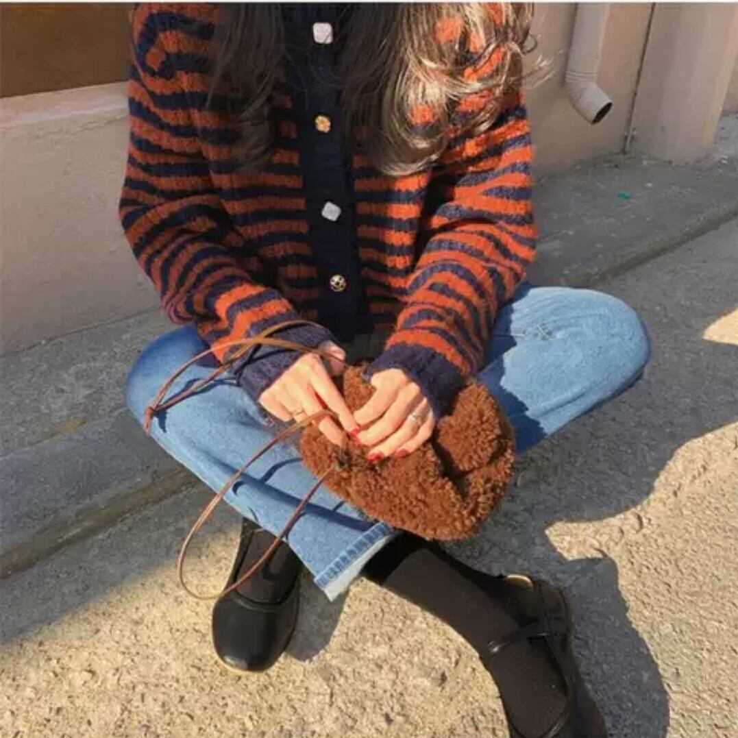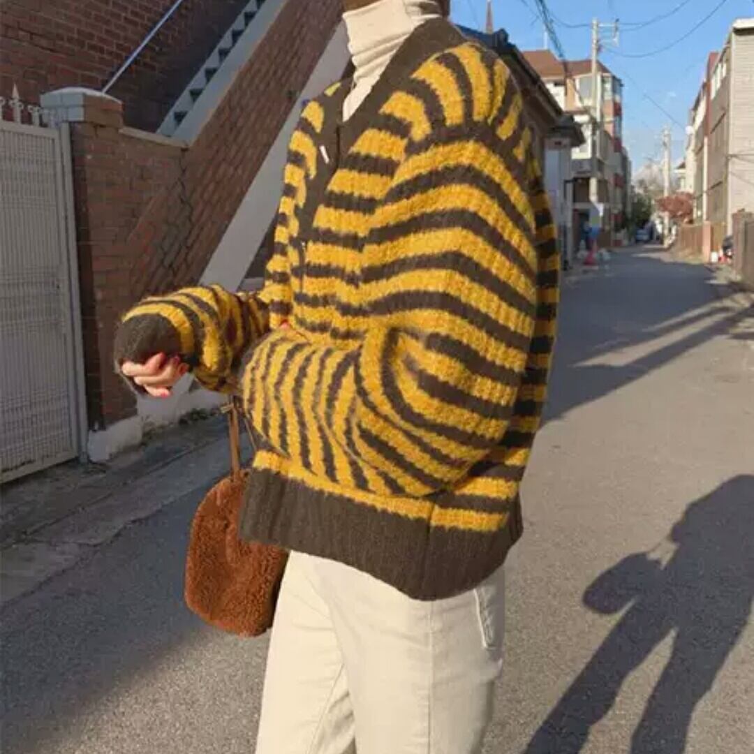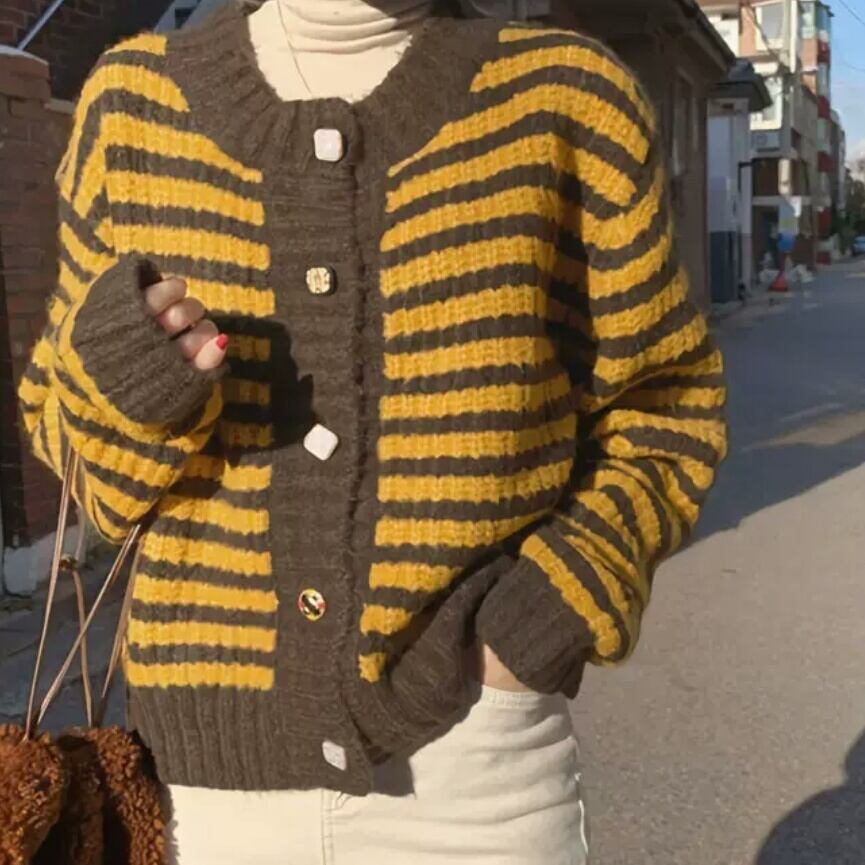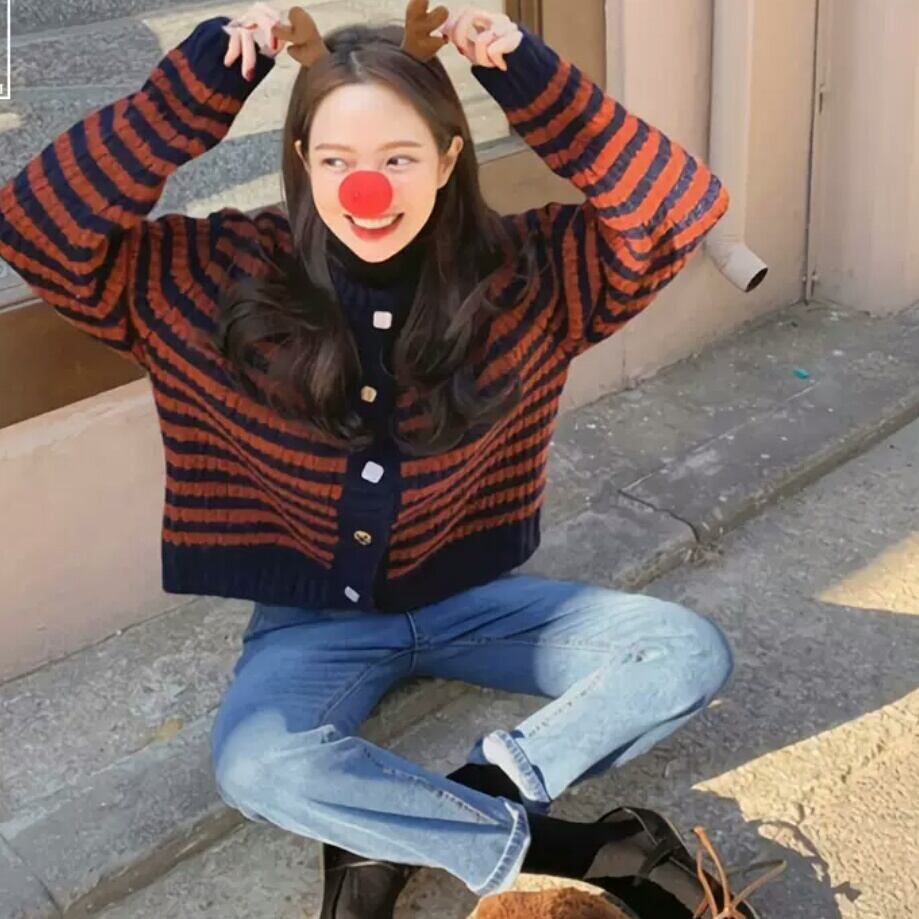全2色 ボーダー ニット カーディガン 大人 カジュアル キレイめ シンプル お出かけ お買い物 デート 女子会 秋冬 春 通学 学生 通勤 韓国ファッション