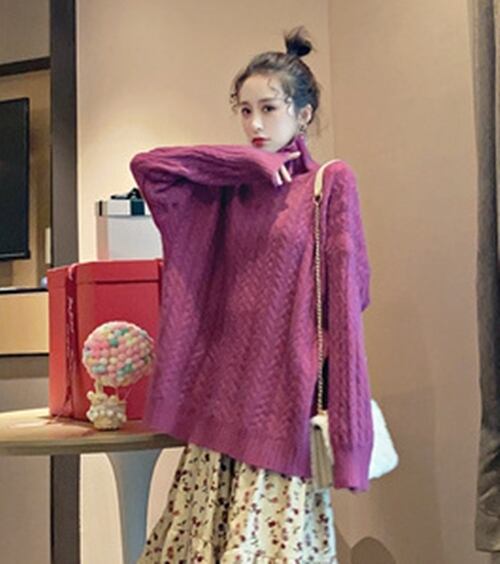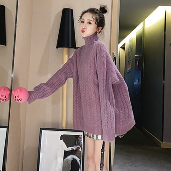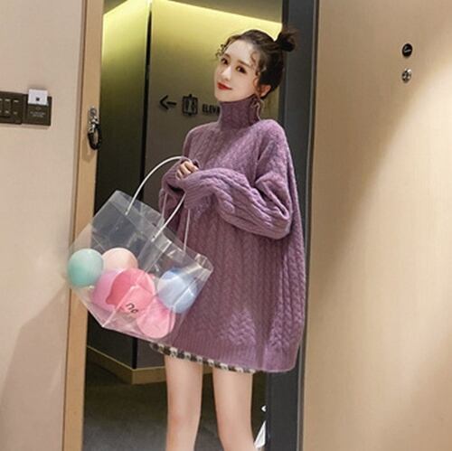 全3色トップス ニット セーター プルオーバー オーバーサイズ ゆったり タートルネック ケーブルニット カジュアル 大人可愛い 秋 冬 春