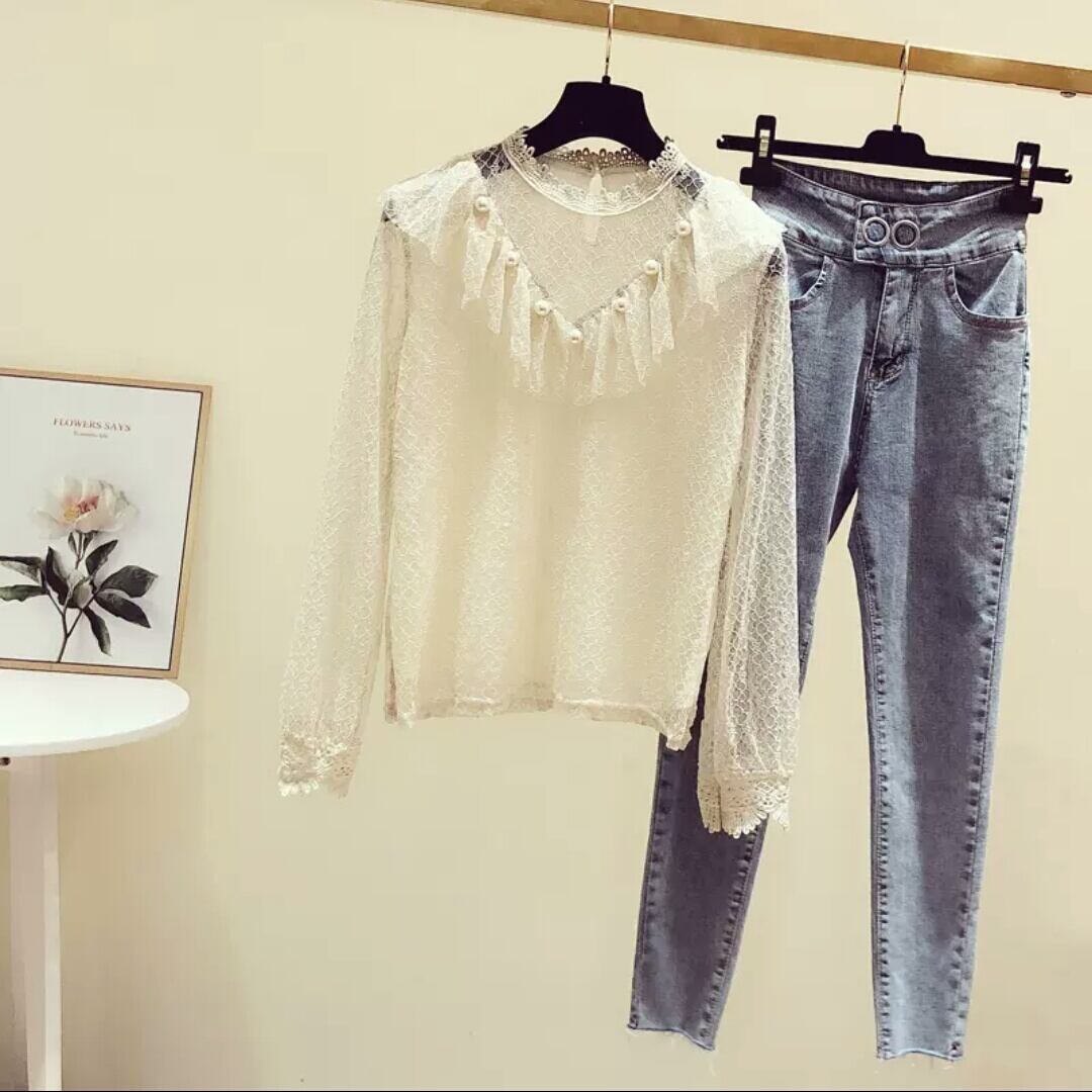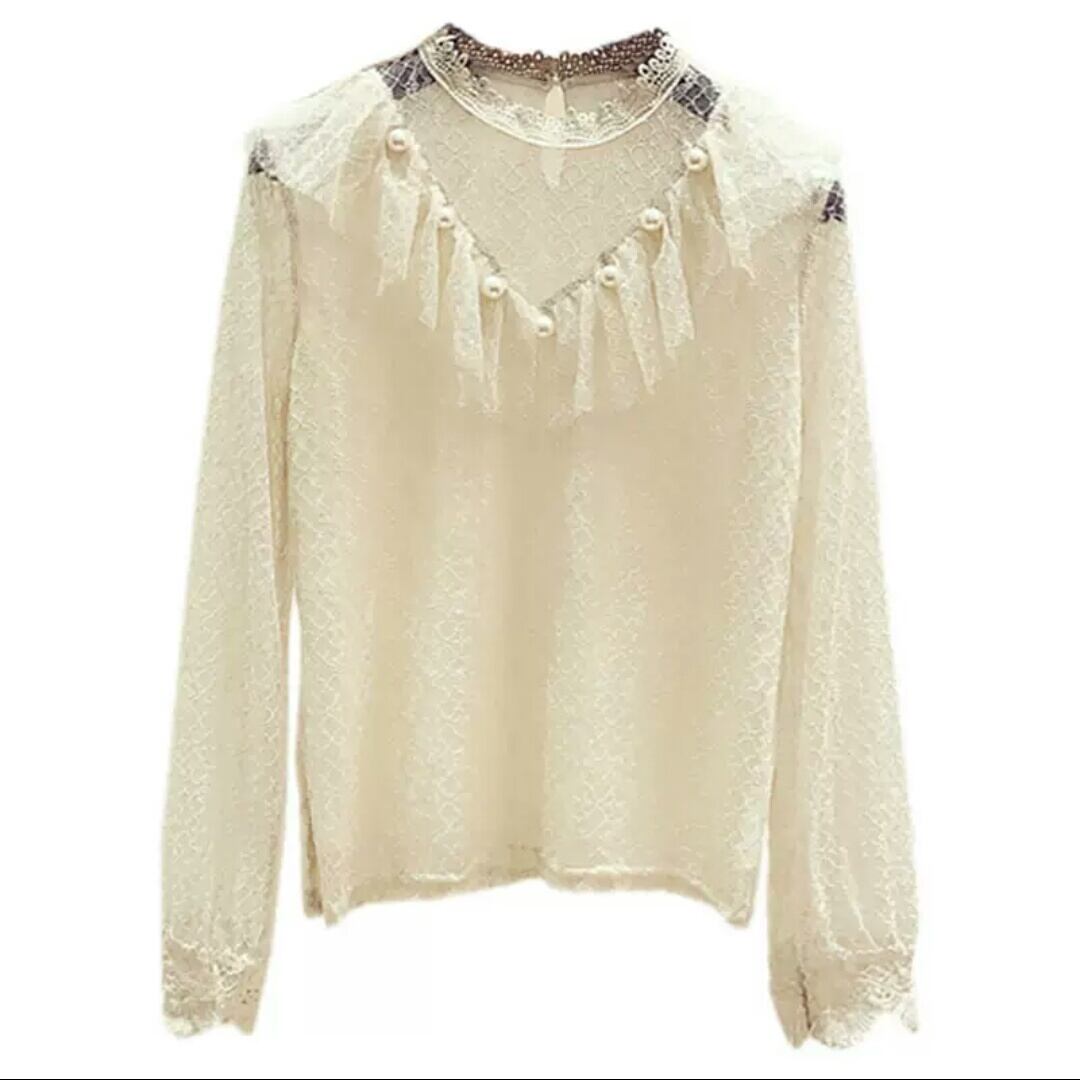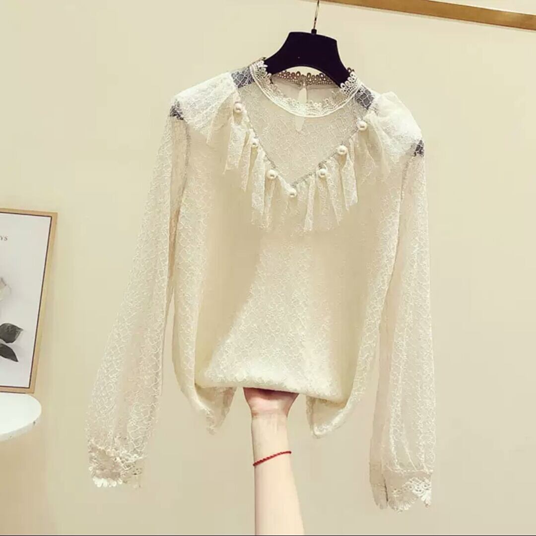 レース ブラウス メッシュ トップス 長袖 大人 可愛い キレイめ 上品 お出かけ お買い物 デート 女子会 秋冬 春 通学 学生 通勤 韓国ファッション