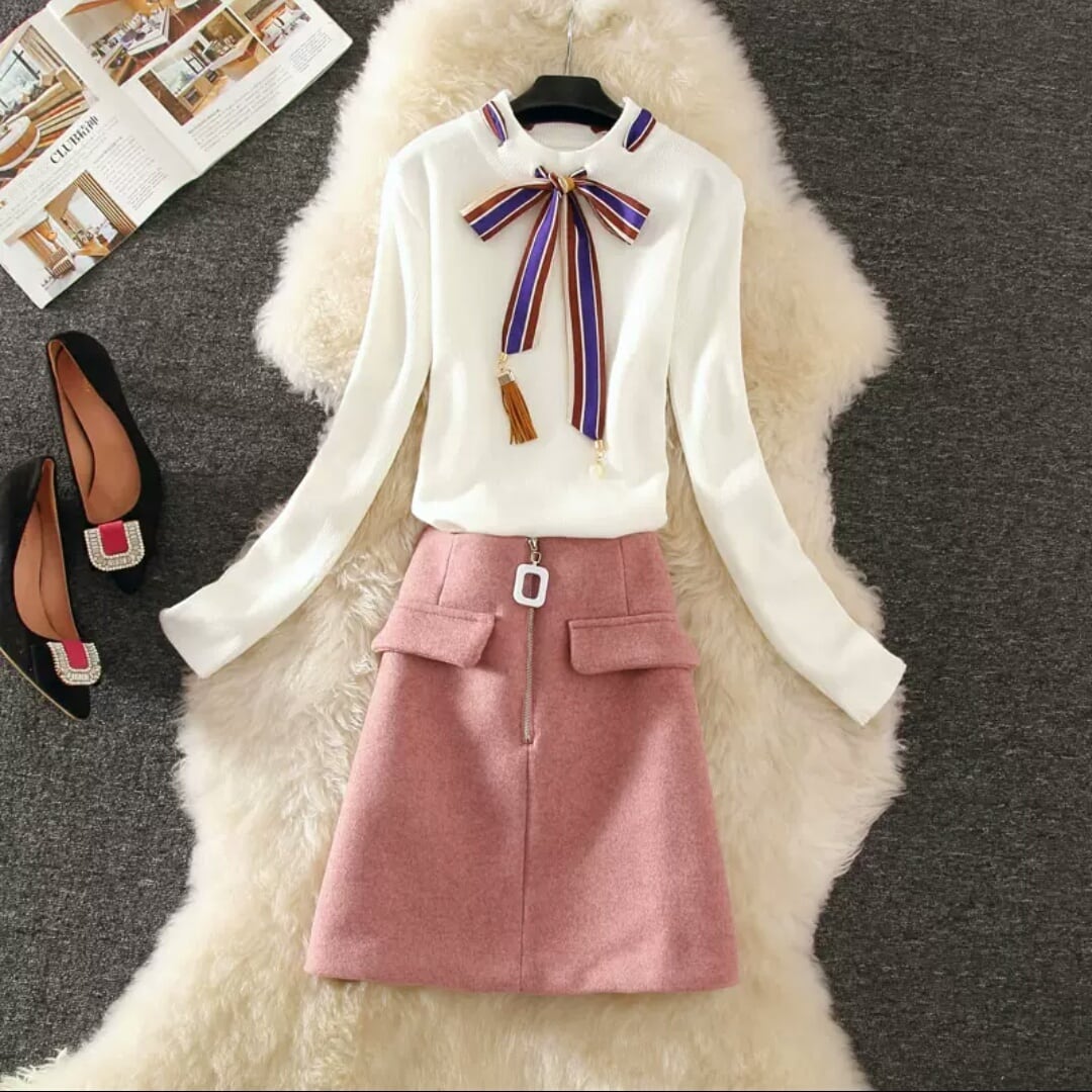 全3種 セットアップ ツーピース ニット トップス スカート ハイウエスト ショート丈 大人 カジュアル キレイめ 上品 可愛い お出かけ お買い物 デート 女子会 秋冬 春 通学 学生 通勤 韓国ファッション