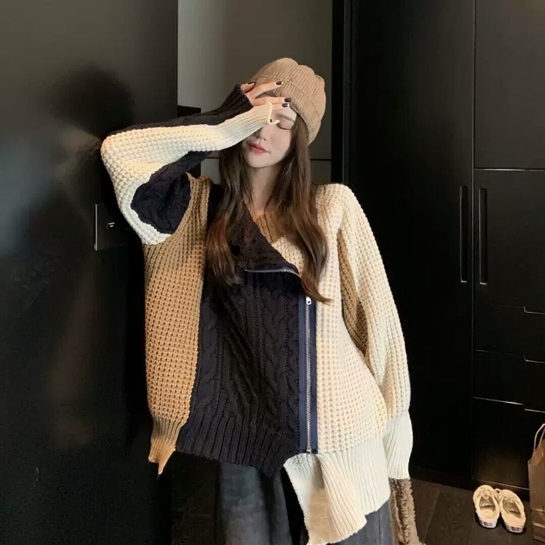 全2色 ニット ジャケット コート アウター 羽織り 大人 カジュアル キレイめ 個性的 お出かけ デート 女子会 秋冬 春 通学 学生 通勤 韓国ファッション