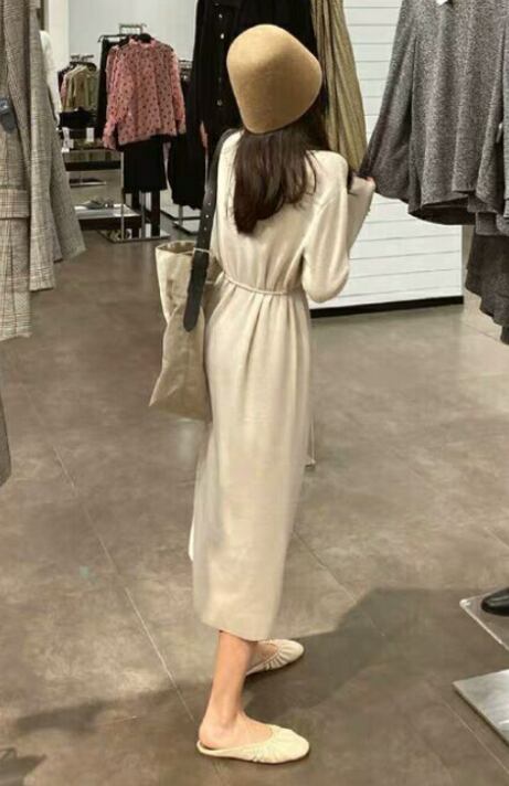 上品で大人っぽい印象のニットワンピースです。
