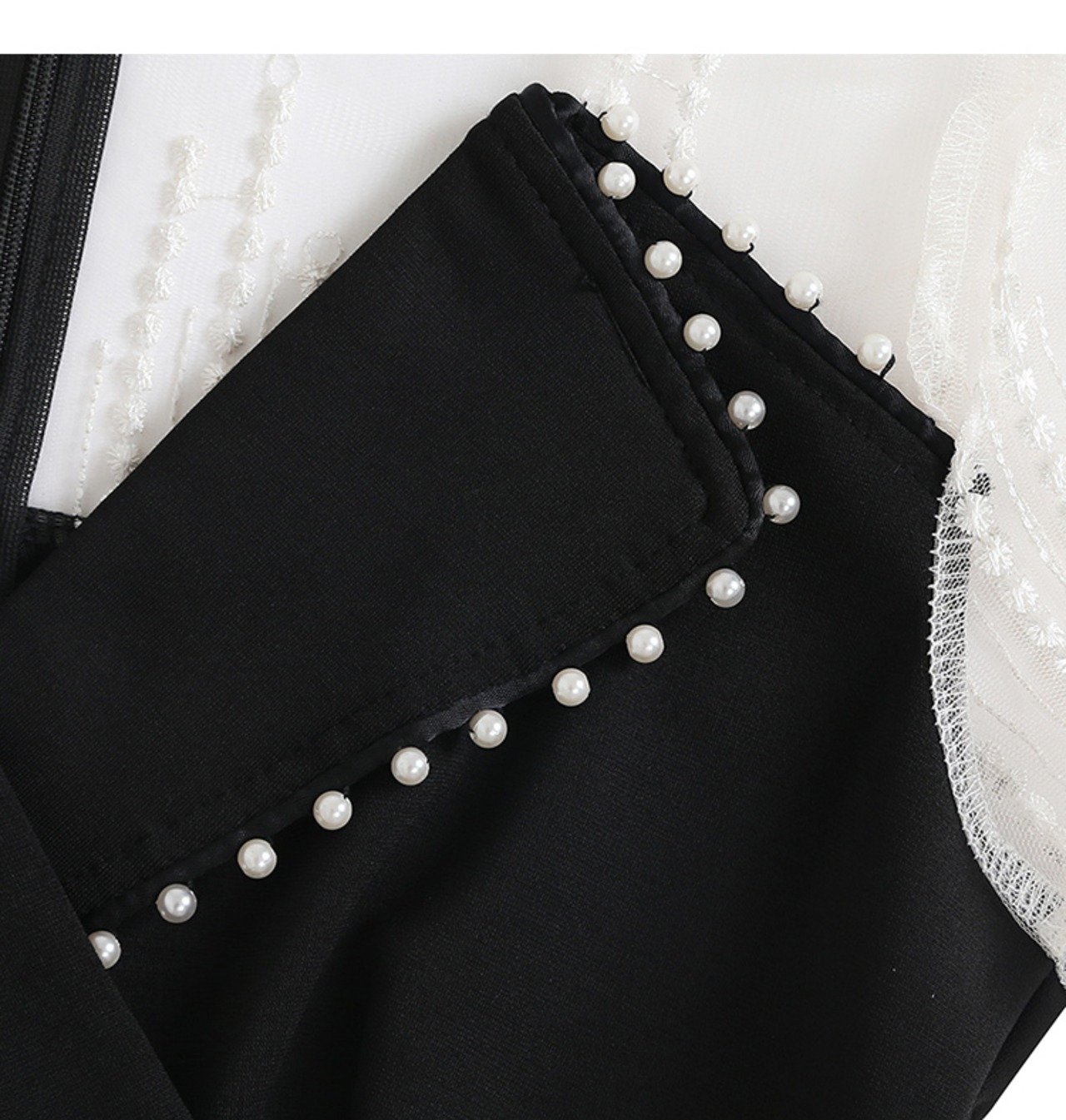 ミニドレス パーティドレス ワンピース フレアスカート Vネック フォーマル シースルー スリム パフスリーブ きれいめ セクシー
