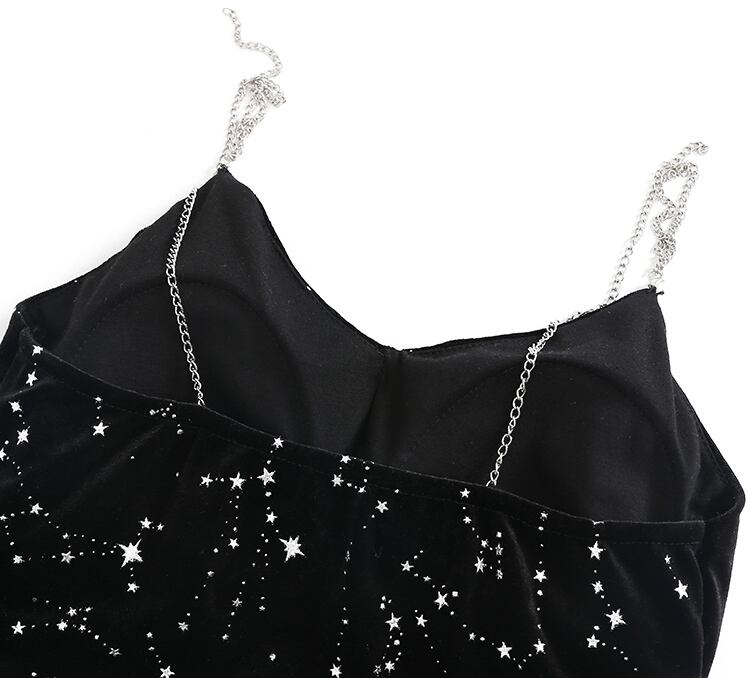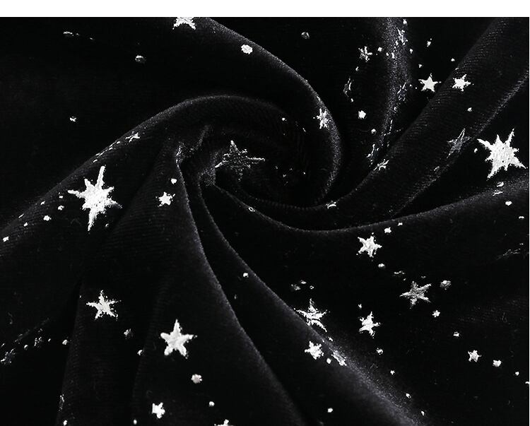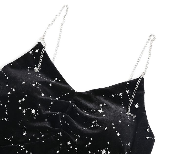 全体に星座模様が施されたワンピースが華やかな印象。