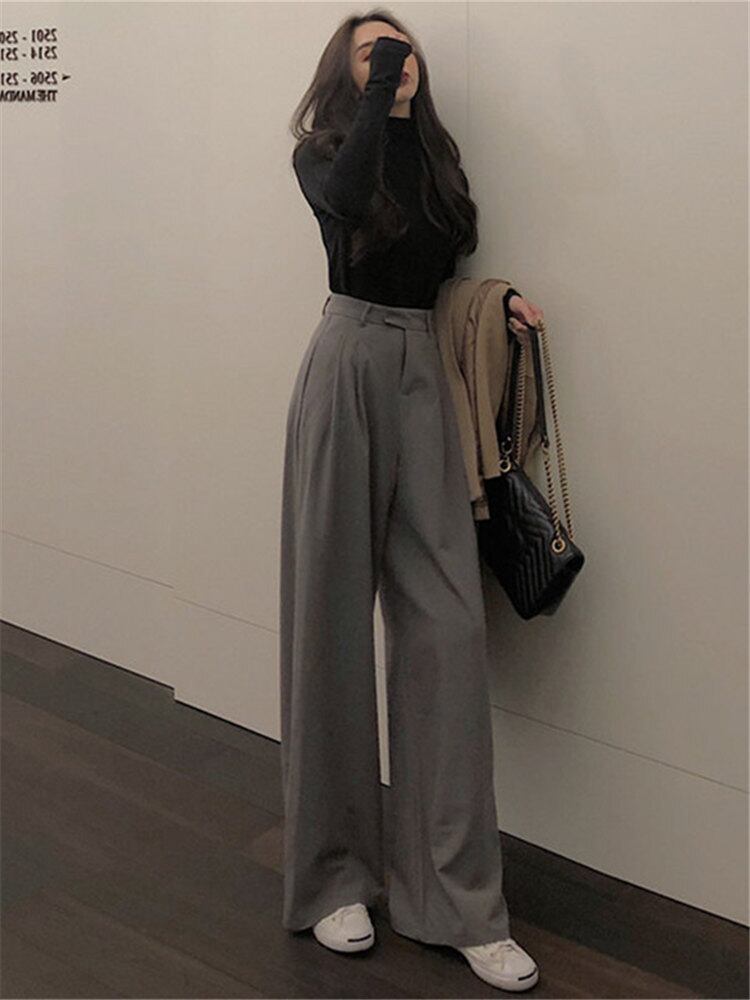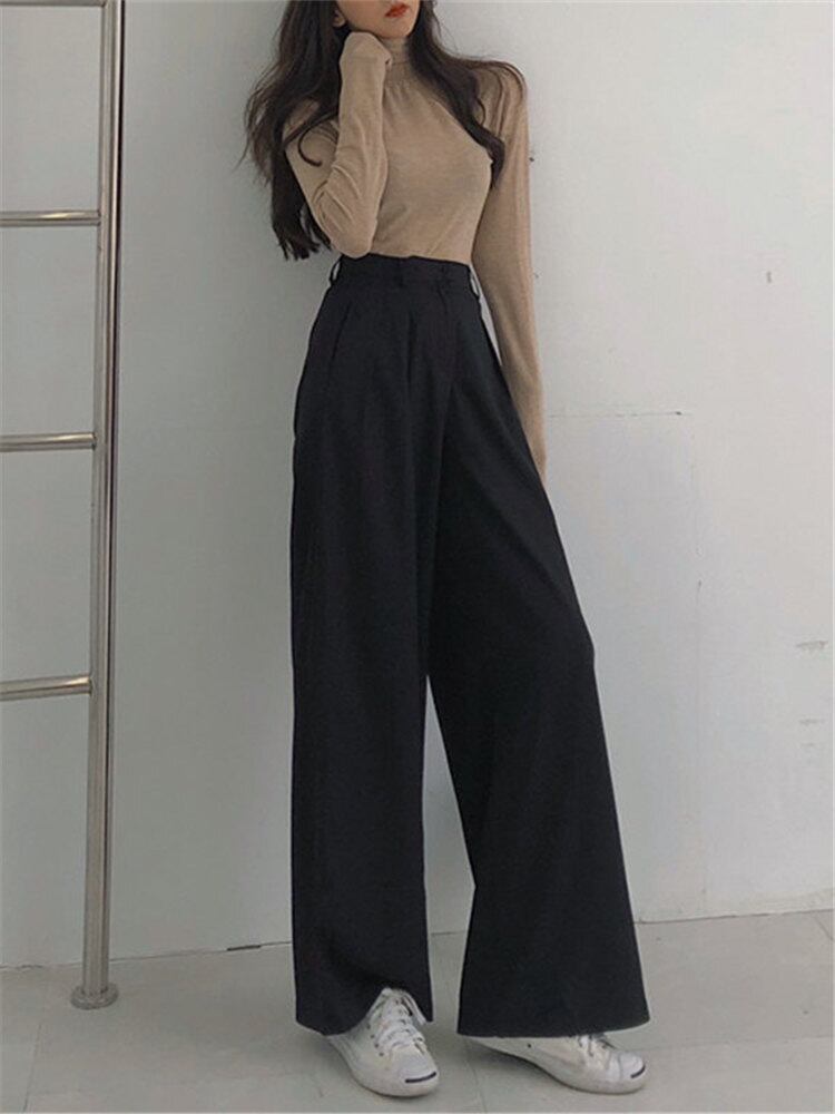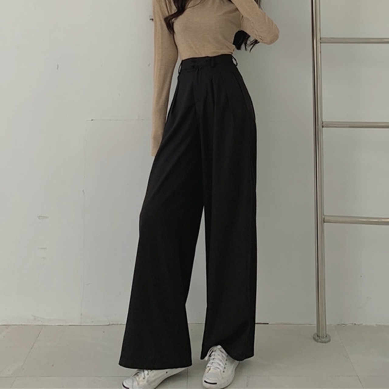 全2色 ワイドパンツ ハイウエスト ワイドレッグパンツ ゆったり タックパンツ 上品 大人 トレンド カジュアル 無地 きれいめ 秋 春 冬