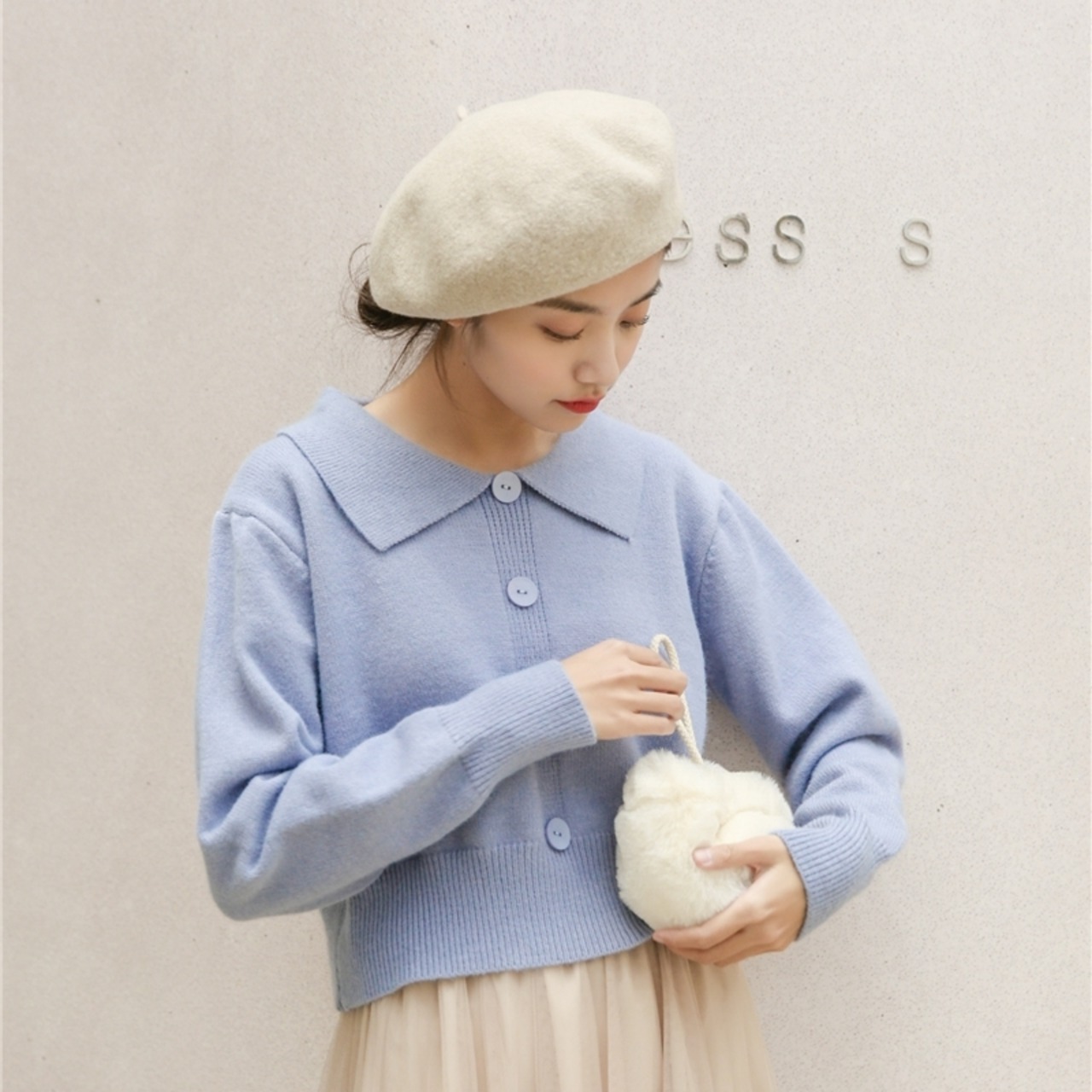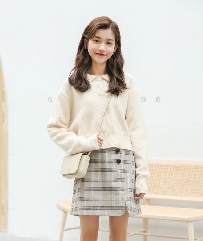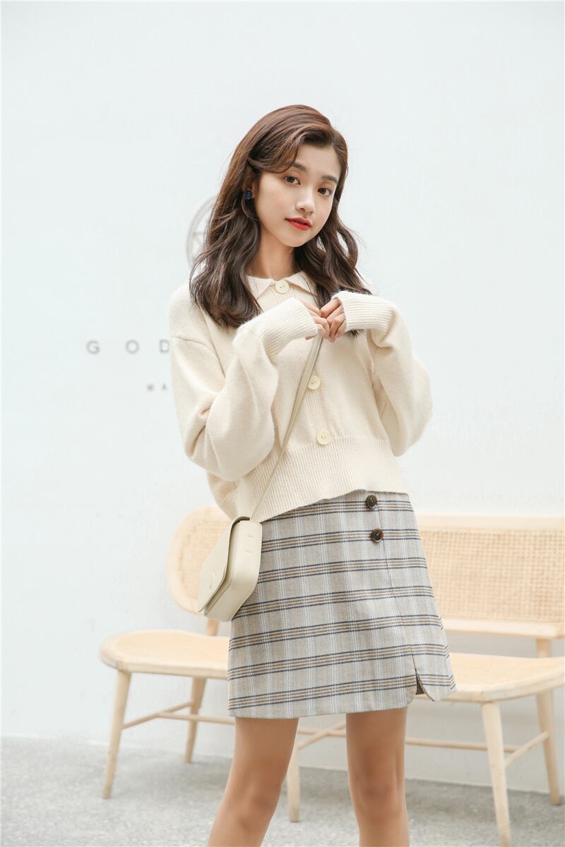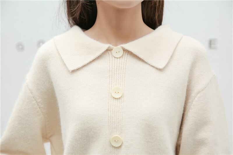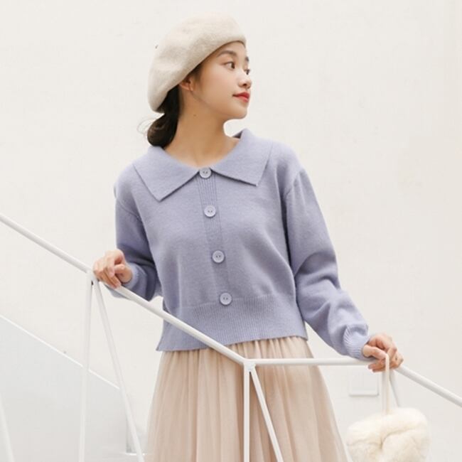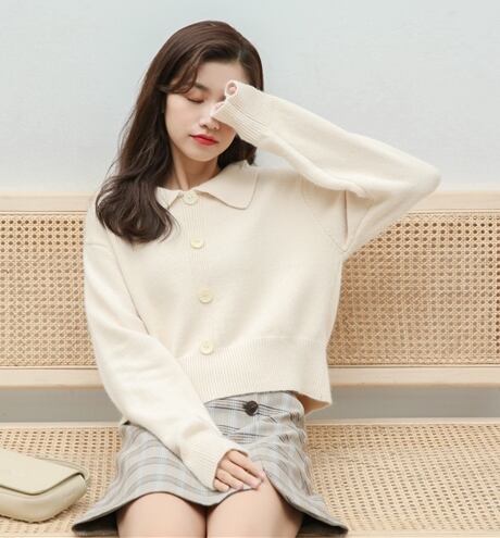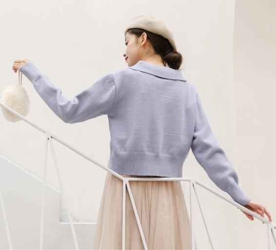 全2色 トップス ニット セーター フロントボタン ロングスリーブ ショート 可愛い レトロ カジュアル ガーリー デート 秋 冬 春