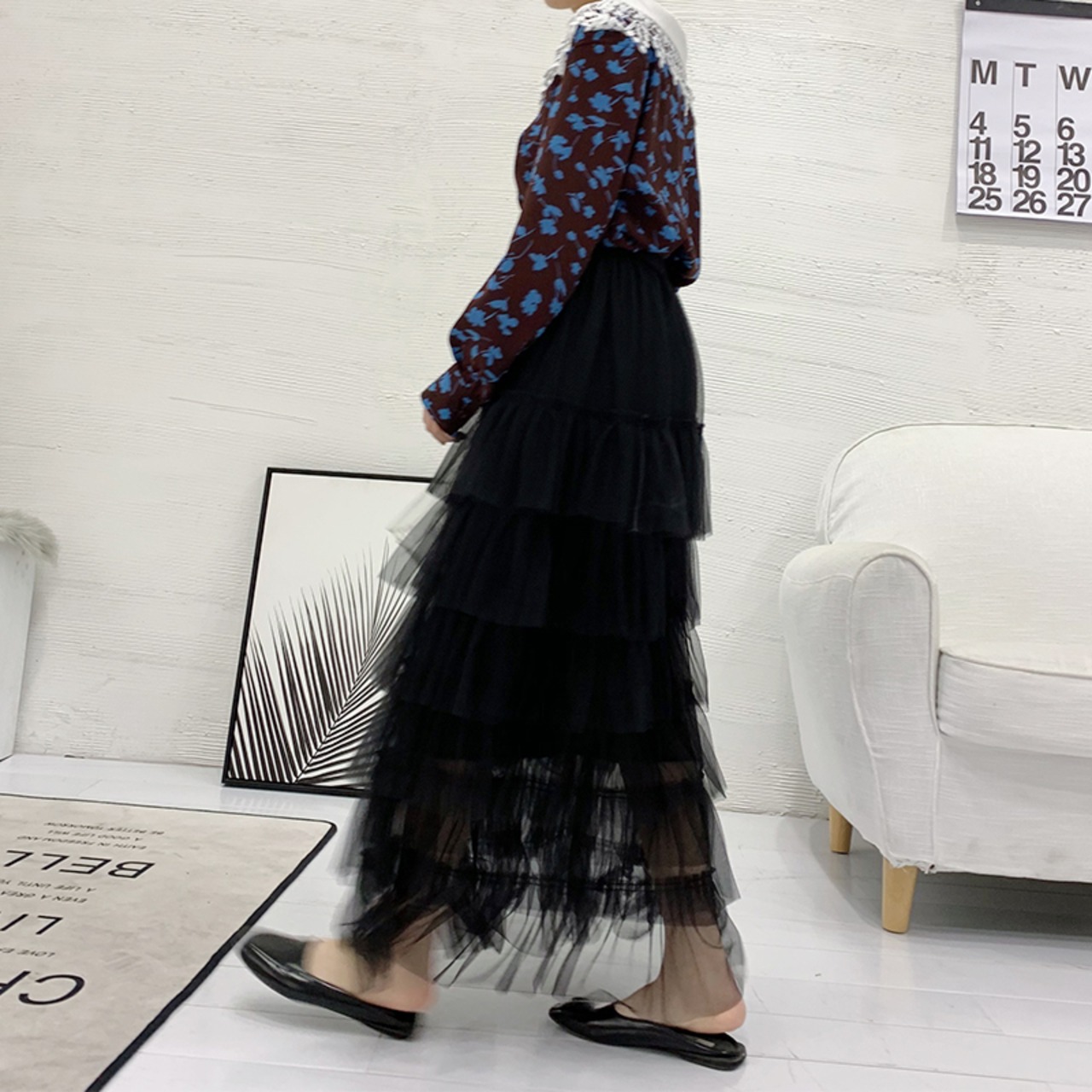 全3色 ボトムス スカート ロング丈 ティアード フリル チュール シースルー グラデーション ハイウエスト ふんわり ガーリー きれいめ 可愛い 秋 冬 春
