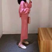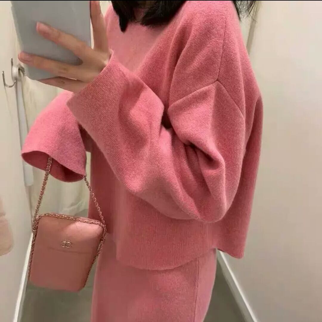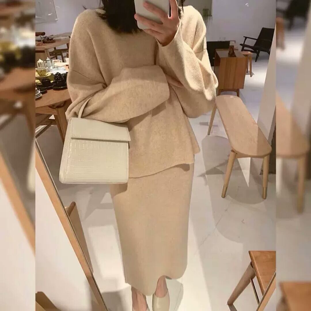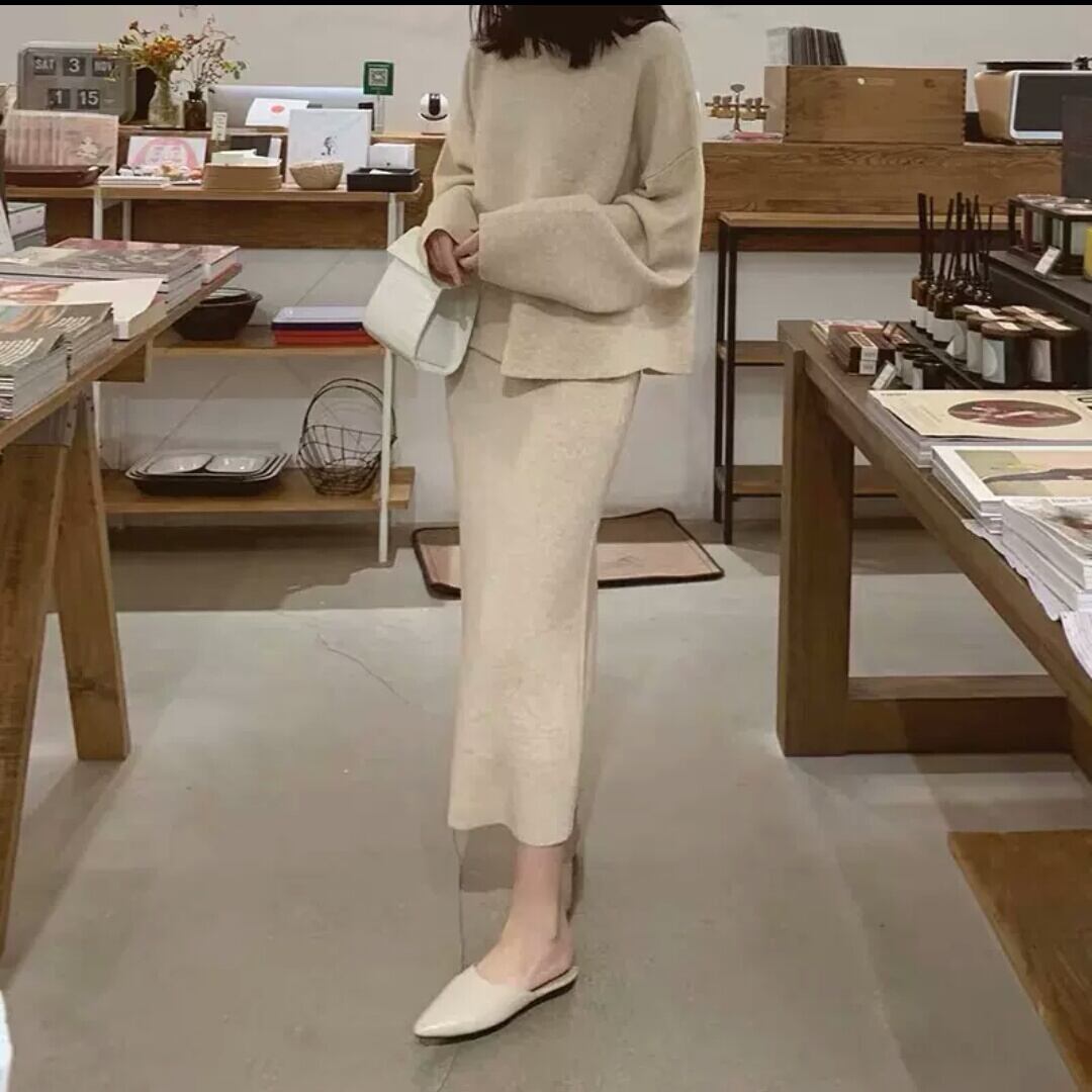 全2色 セットアップ ツーピース ニット セーター トップス スカート ひざ丈 大人 カジュアル キレイめ 上品 シンプル お出かけ お買い物 デート 女子会 秋冬 春 通学 学生 通勤 韓国ファッション